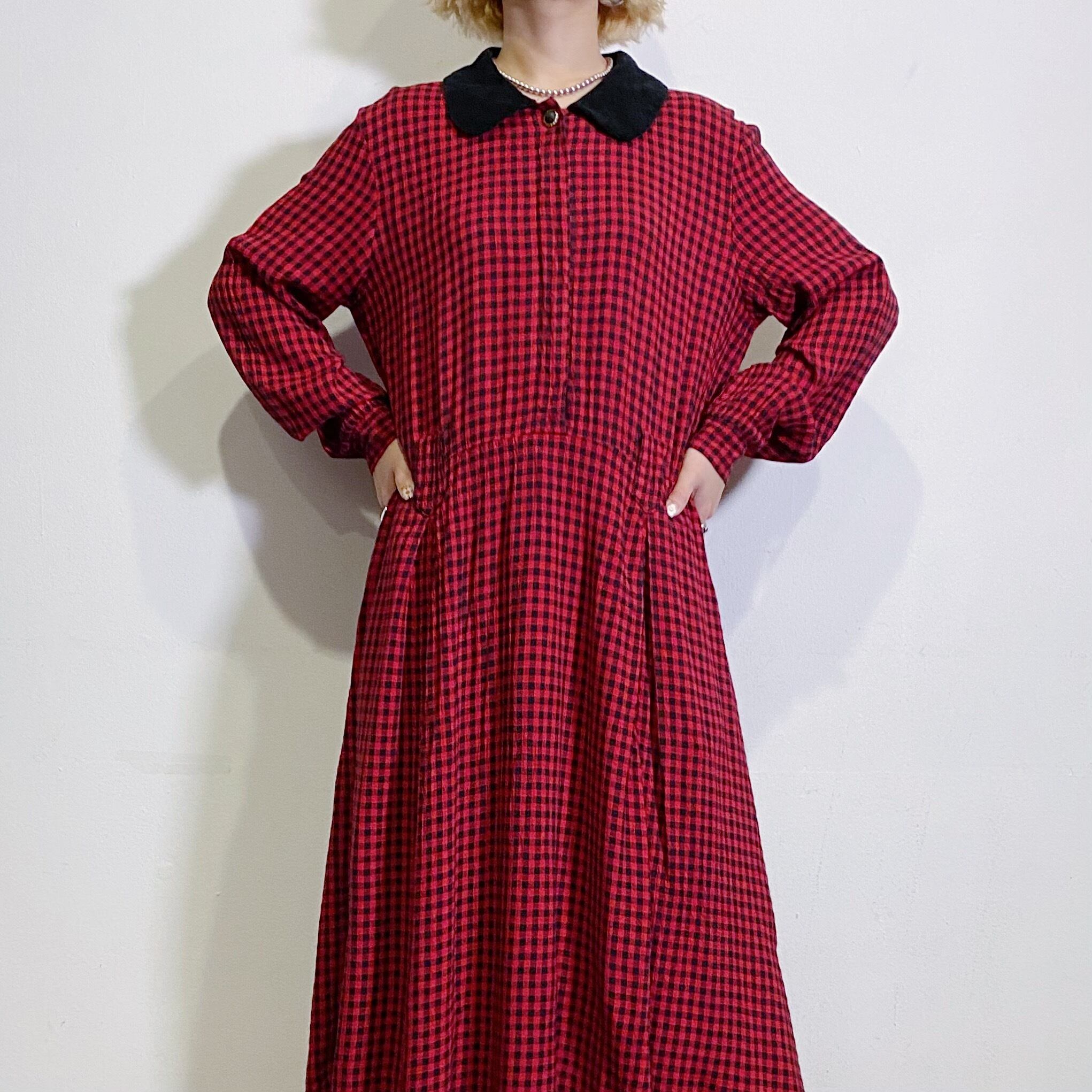 赤黒ギンガムチェックが可愛い、80年代のワンピースです。