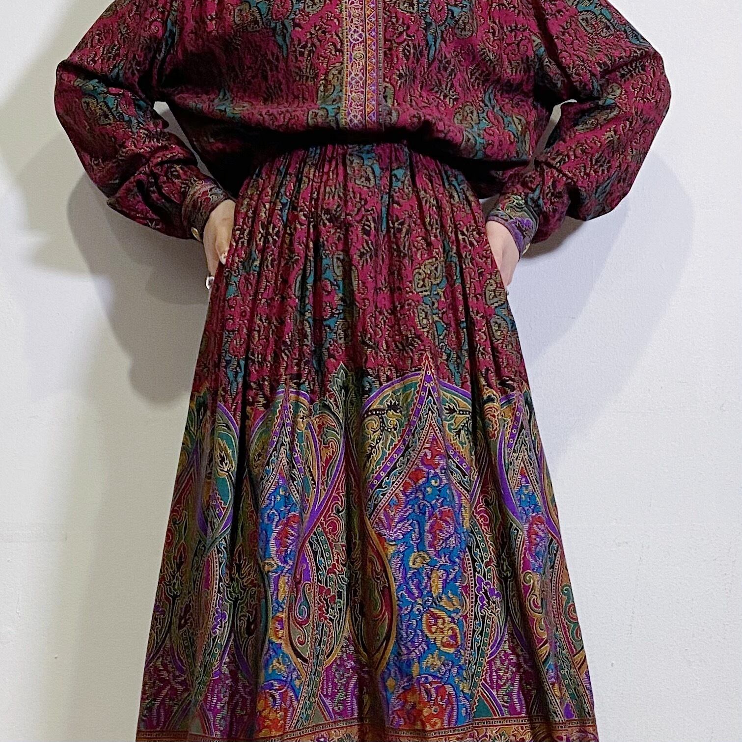 雰囲気たっぷりなテキスタイルが可愛い、80年代のシャツワンピースです。