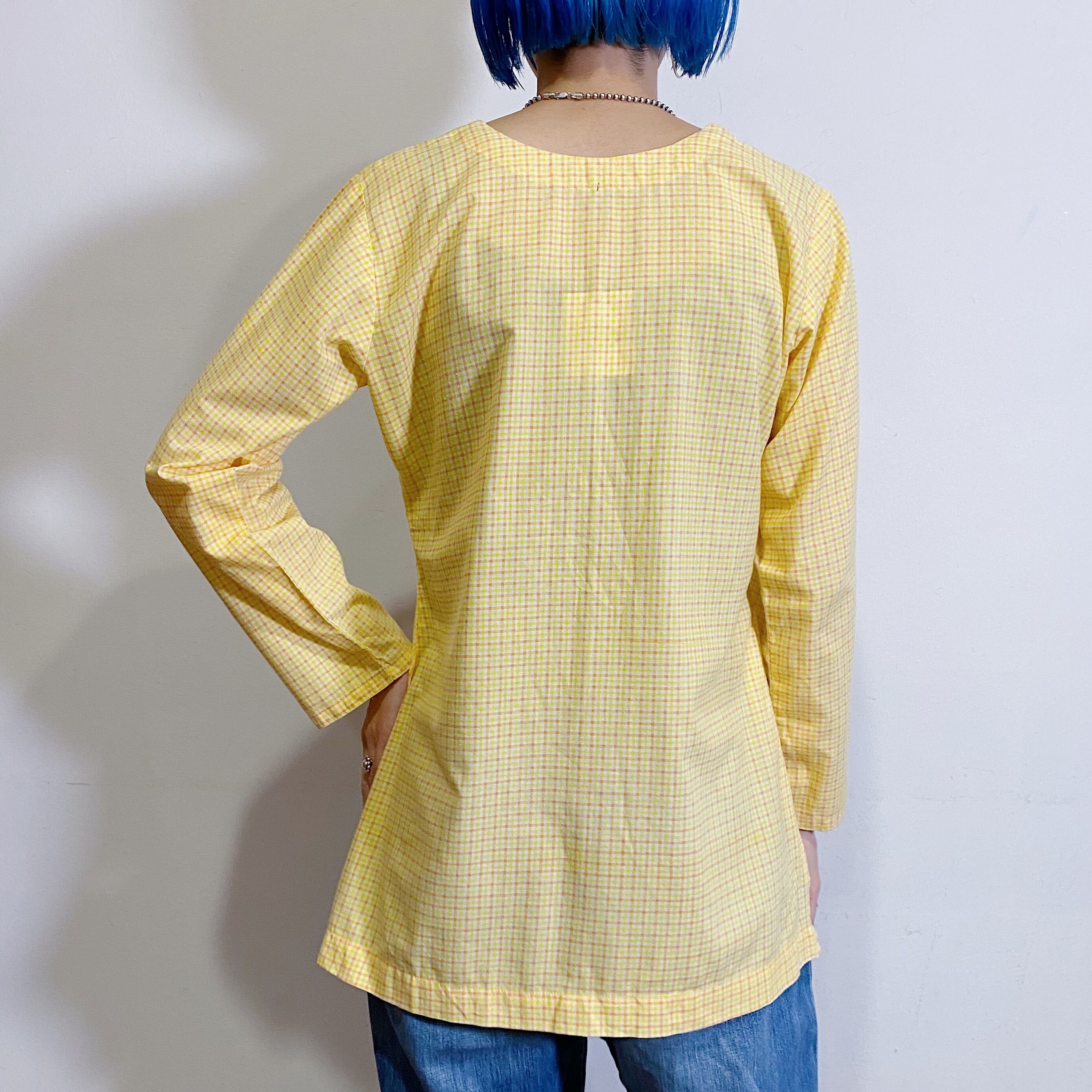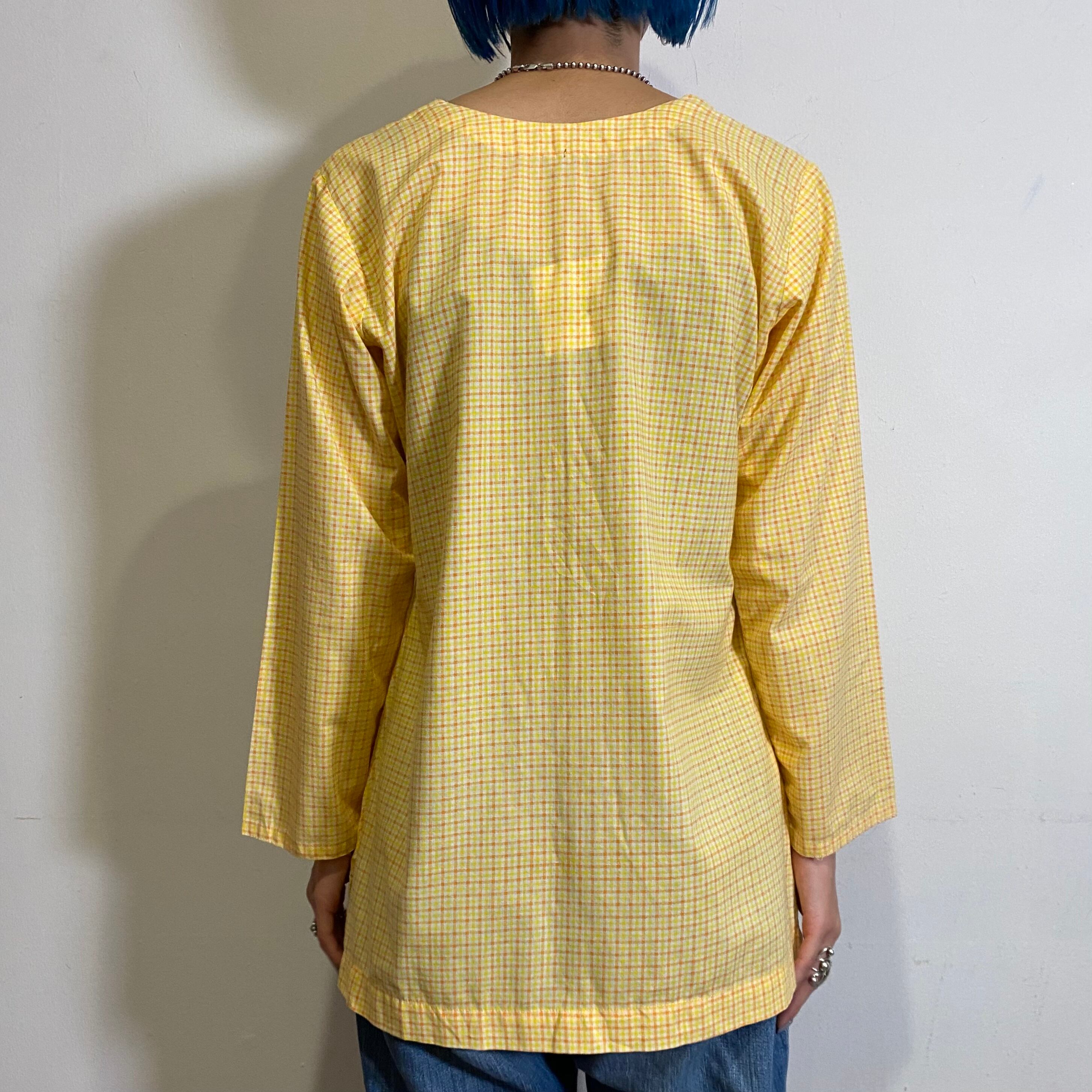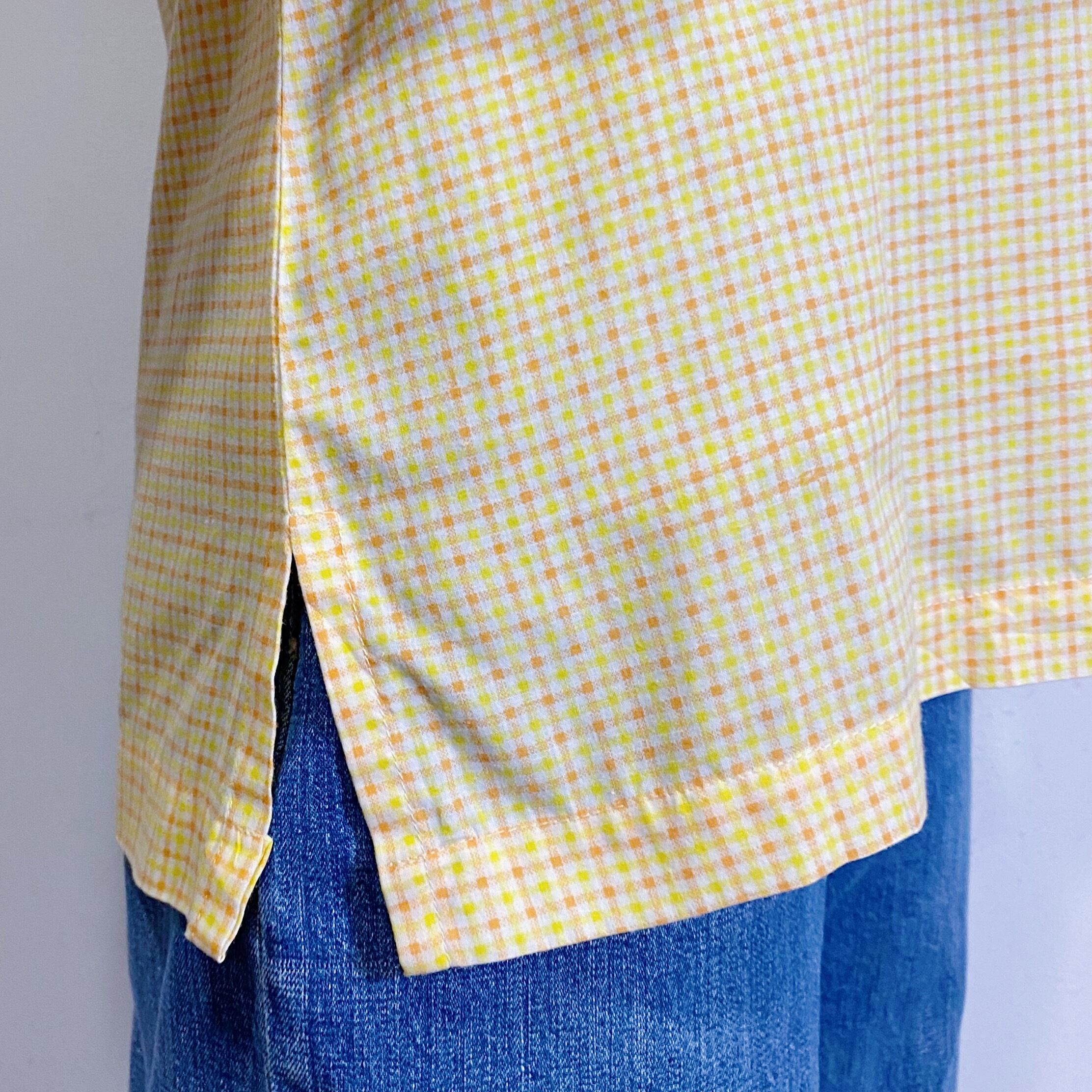 イエローとオレンジのチェックが可愛い、70年代の長袖トップスです。
