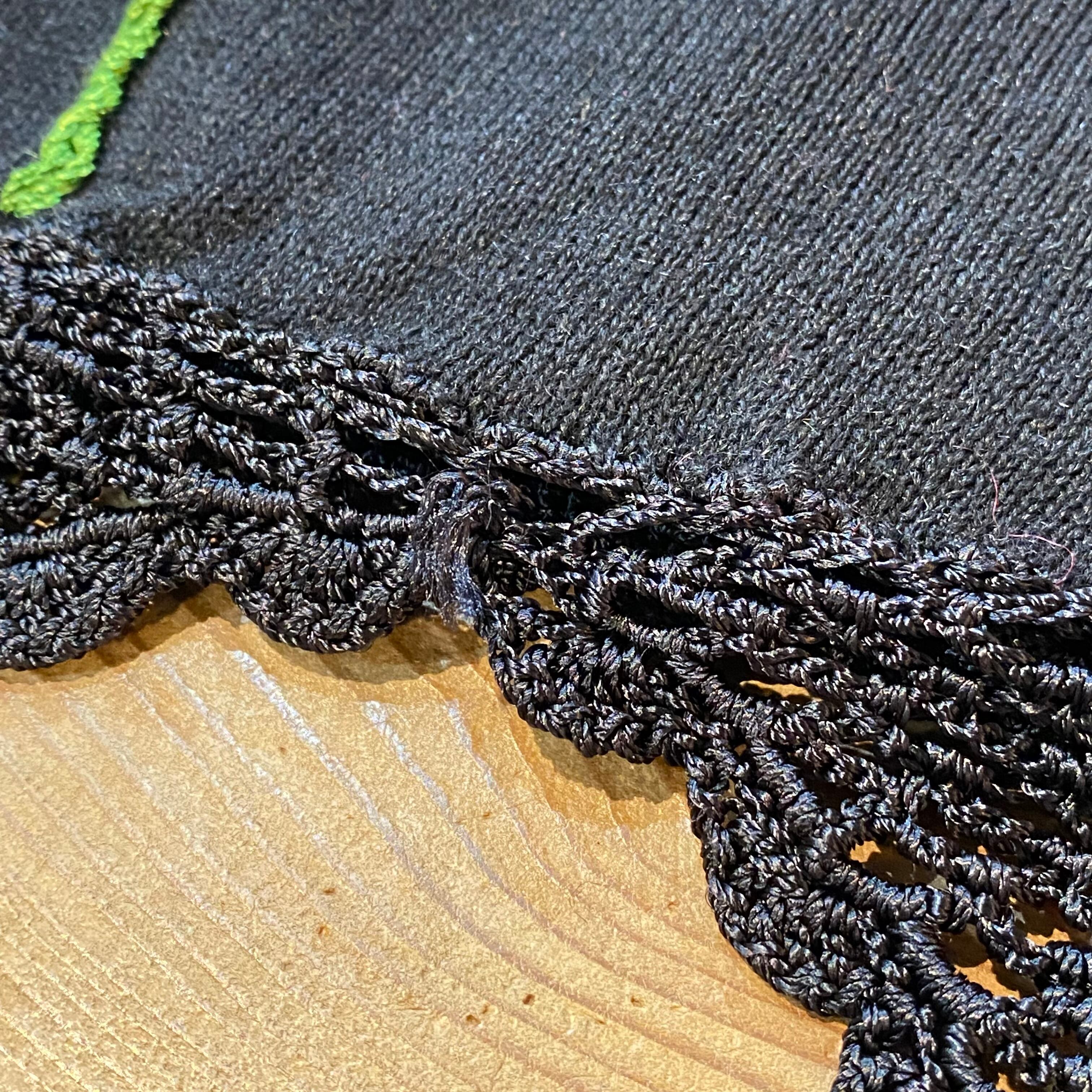 レースの糸端の軽いホツレのようなものが見受けられますが、ここから解けてしまう心配はございません。