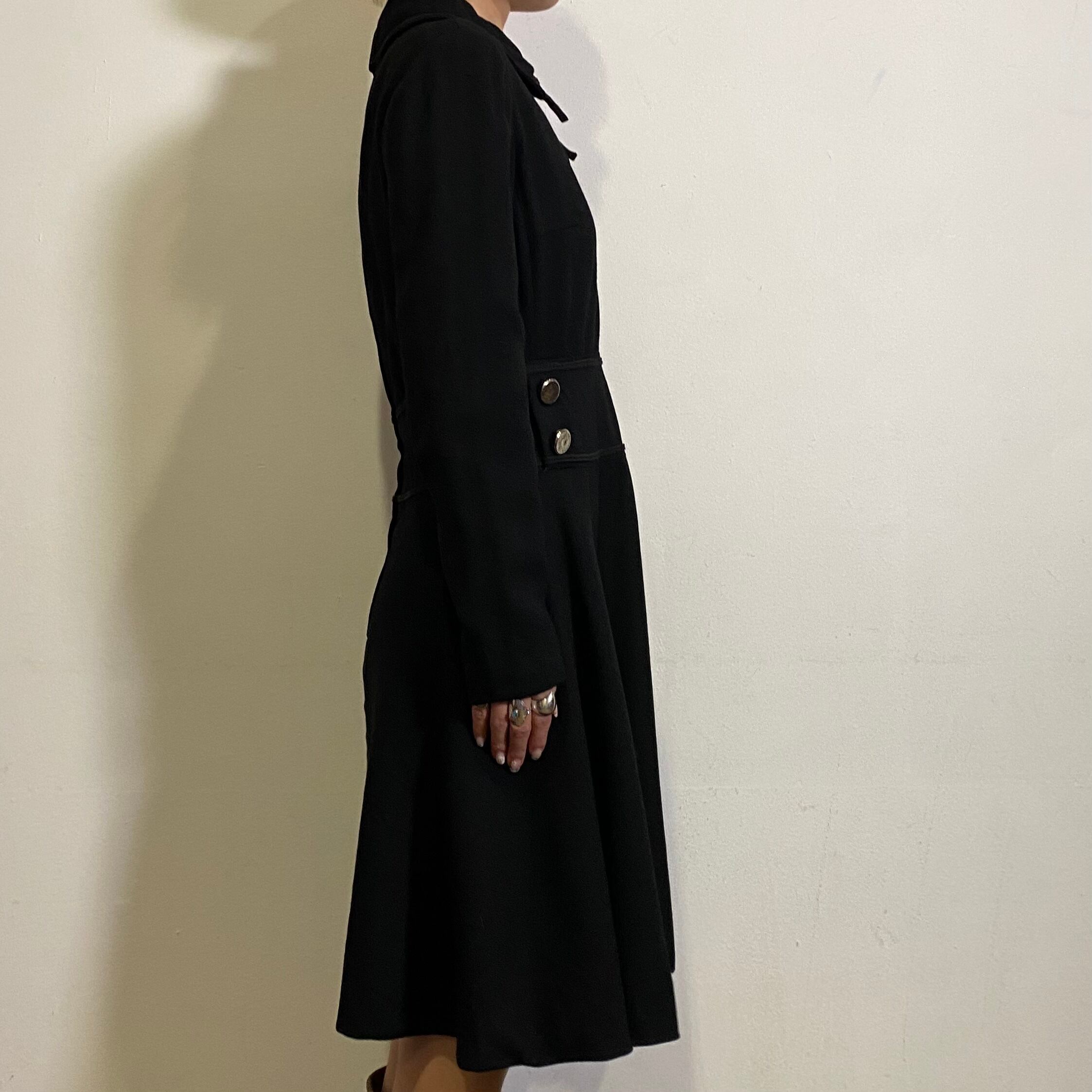 首のリボンやウエストにあるシルバーのダブルボタンが良いアクセントになっております。
