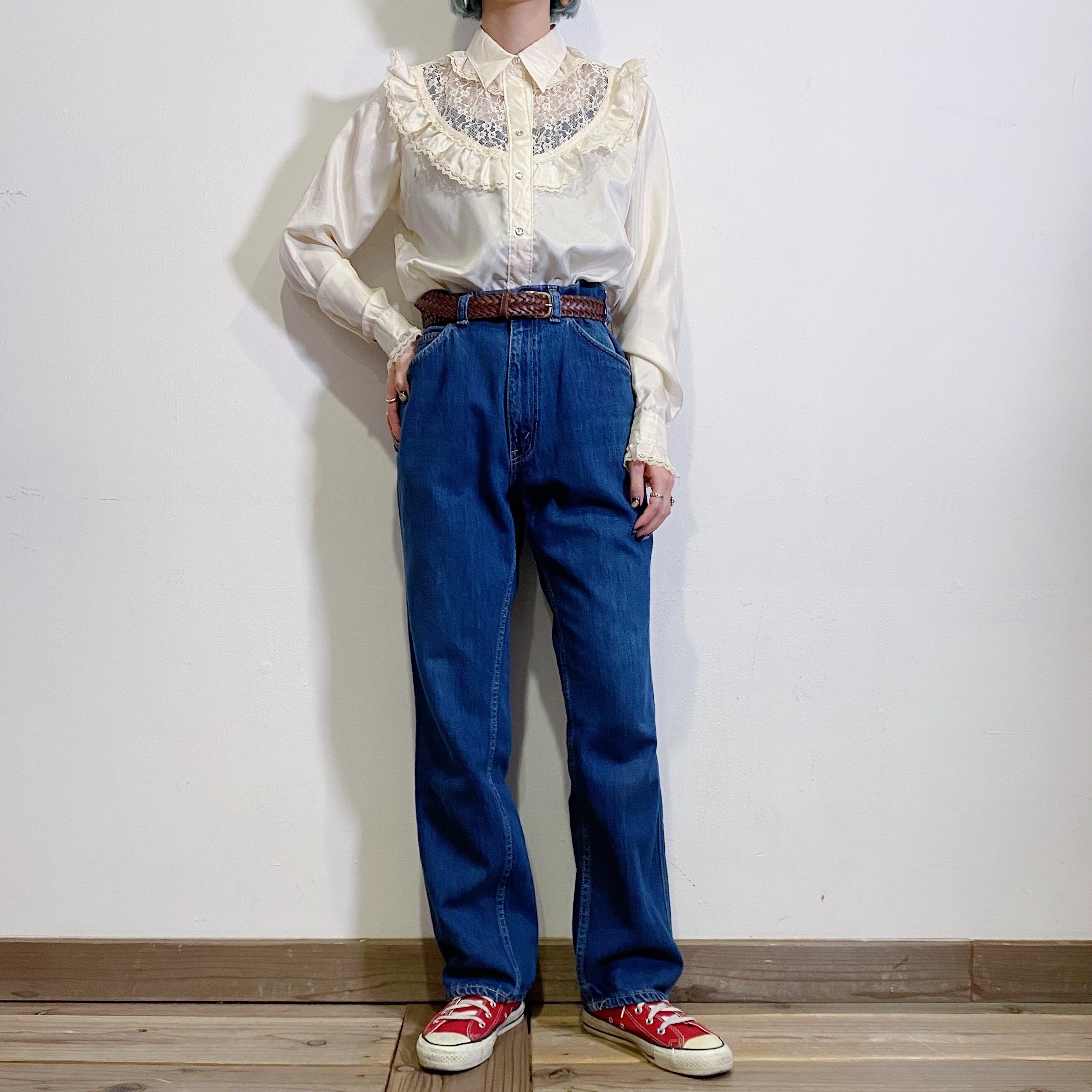 胸元のフリルとレースが可愛い、70年代のウエスタンシャツです。