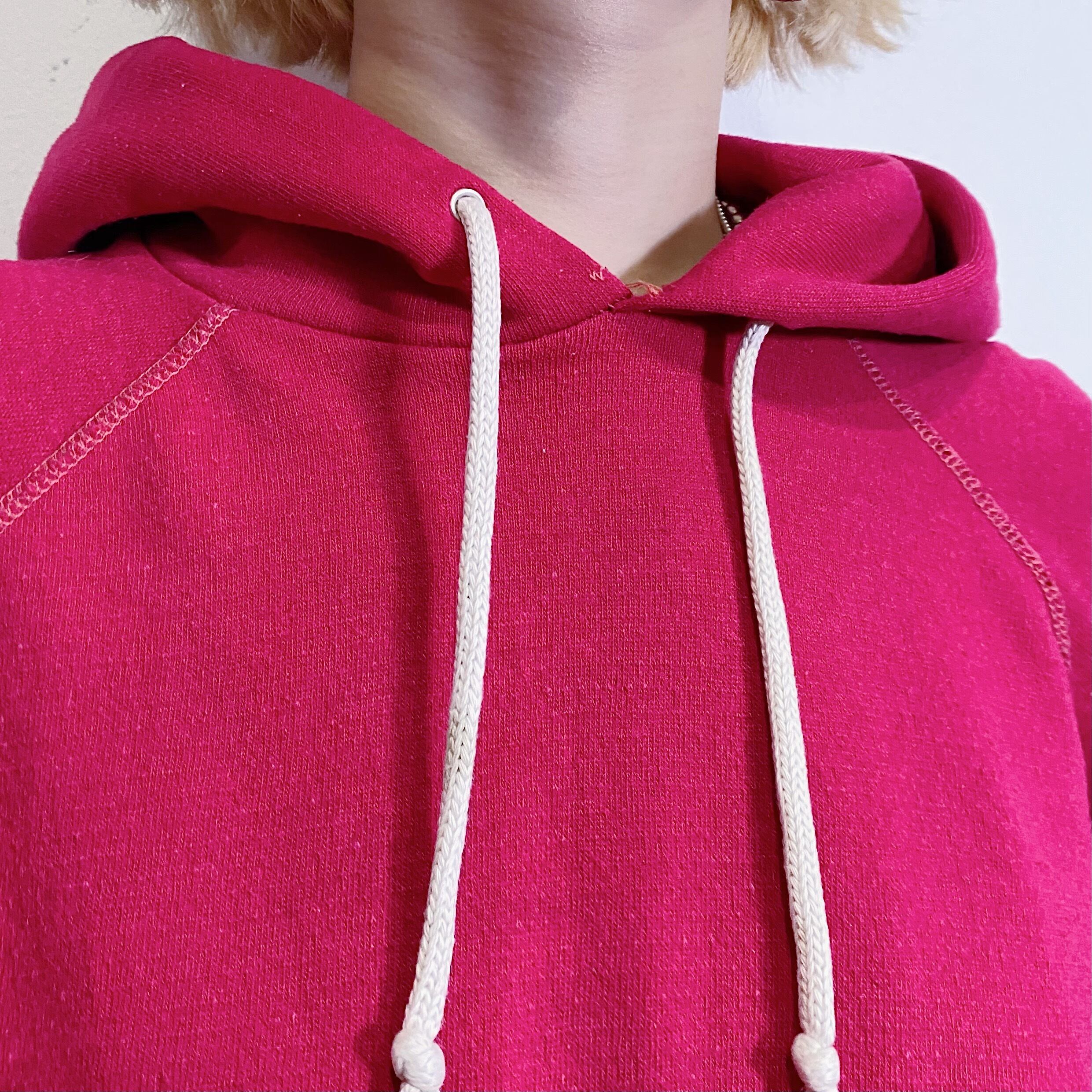 ビビットなピンクカラーが可愛い、70年代のフーディーです。