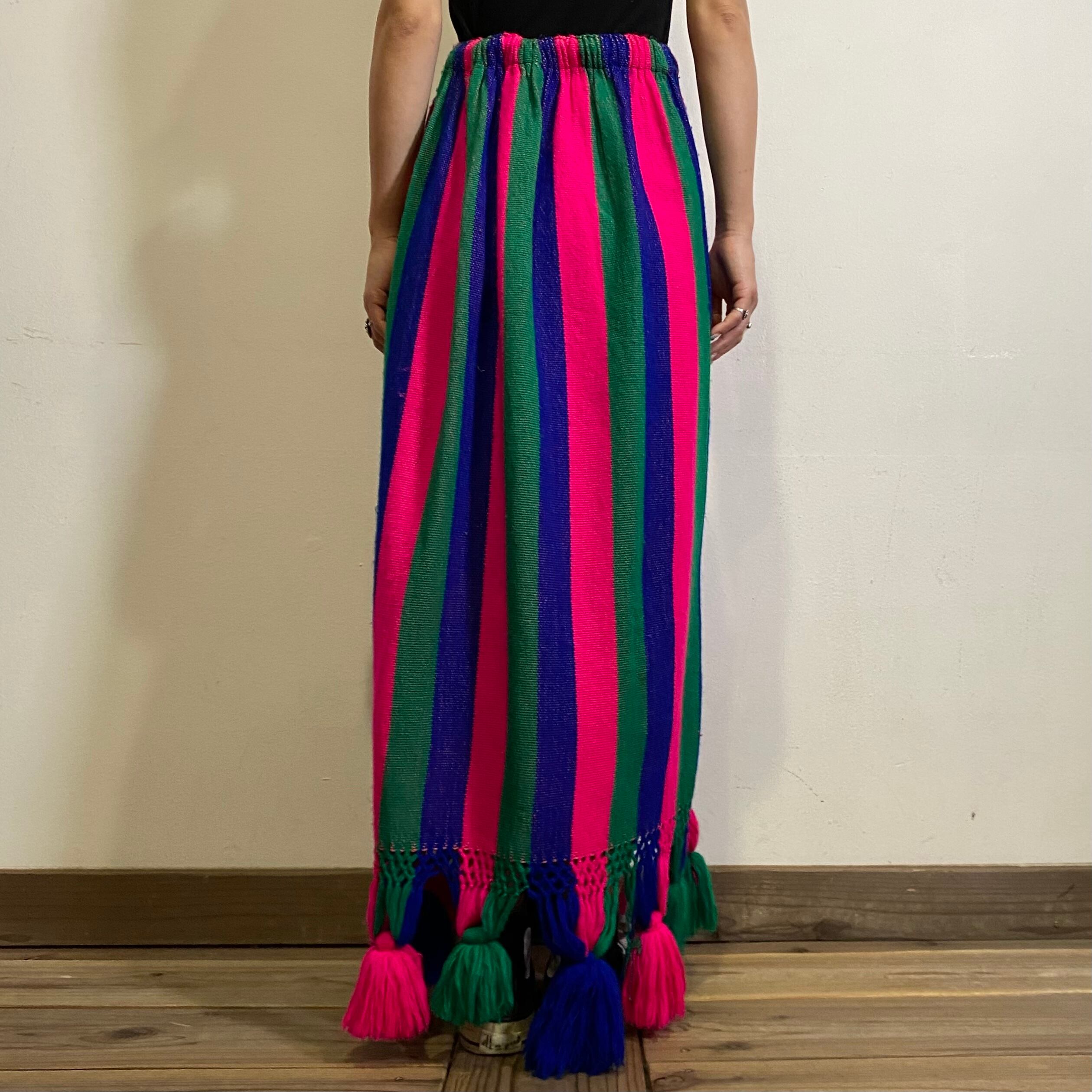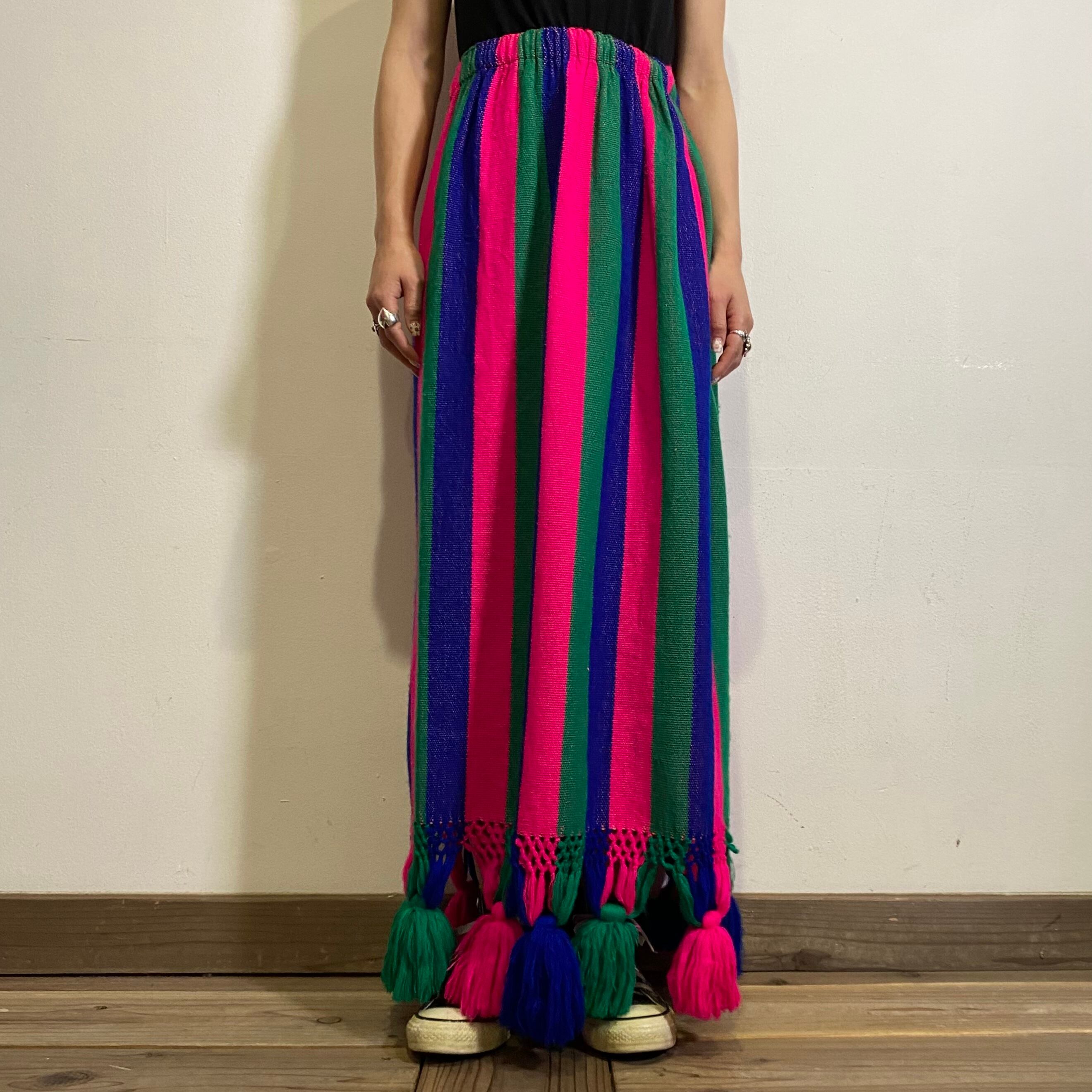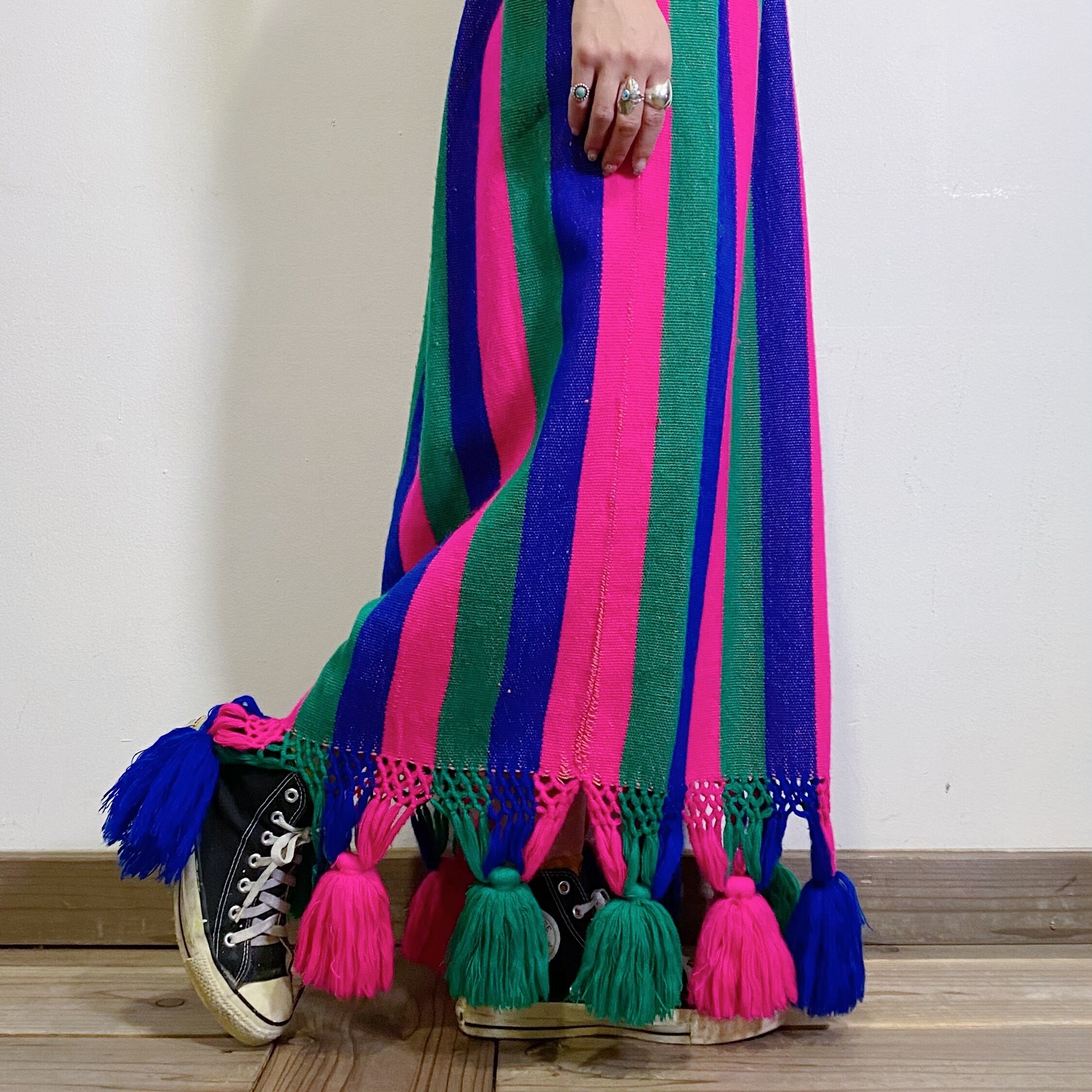 裾の大きなフリンジデザインが遊び心があって楽しい、70年代のロングスカートです。