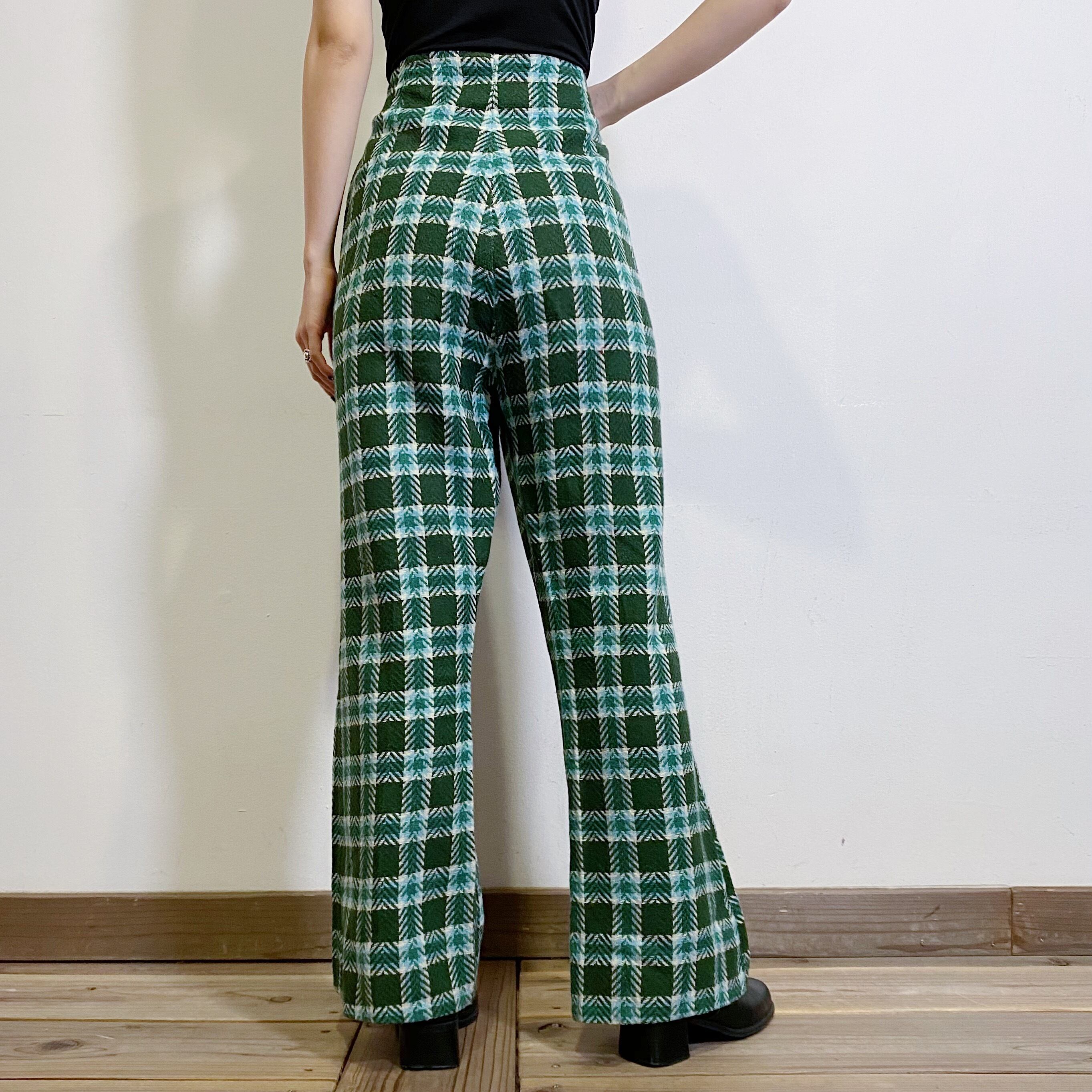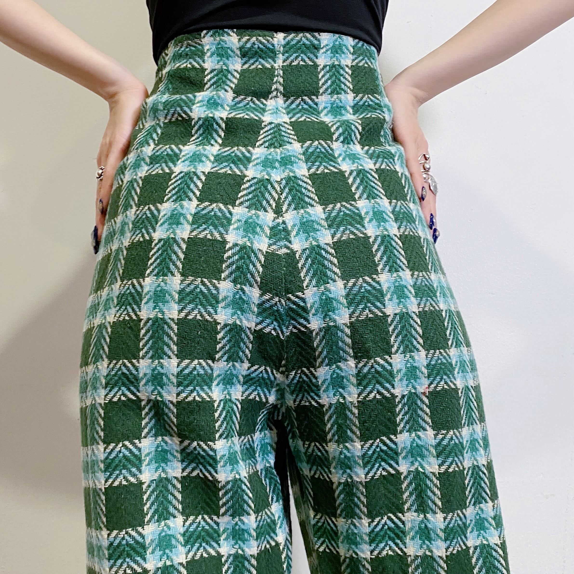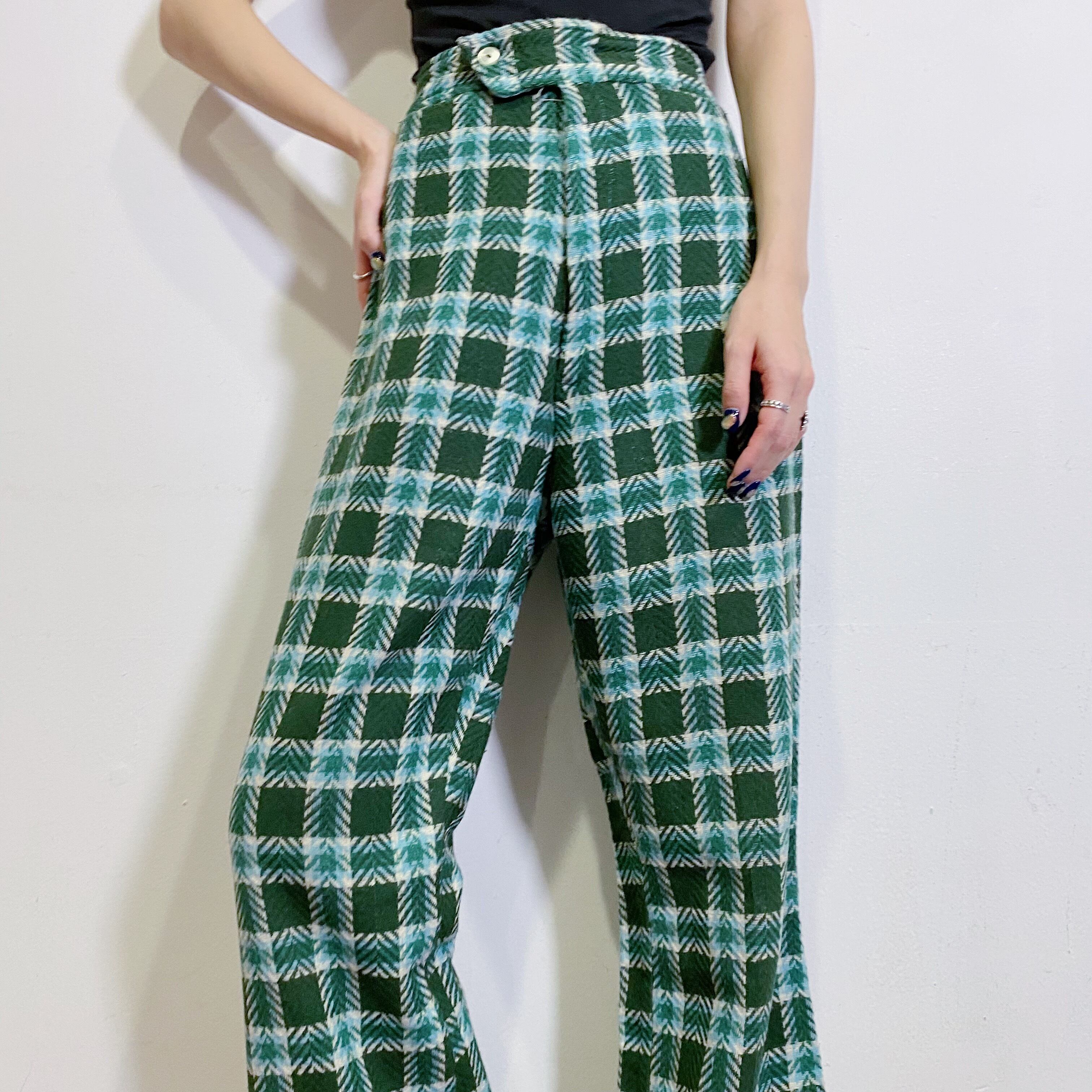 グリーンとサックスブルーのチェック柄が織られた、60年代のパンツです。