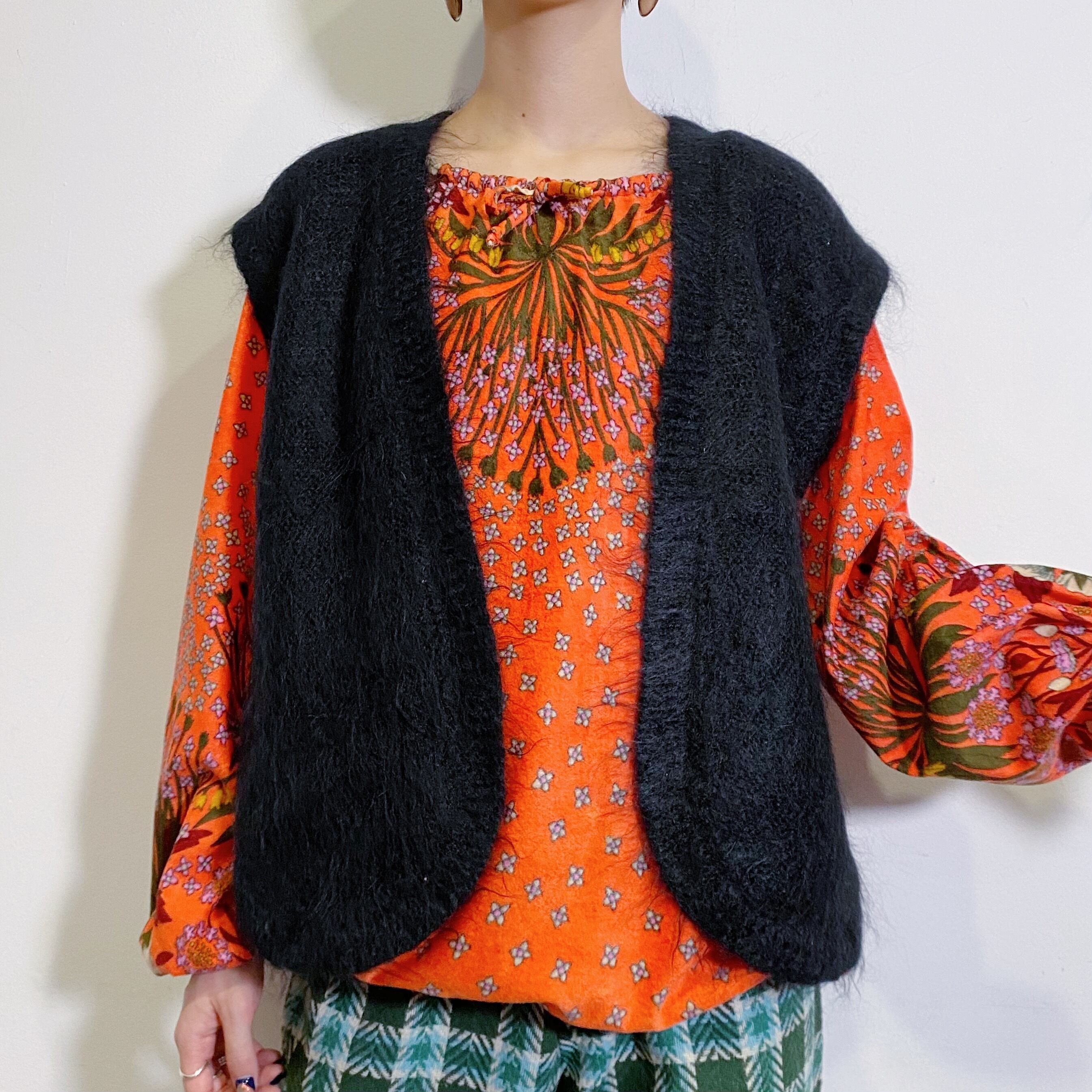 Black mohair knit vest