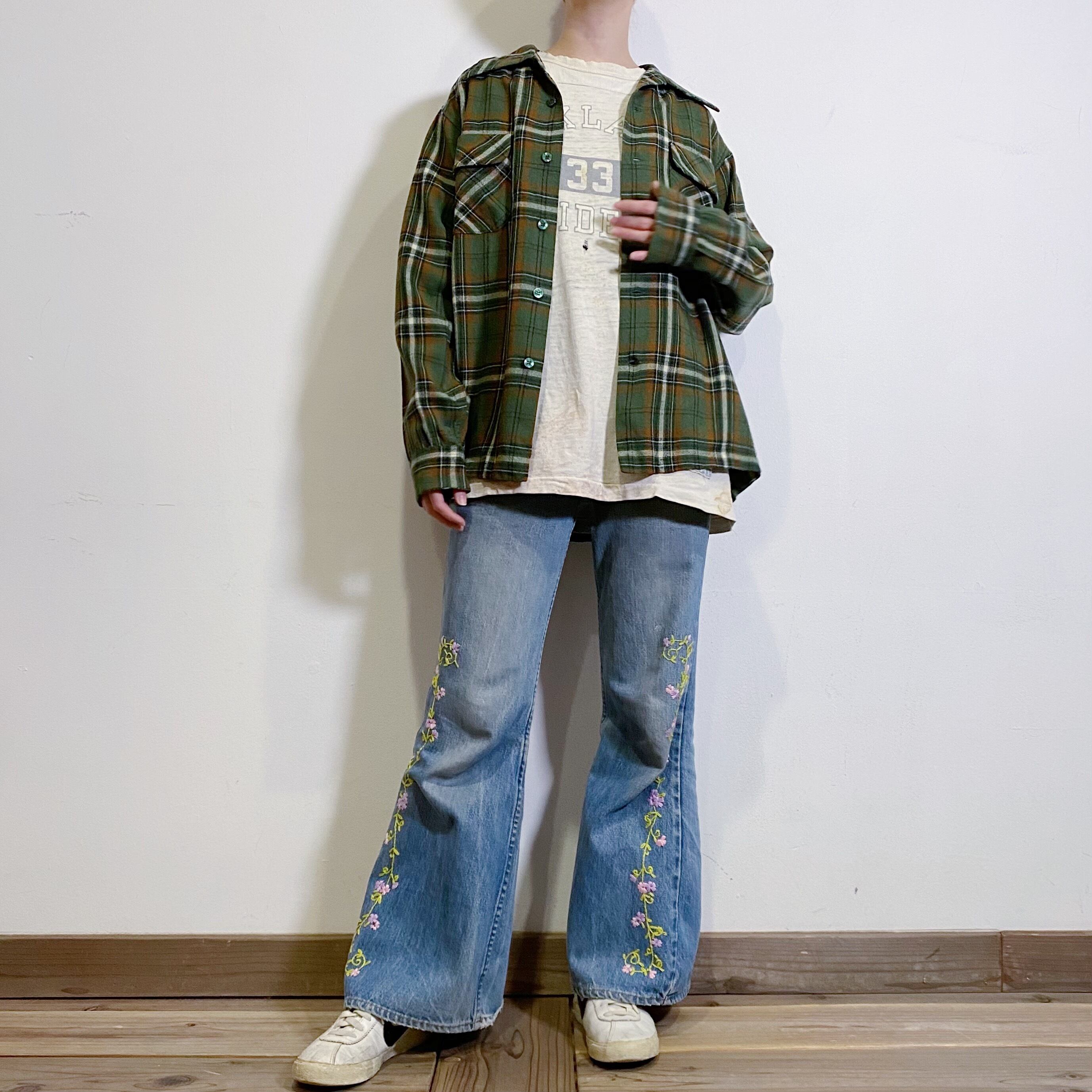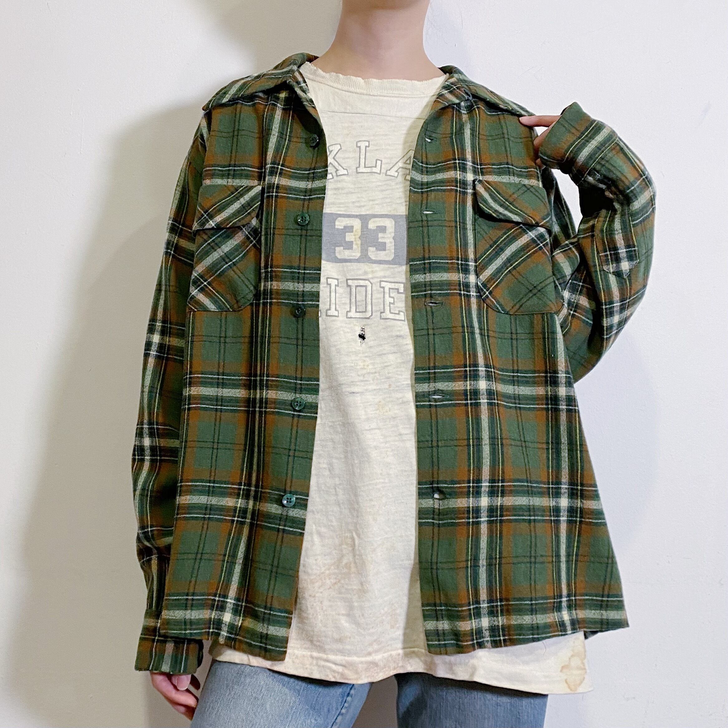 グリーンとオレンジブラウンの色味が可愛い、70年代のシャツです。
