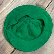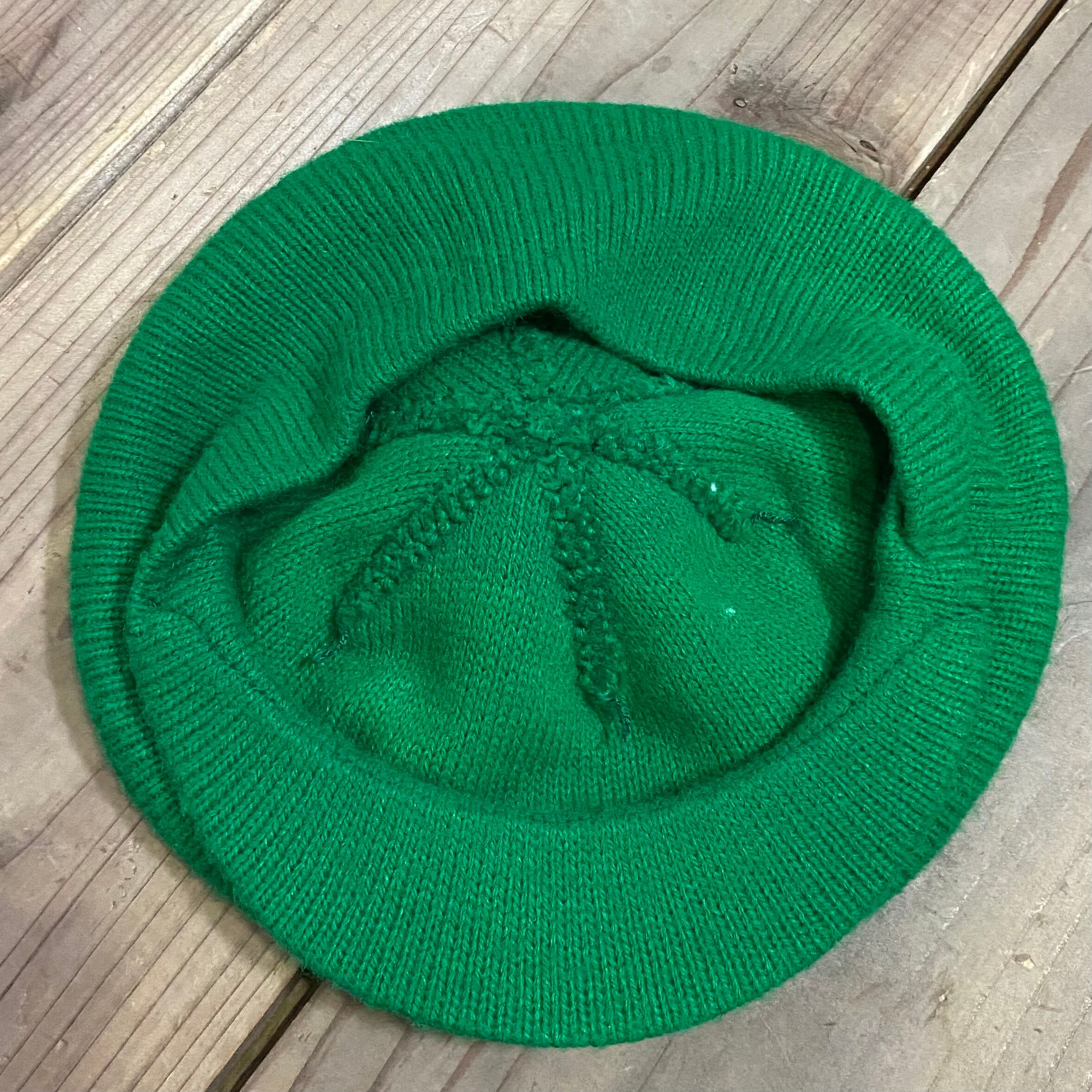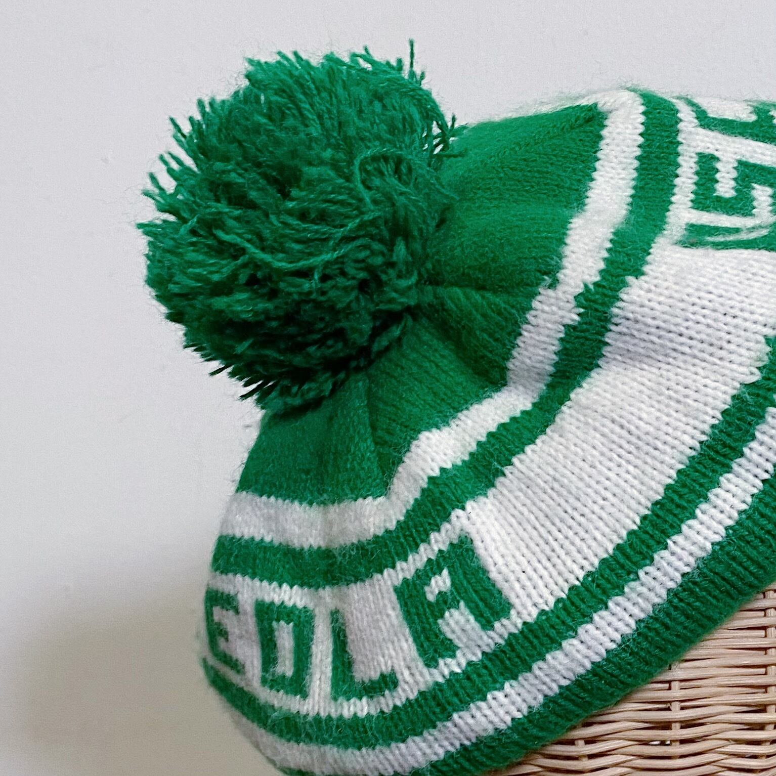 パッキリとしたグリーンと白の色合わせにポンポンが可愛い、ニットキャスケットです。