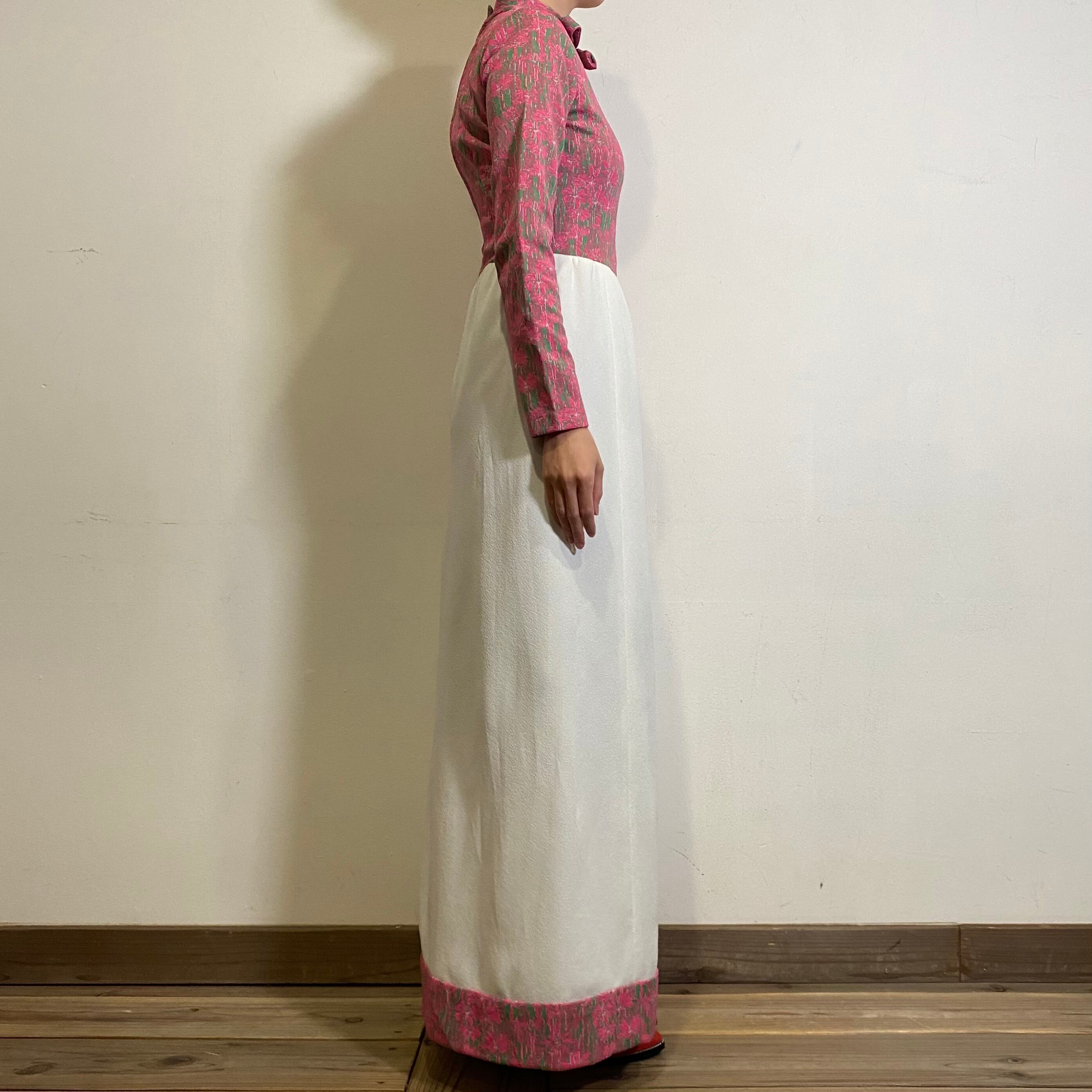 ピンク×白のウエスト切り替えのデザインが可愛い、70年代のワンピースです。