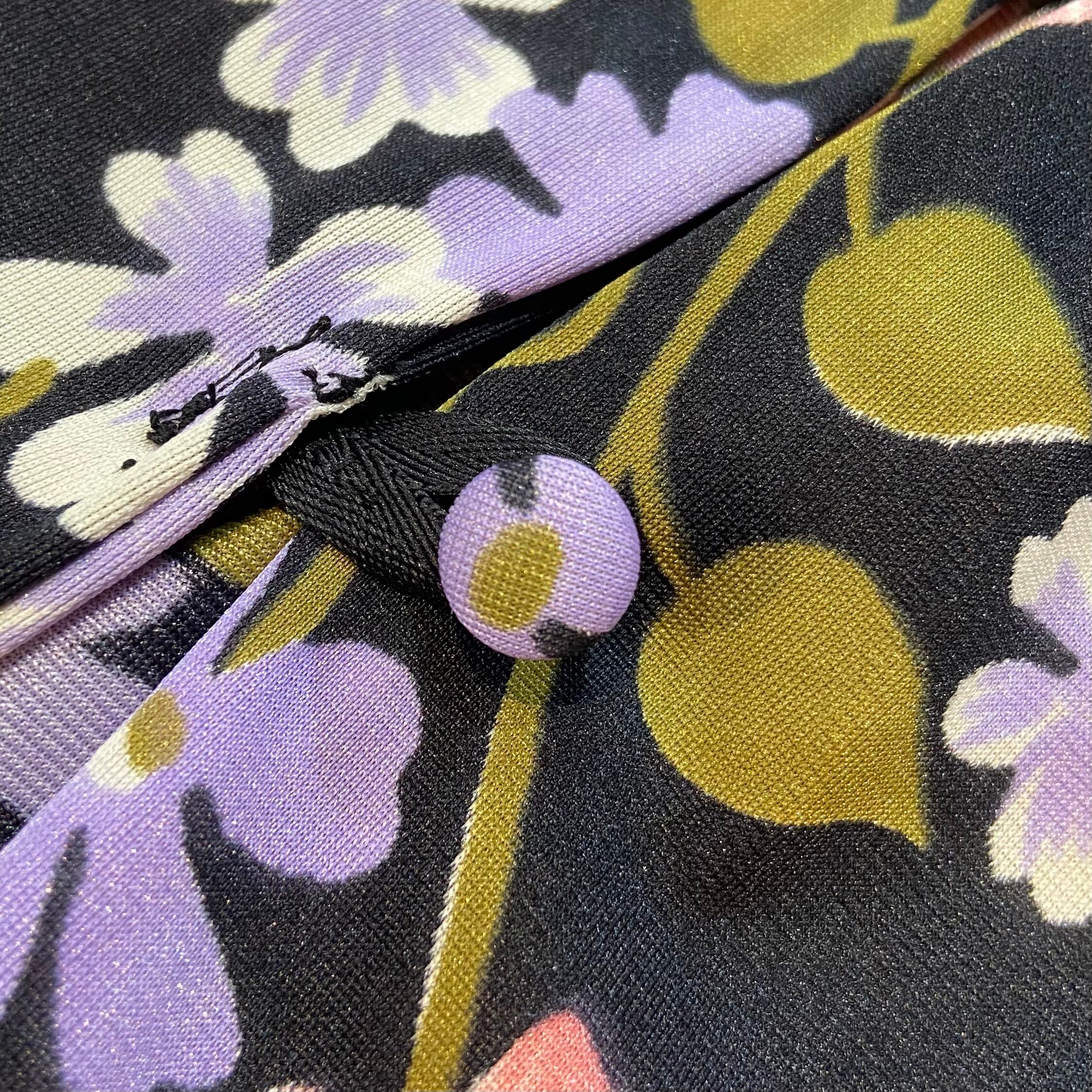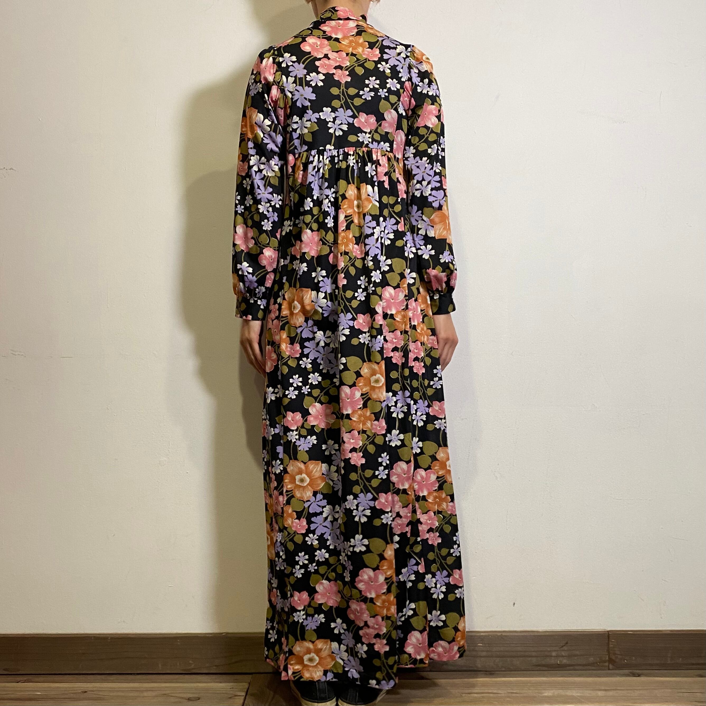 ピンクやパープル、オレンジの花柄が可愛い、70年代のワンピースです。