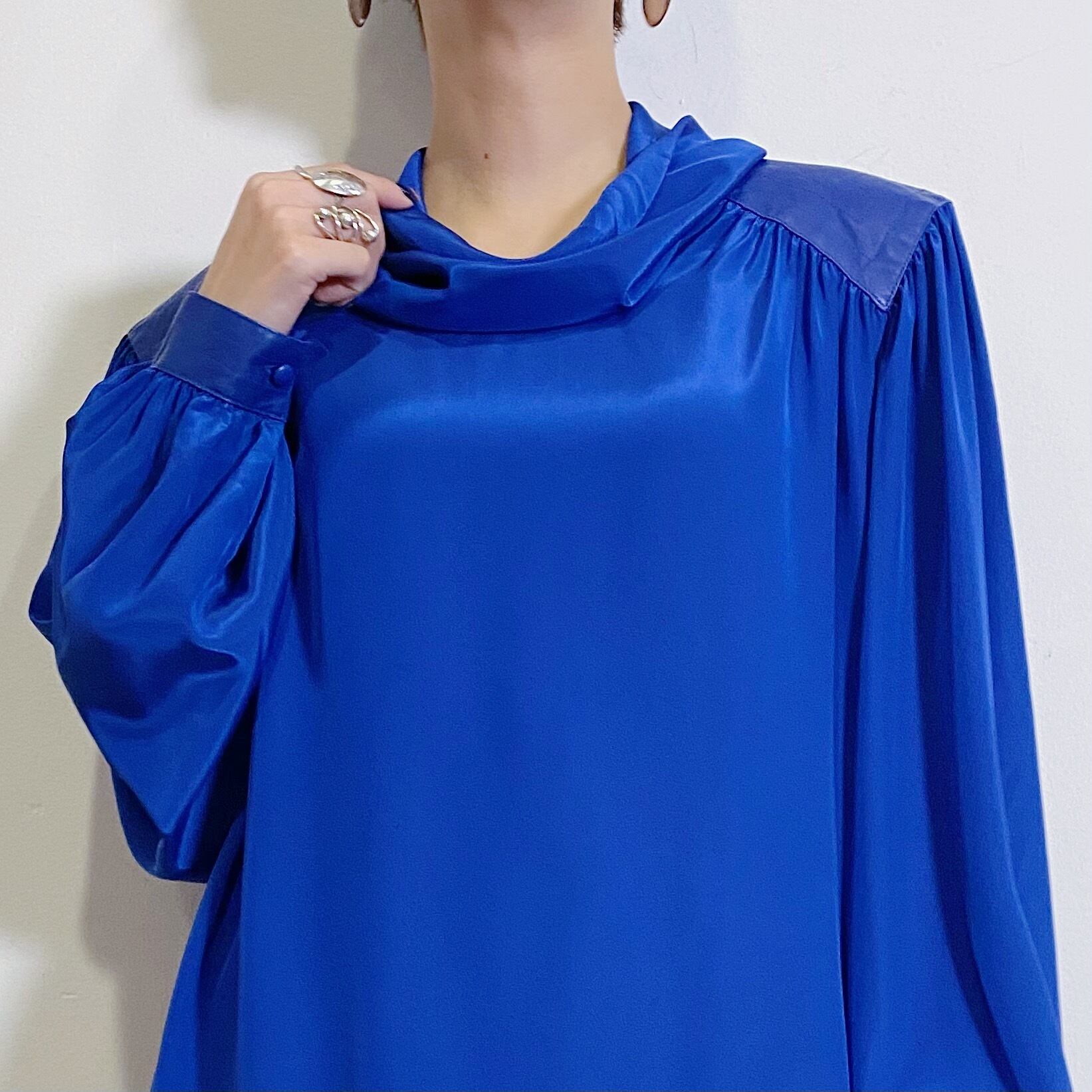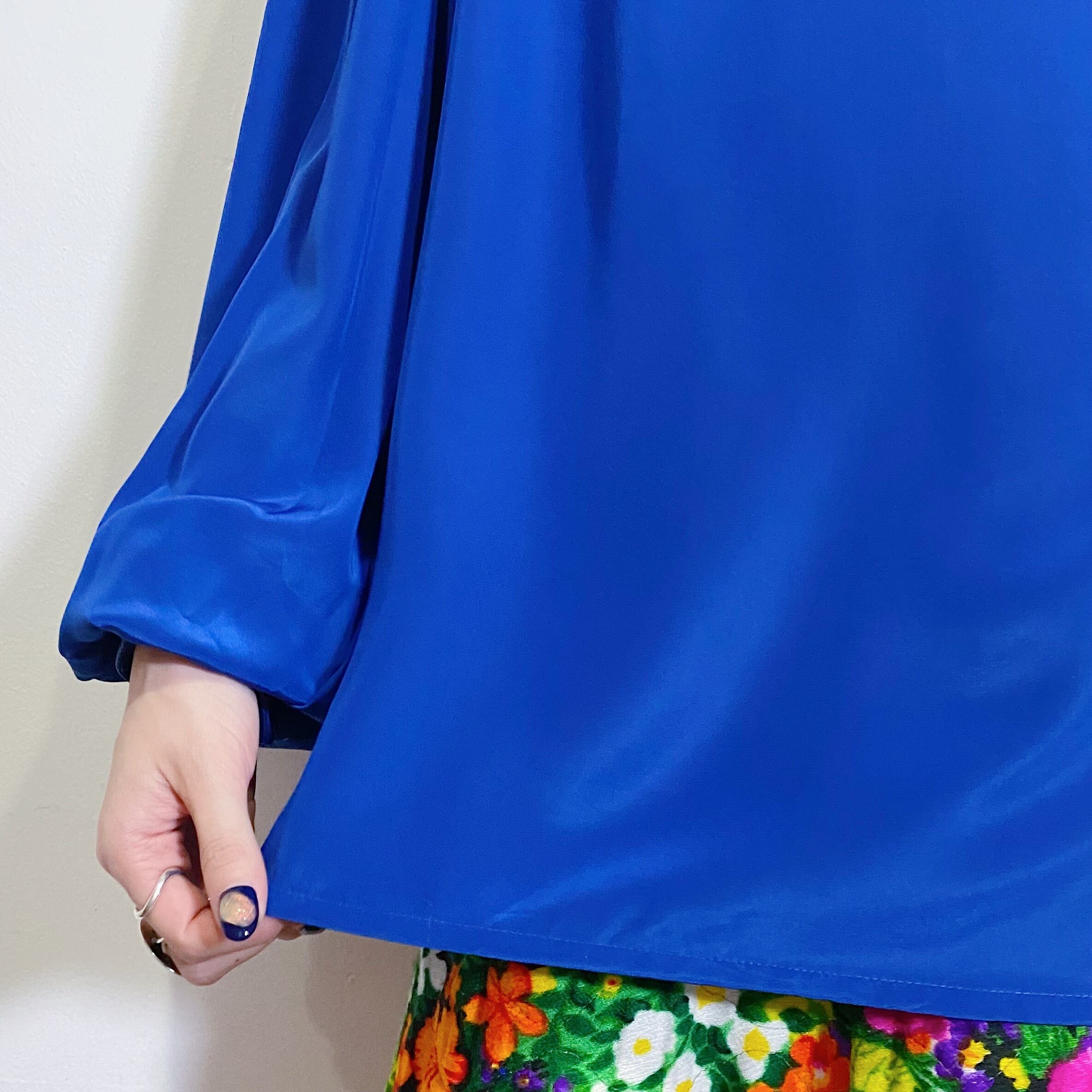 鮮やかなブルーにとろんとした素材感が可愛い、80年代のトップスです。
