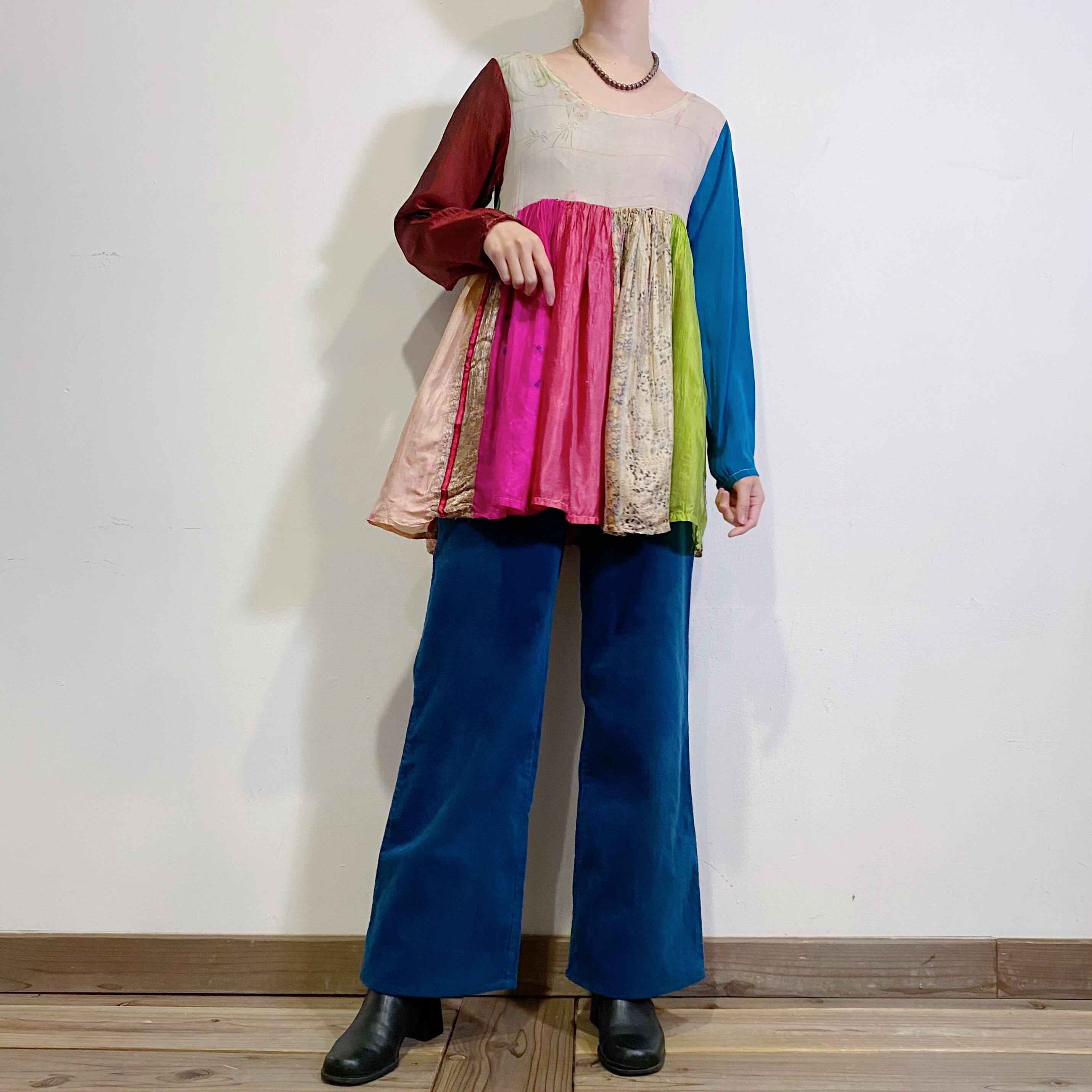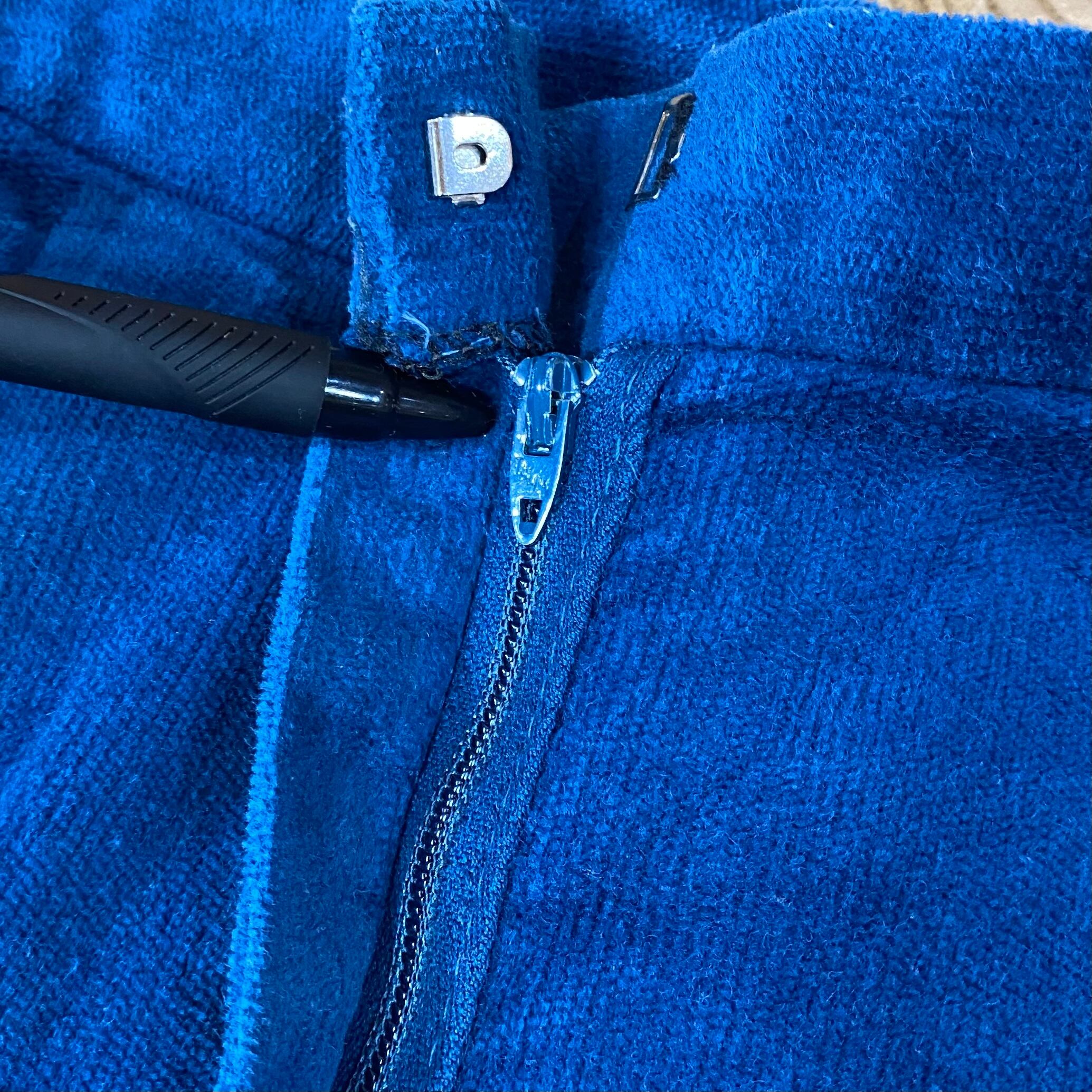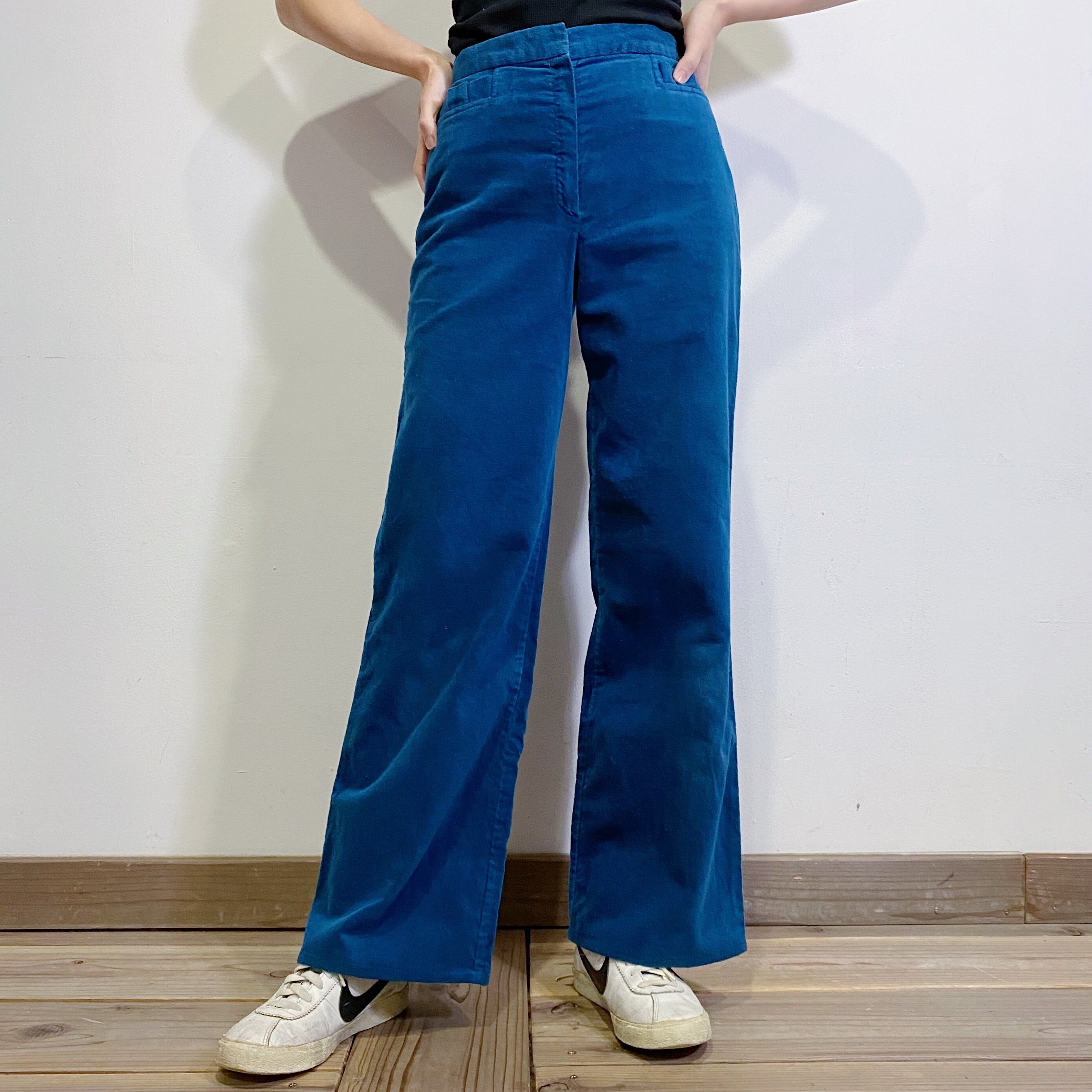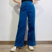 綺麗なターコイズブルーカラーが可愛い、70年代のフレアパンツです。