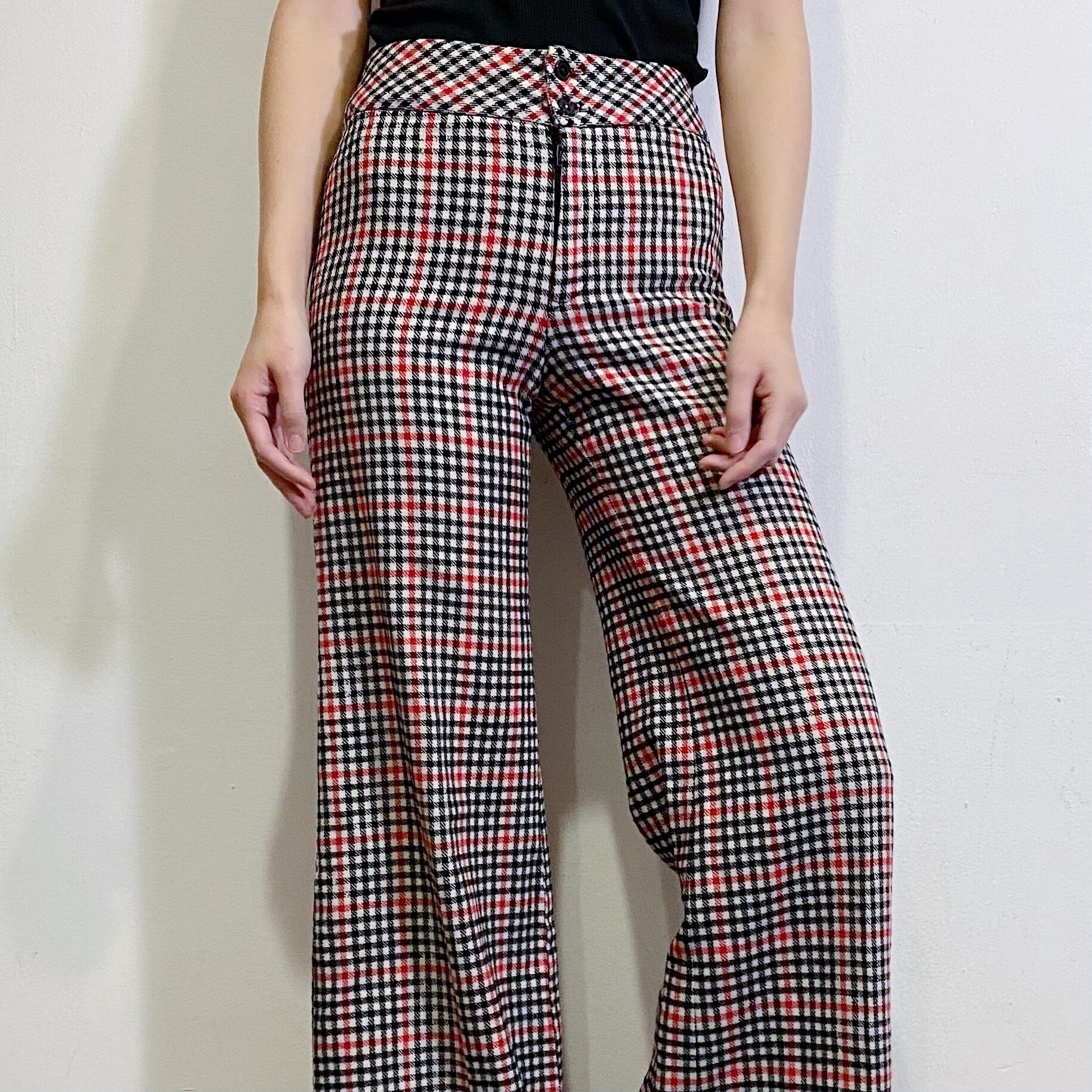 赤と黒のチェックが可愛い、70年代のフレアパンツです。