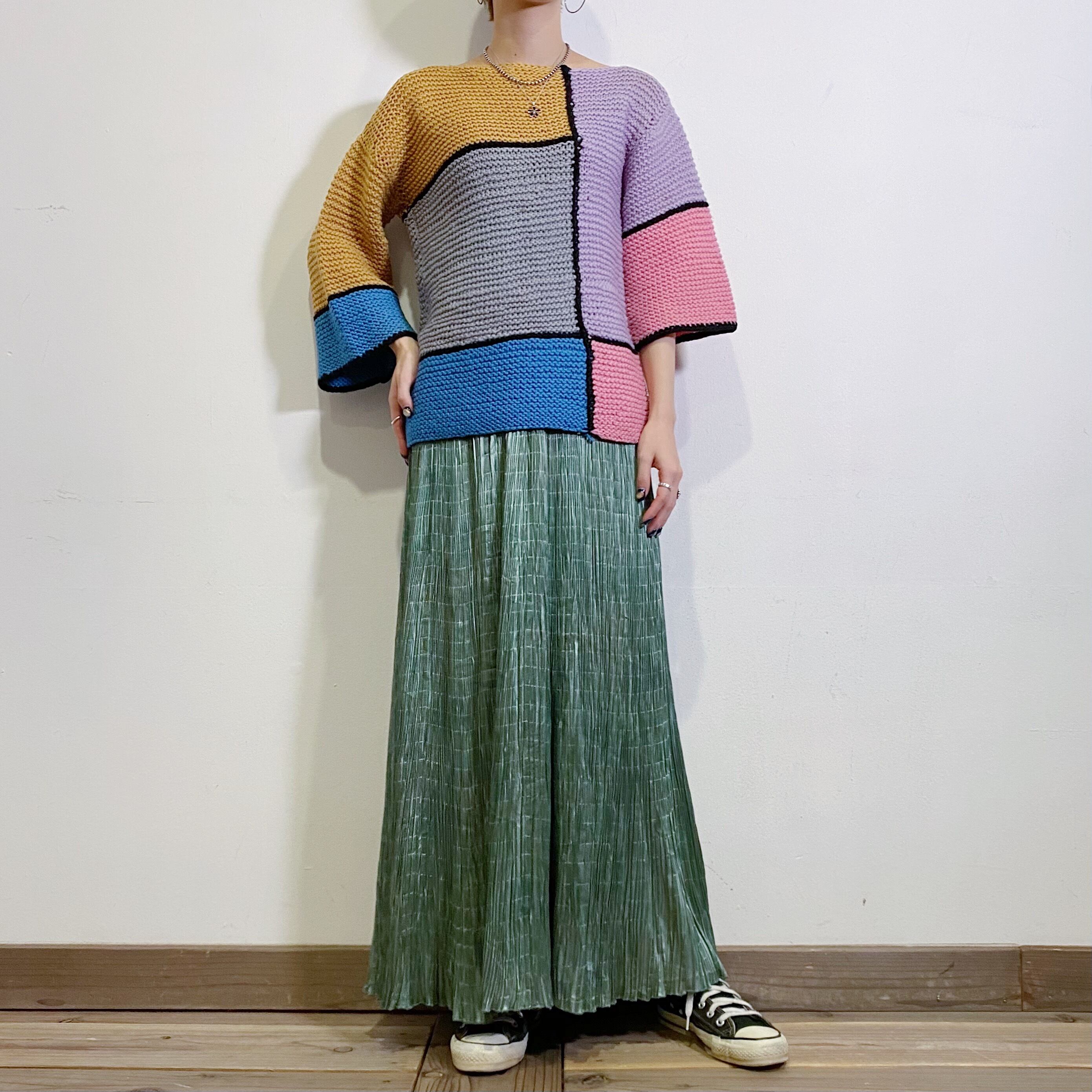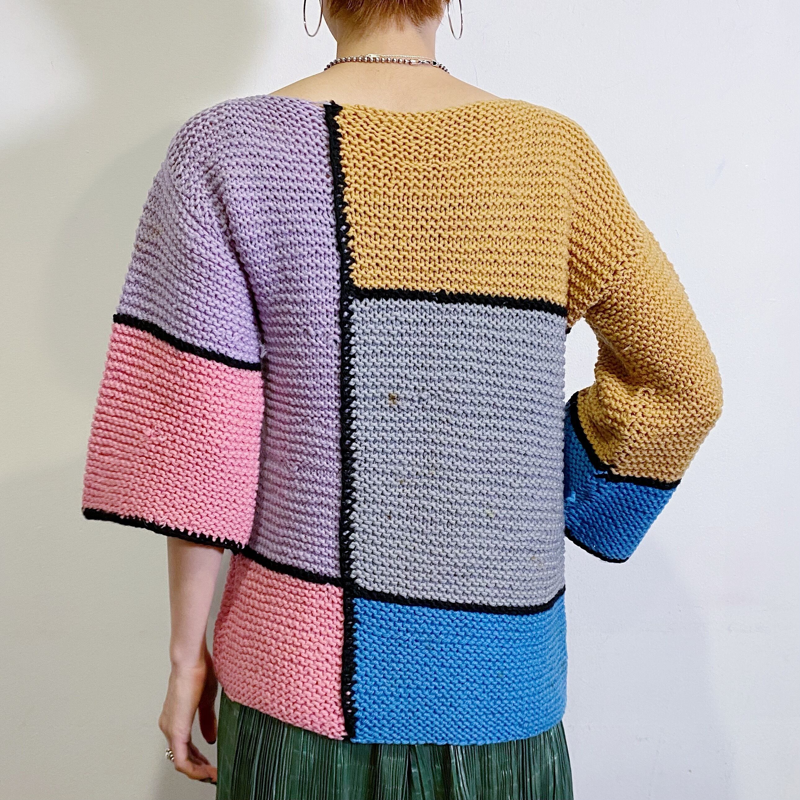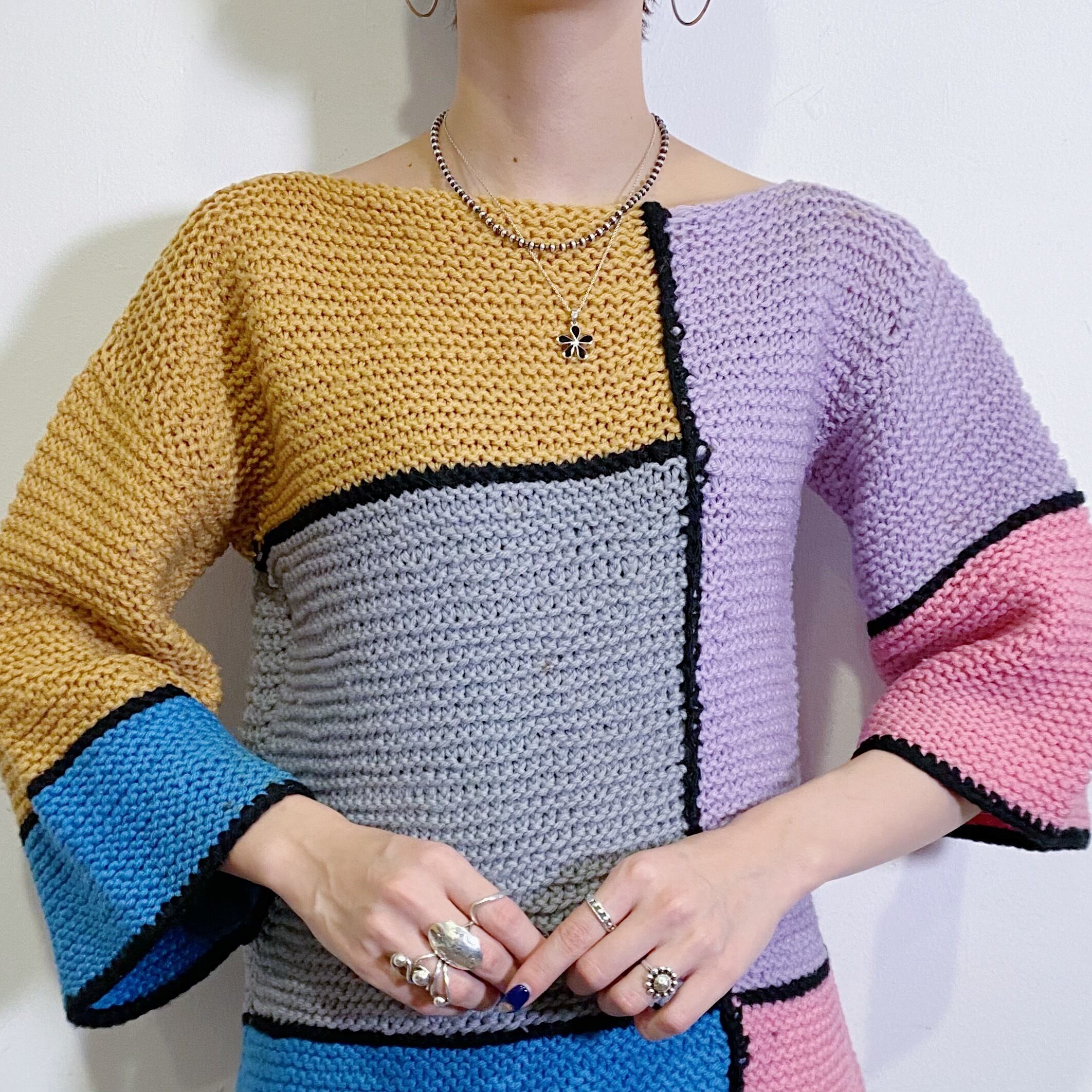モンドリアンスタイルを思わせるデザインが可愛い、60年代のニットセーターです。