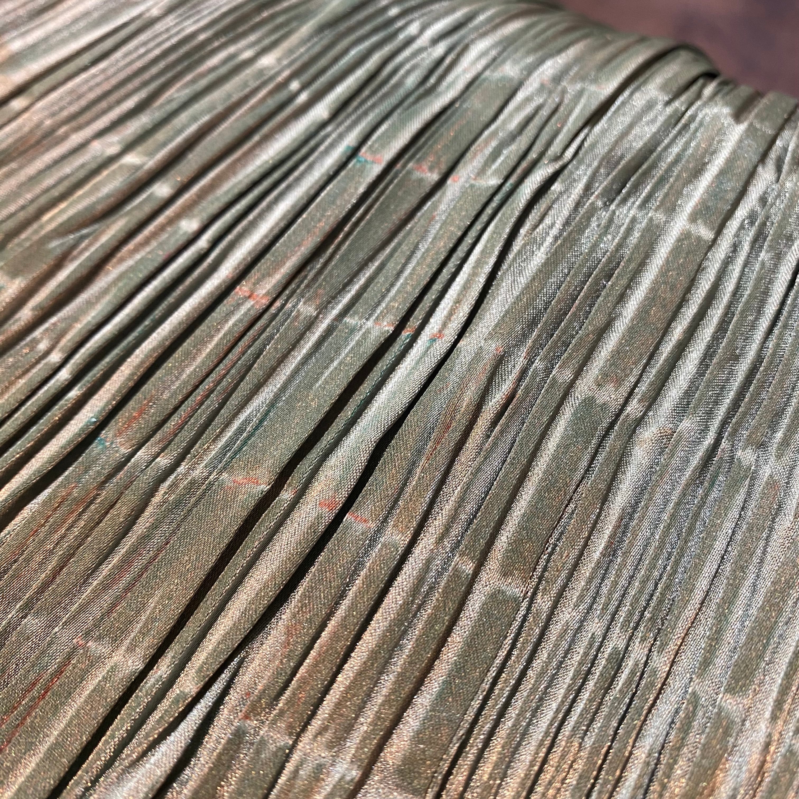 細かいプリーツのようなシワ加工が施されており、光沢感と相まってモードな雰囲気になります。