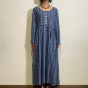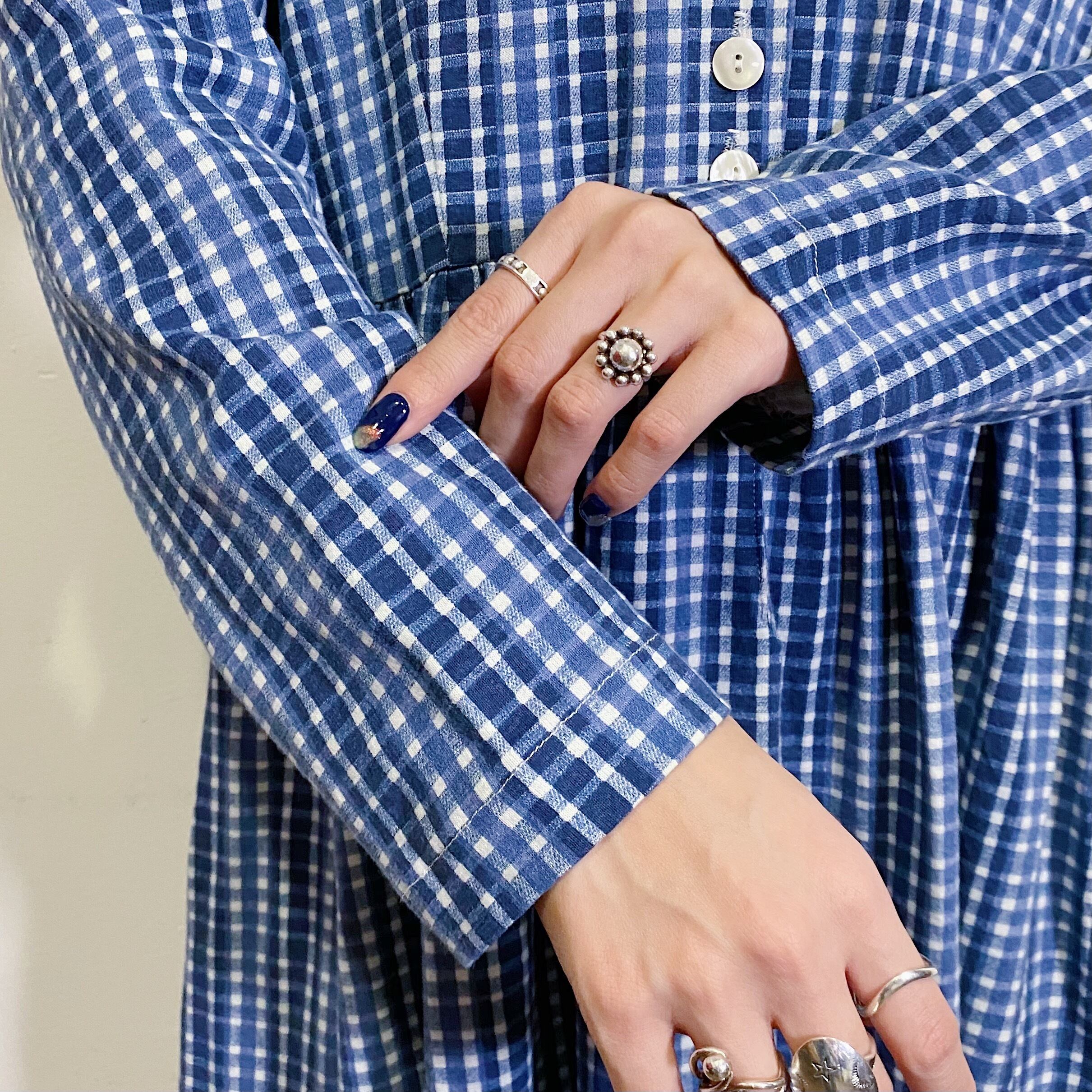 青×白のギンガムチェックが可愛い、80年代のワンピースです。