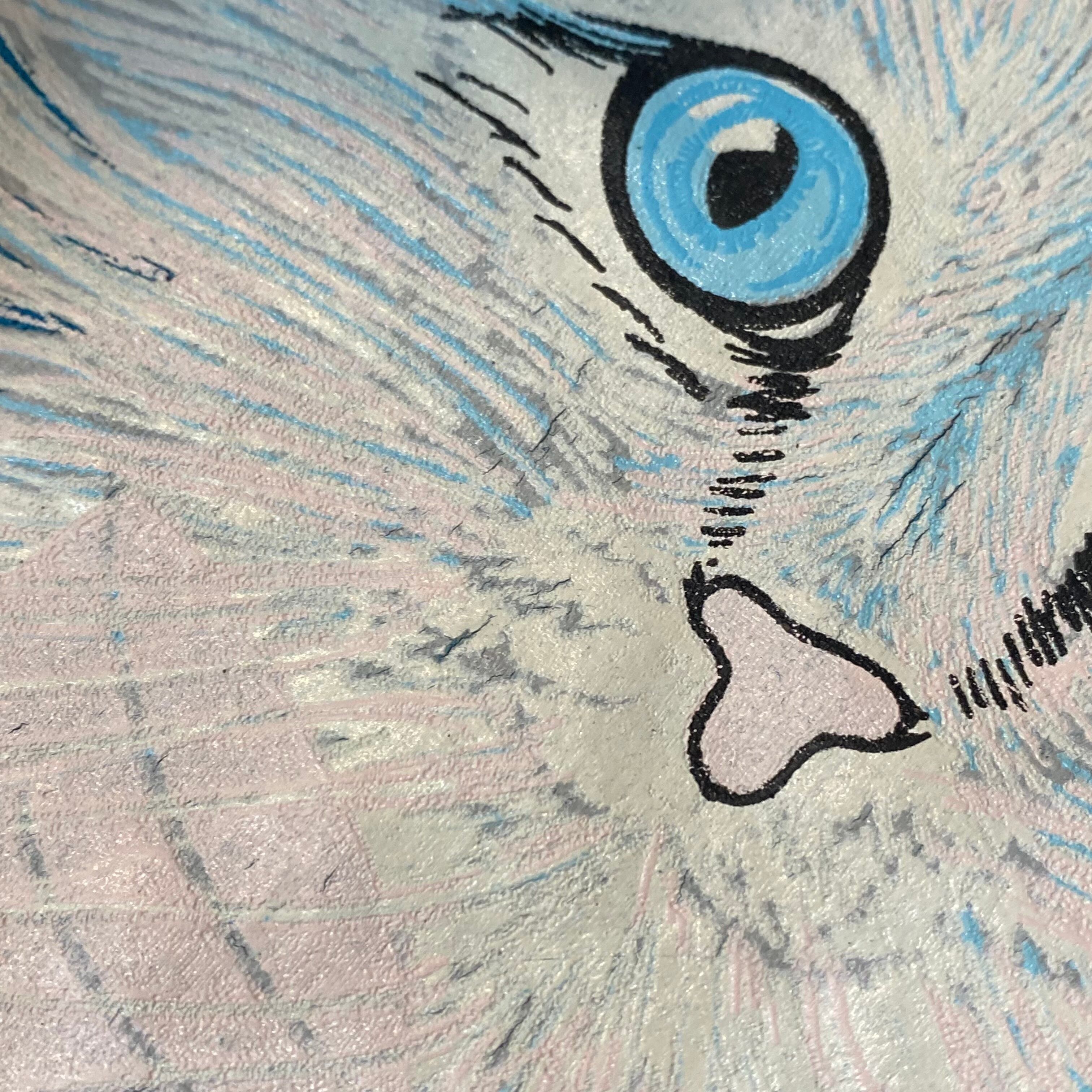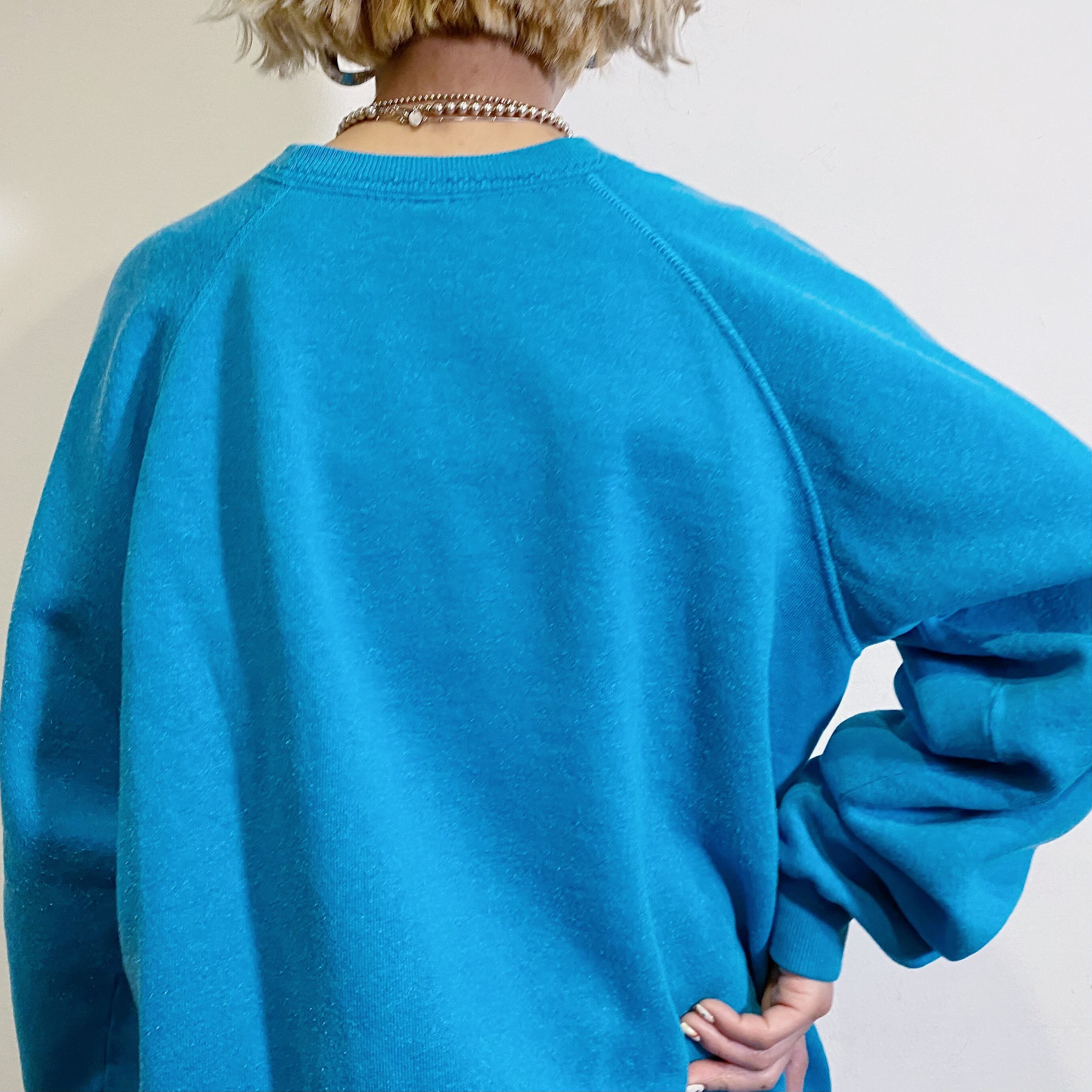 リボンをつけた猫ちゃんのお顔がプリントされた、80年代のスウェットです。