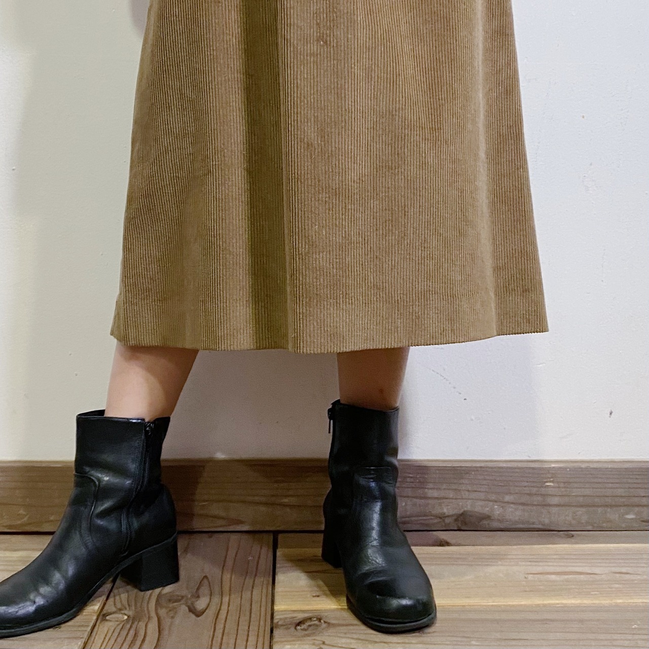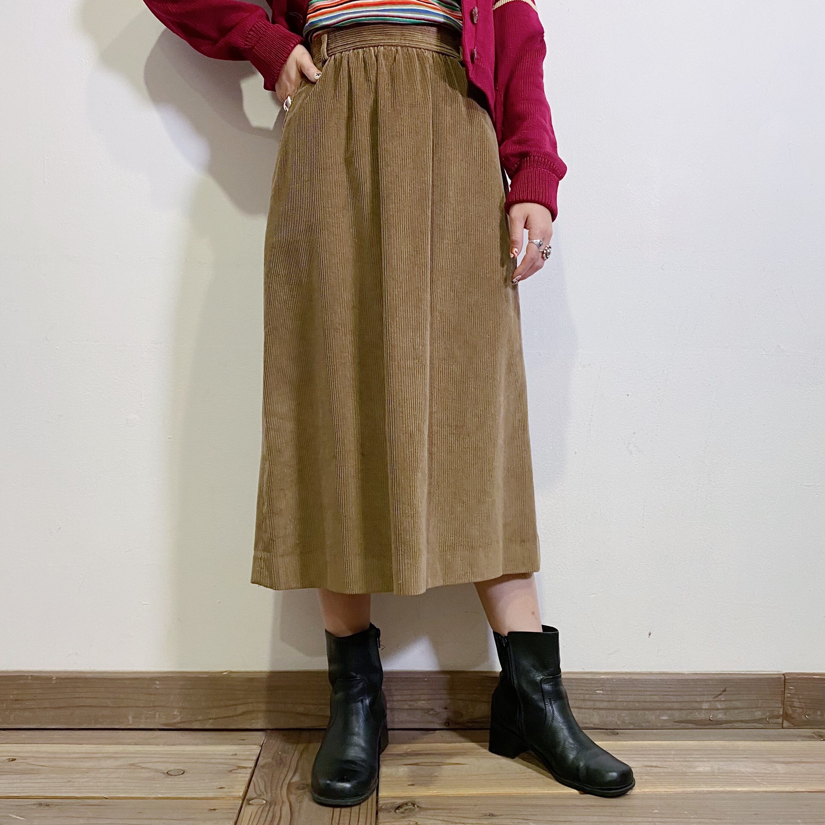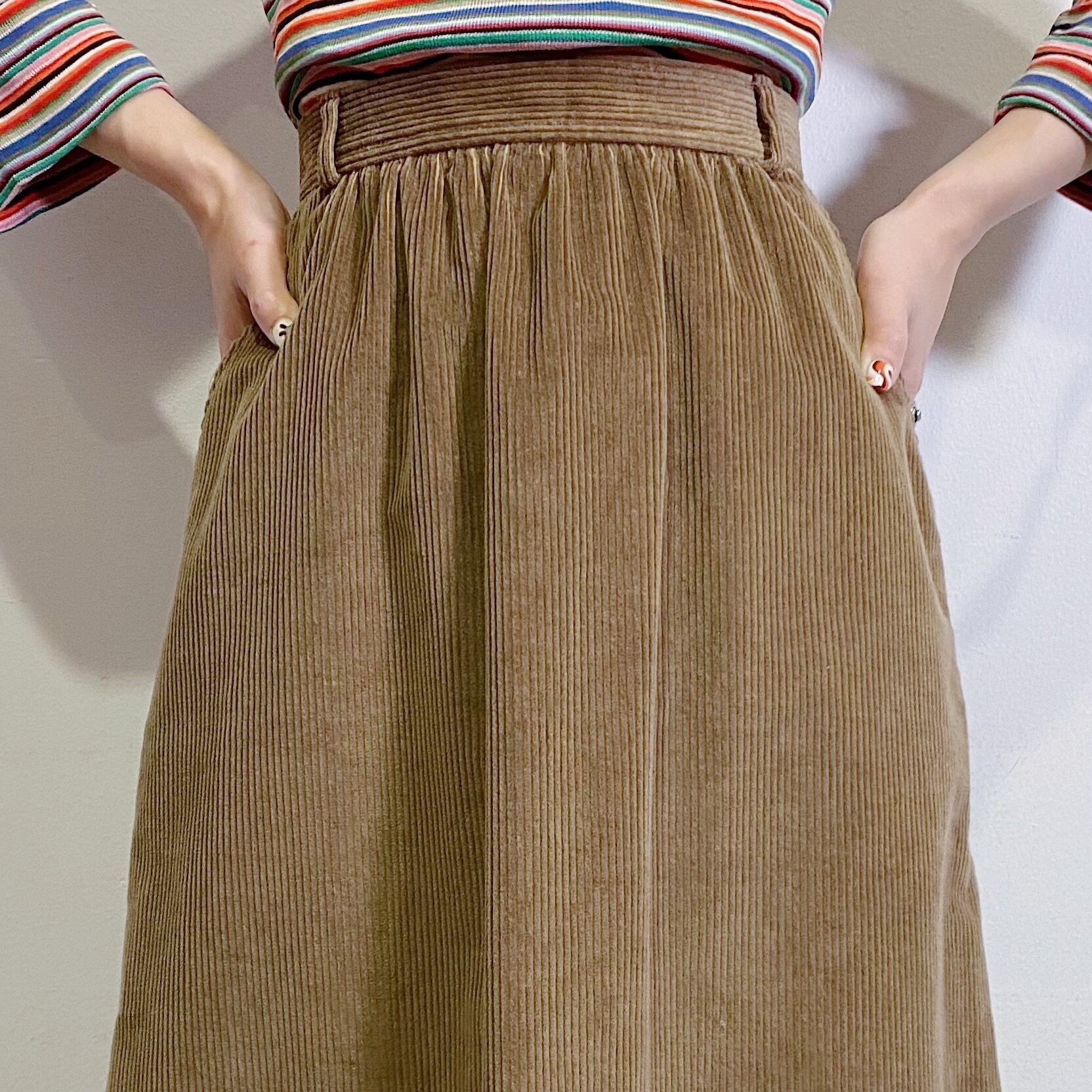 ブラウンカラーで使い勝手の良さそうな、コーデュロイ素材のスカートです。