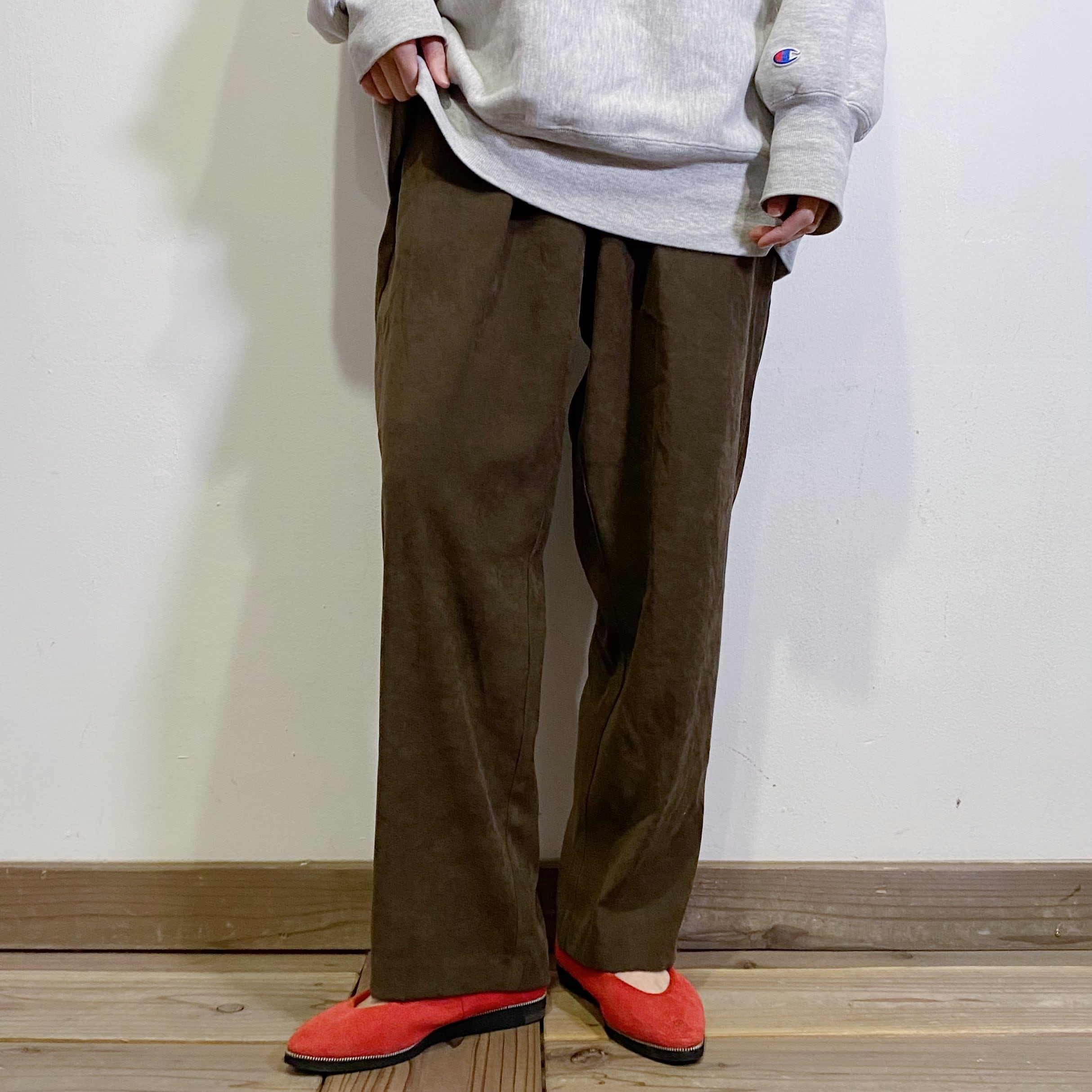 ゆるっとした雰囲気の、ブラウンカラーのイージーパンツです。