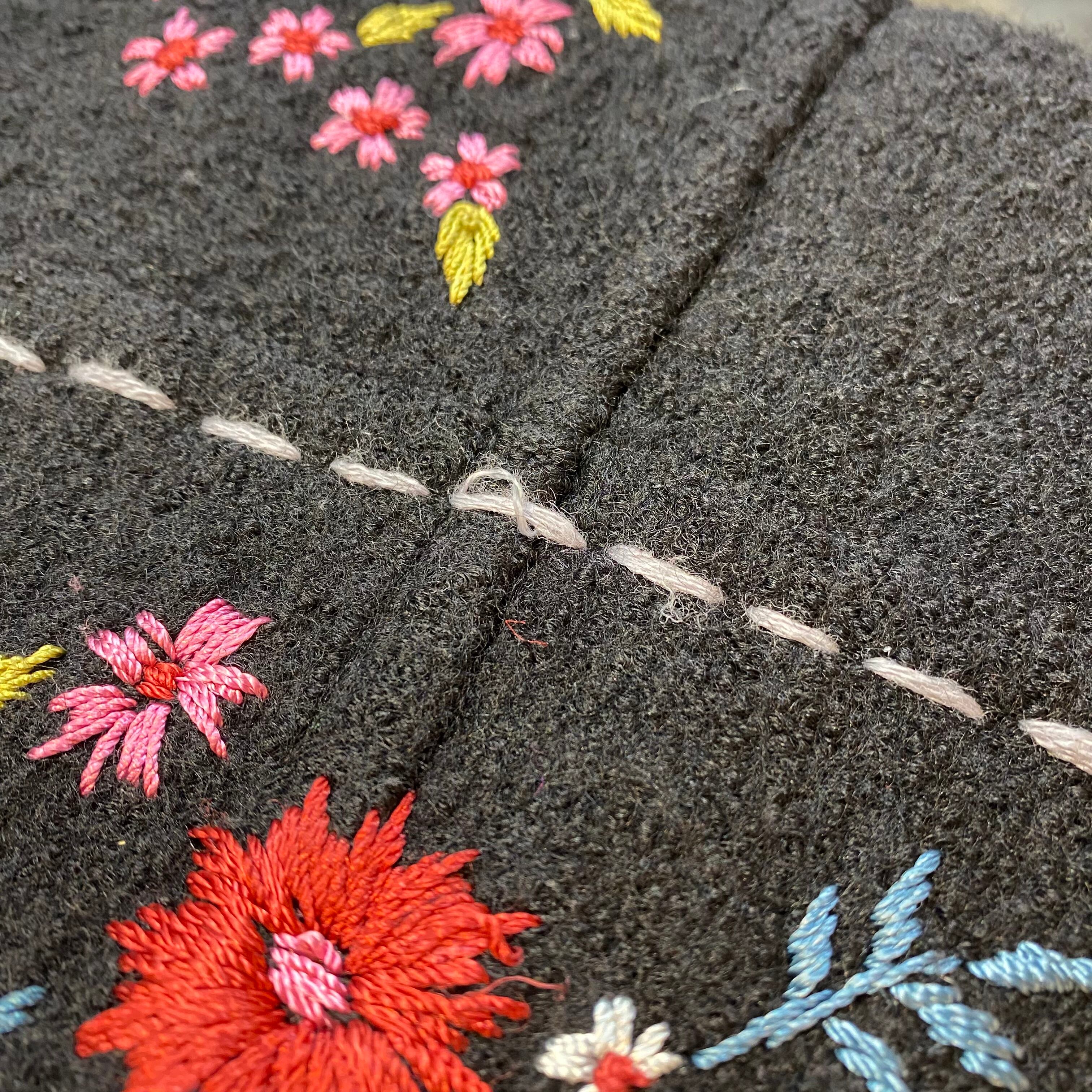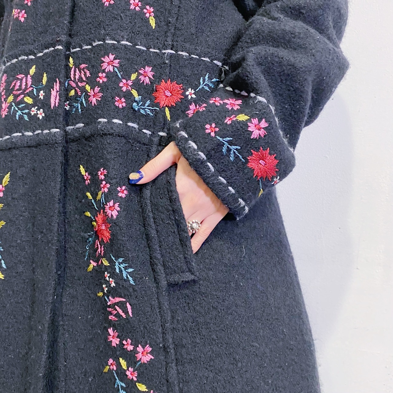 カラフルで華やかなお花の刺繍がとても可愛い、90年代のロングコートです。