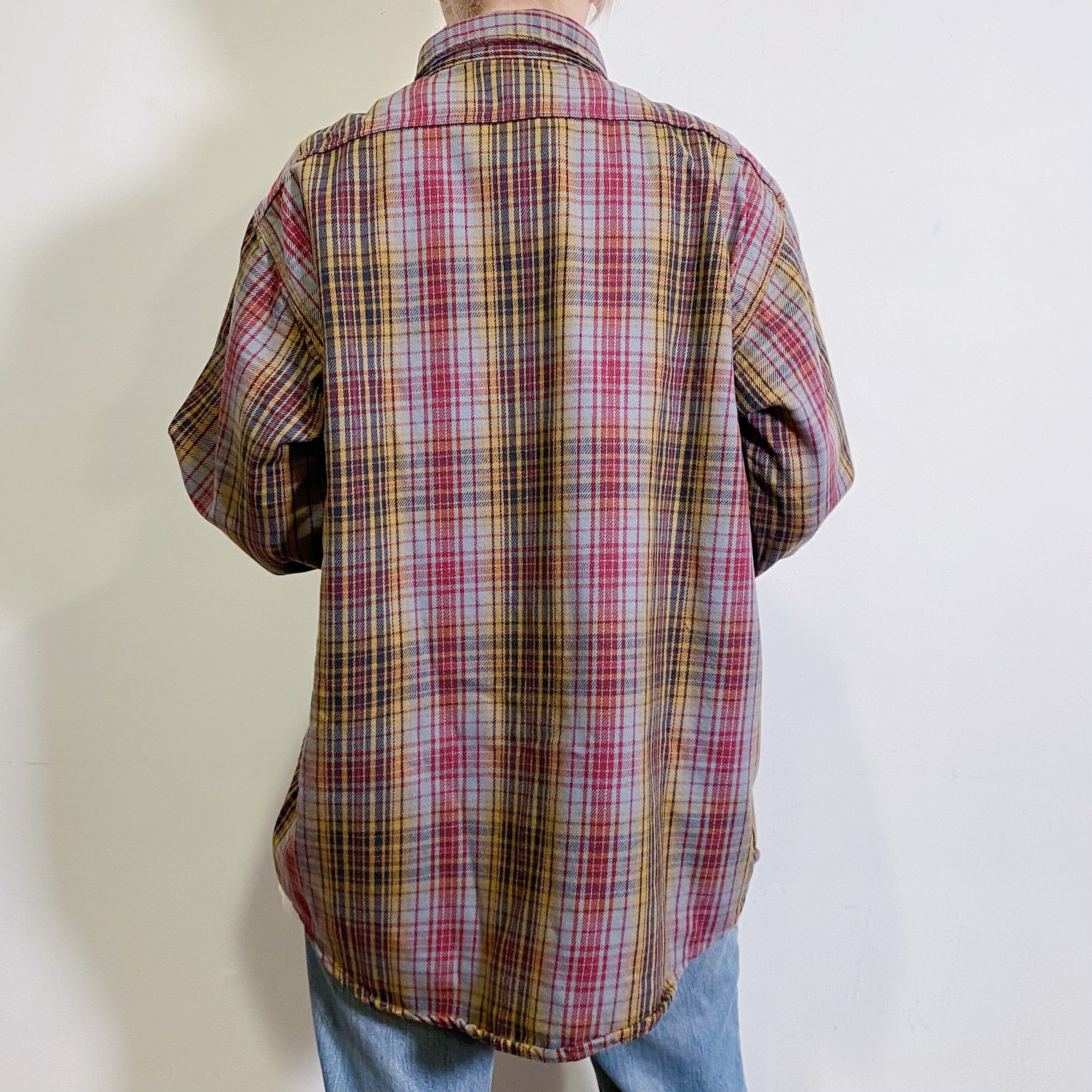 グレー地にマスタードやボルドーカラーのチェック柄が可愛い、80年代のcarharttのシャツです。