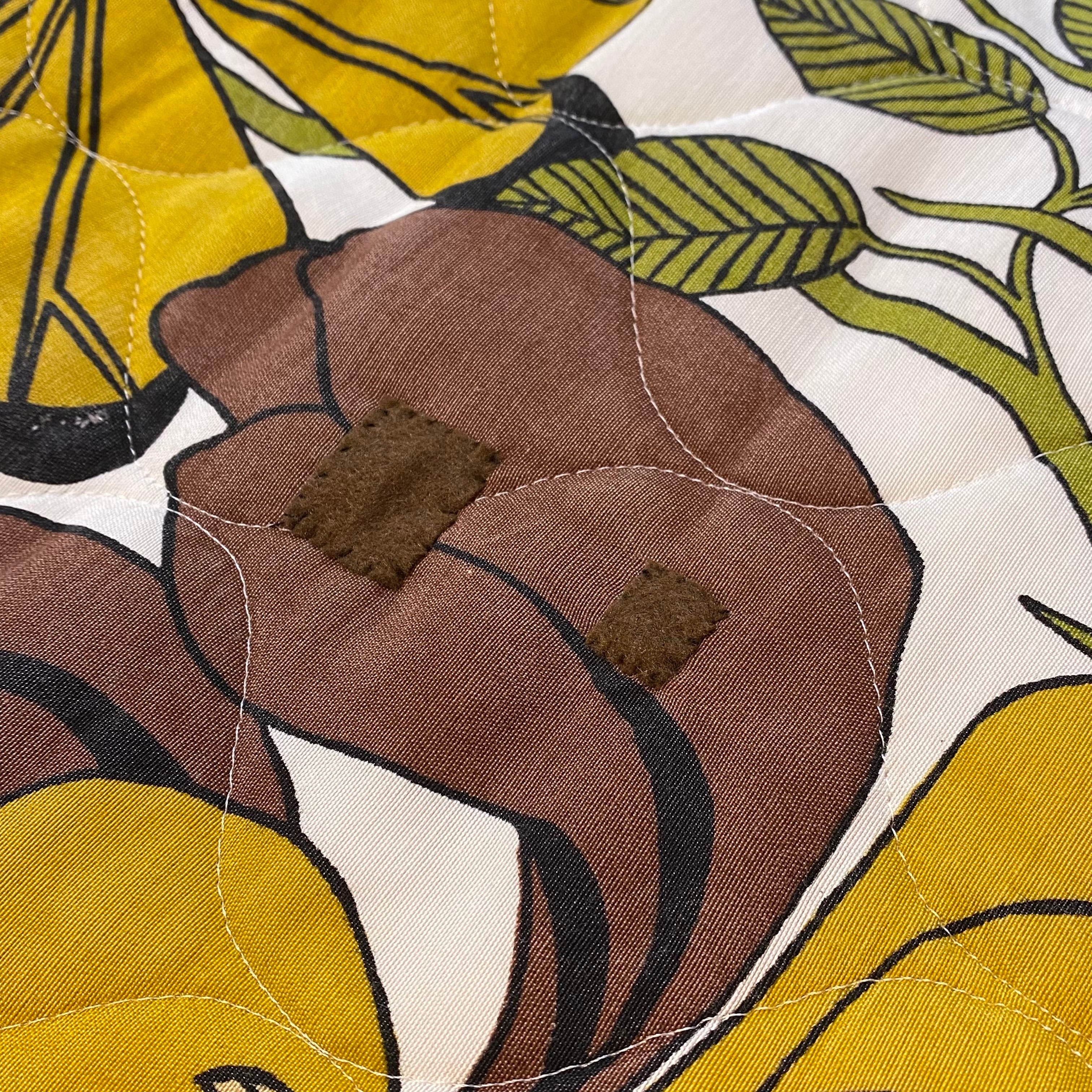 バックスカート部分にはダメージを上からフェルトで当てた箇所が見受けられますが、いずれも柄に紛れてあまり気にならない程度かと思われます。