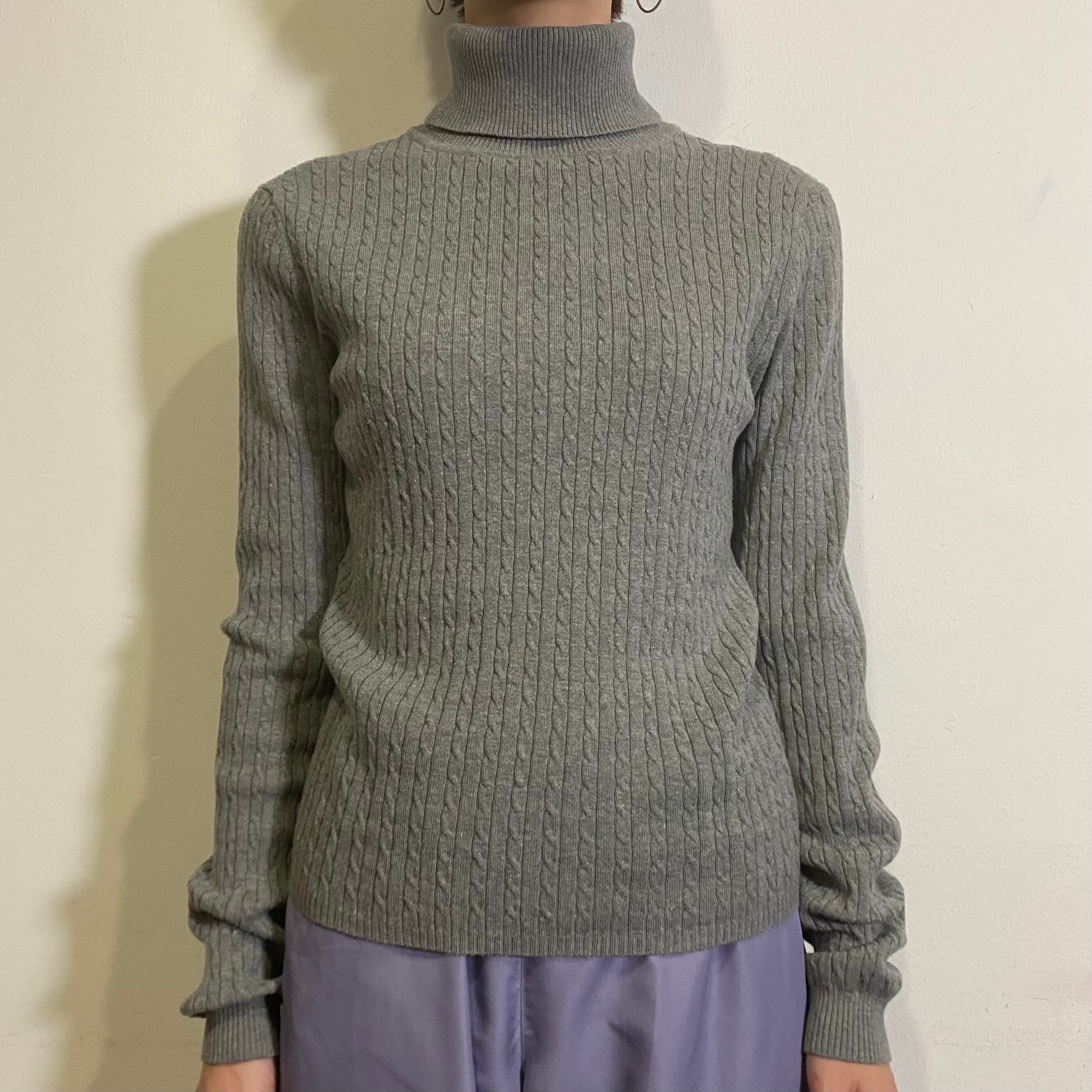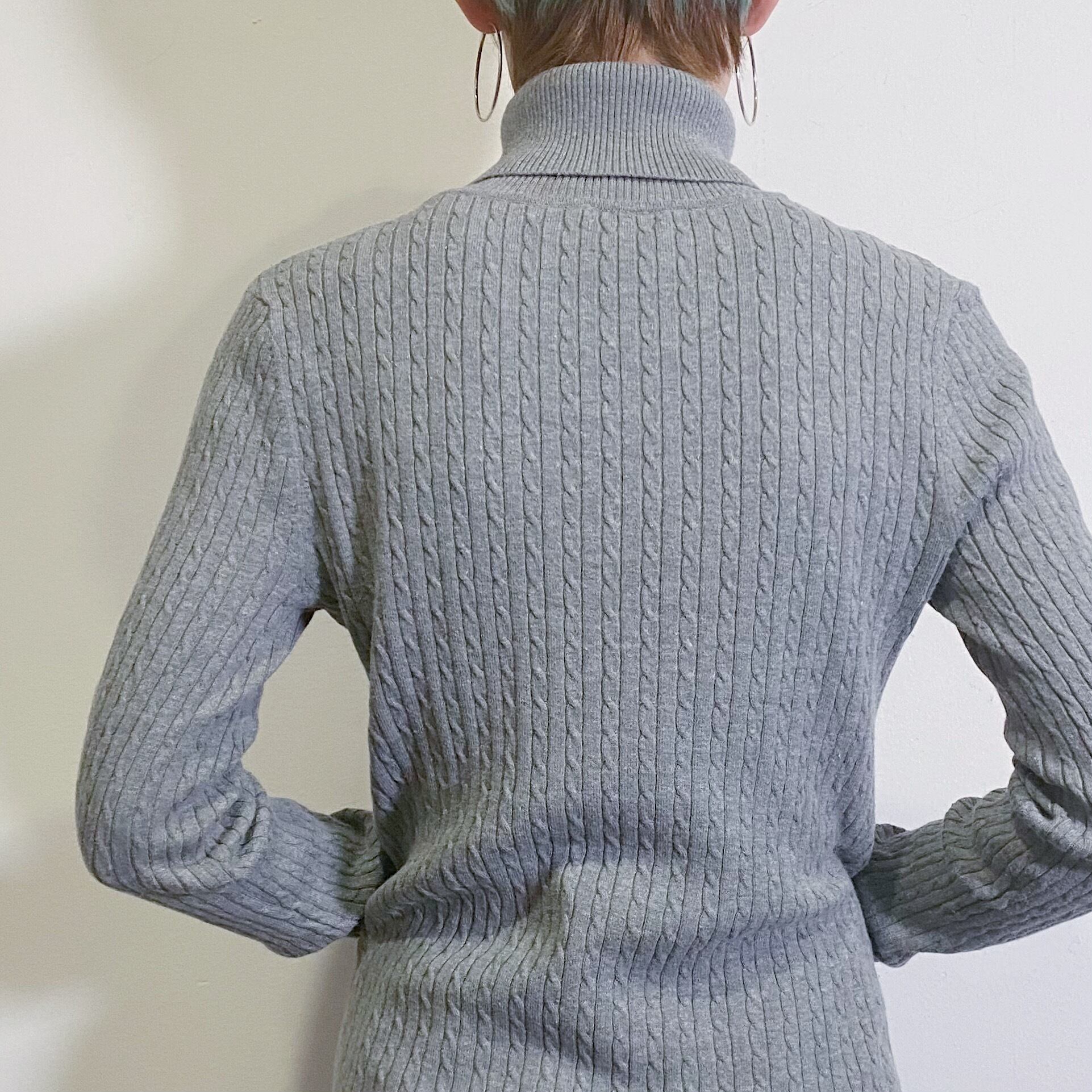ライトグレーカラーで使い勝手のいい、タートルネックニットです。