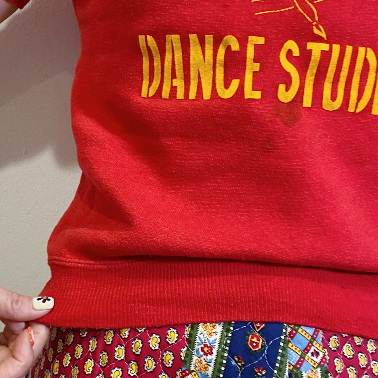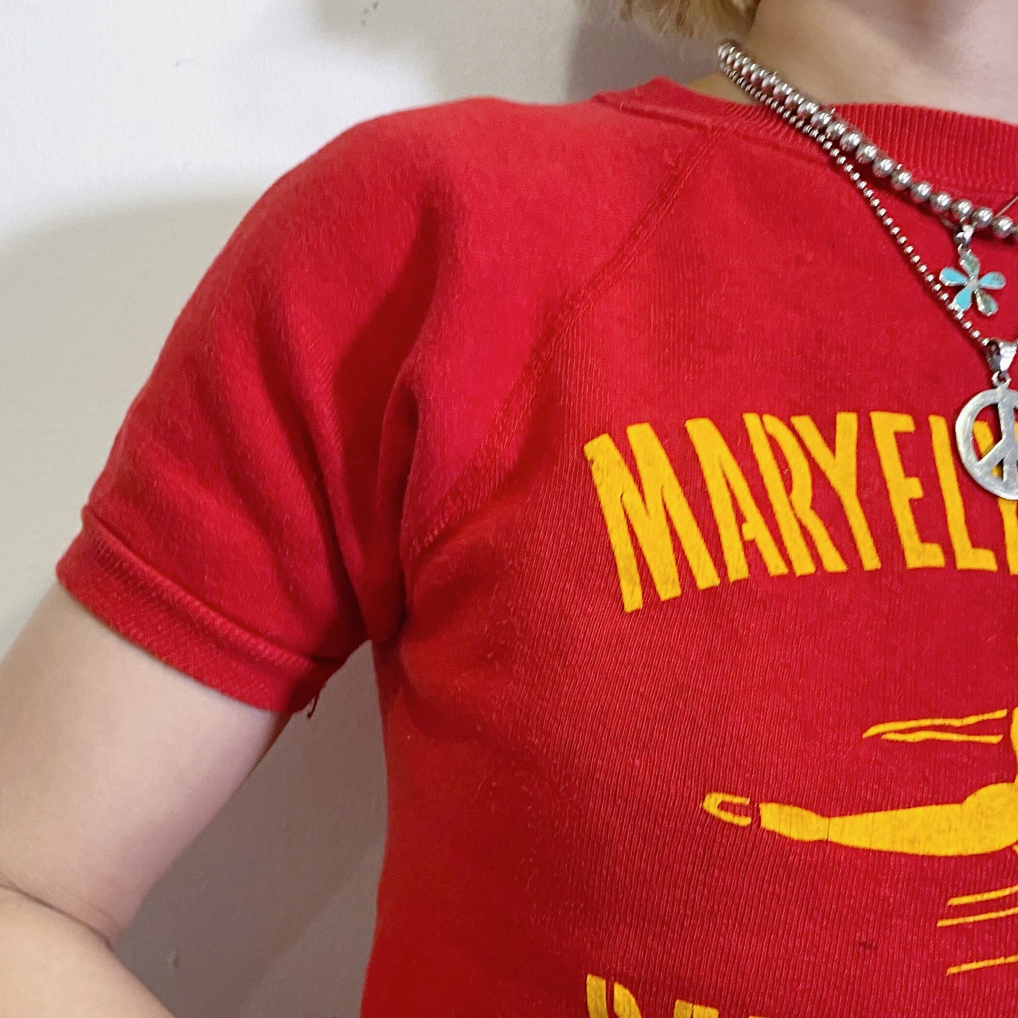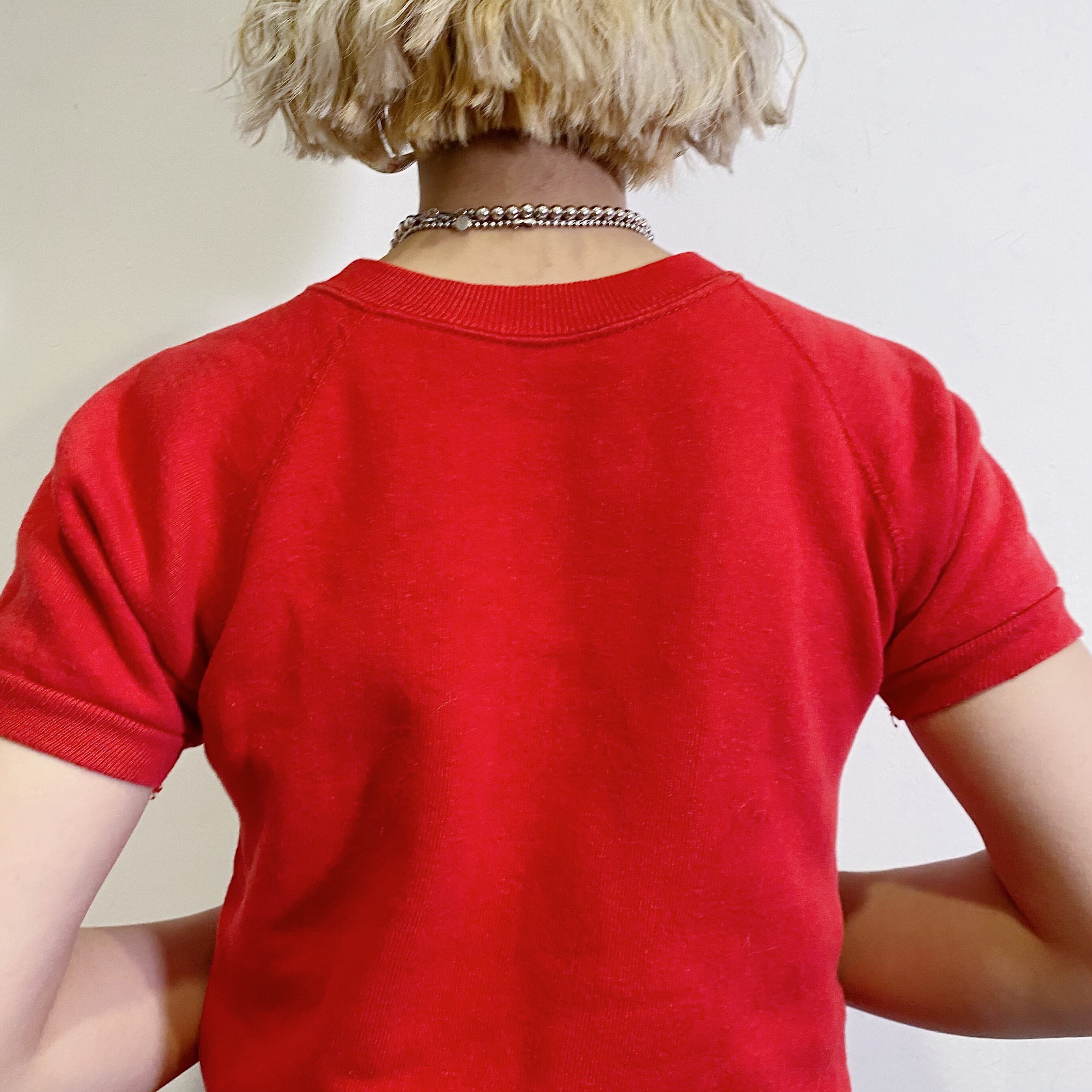 レッドカラーにイエローの組み合わせが可愛い、70年代の半袖スウェットです。