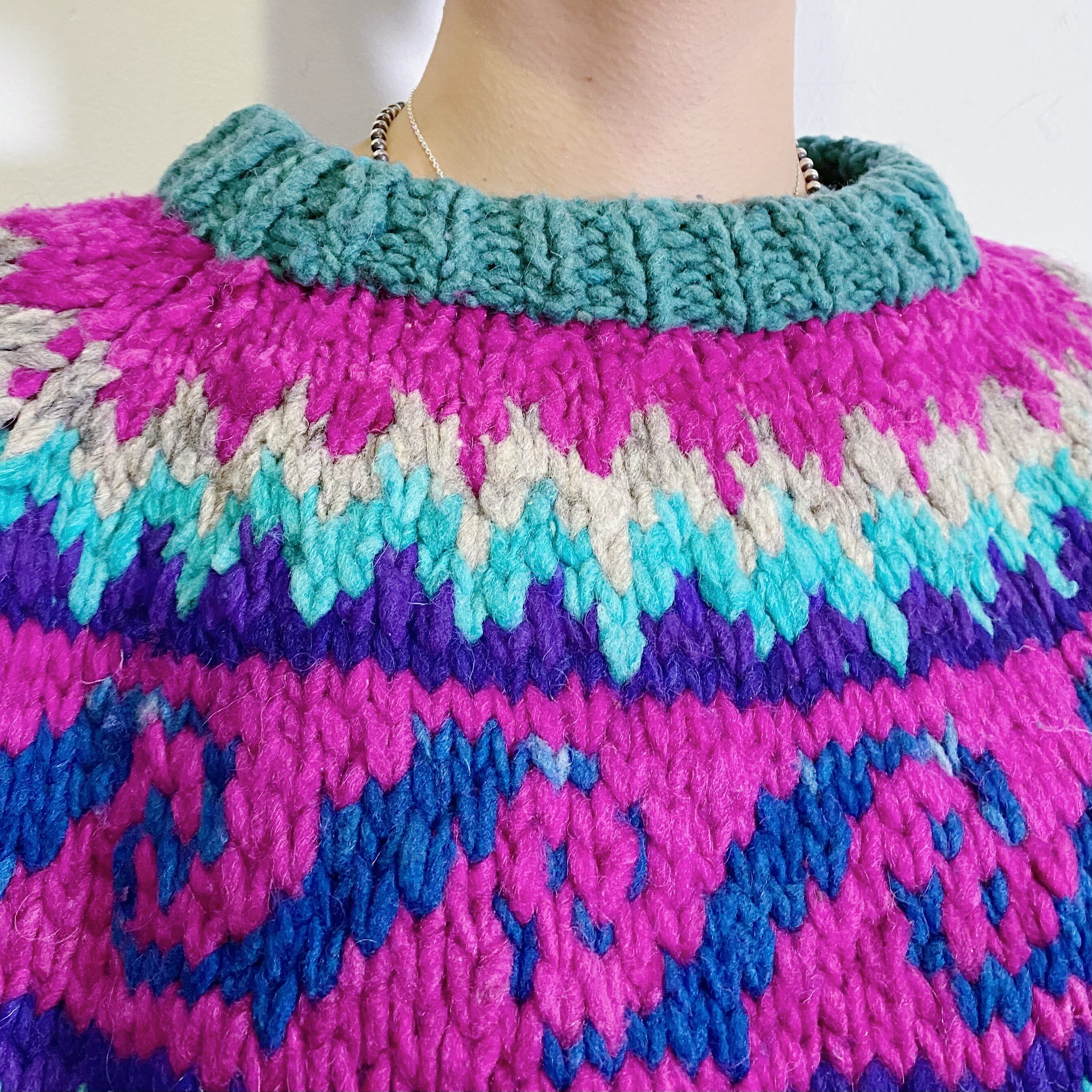 Purple and green knit sweater