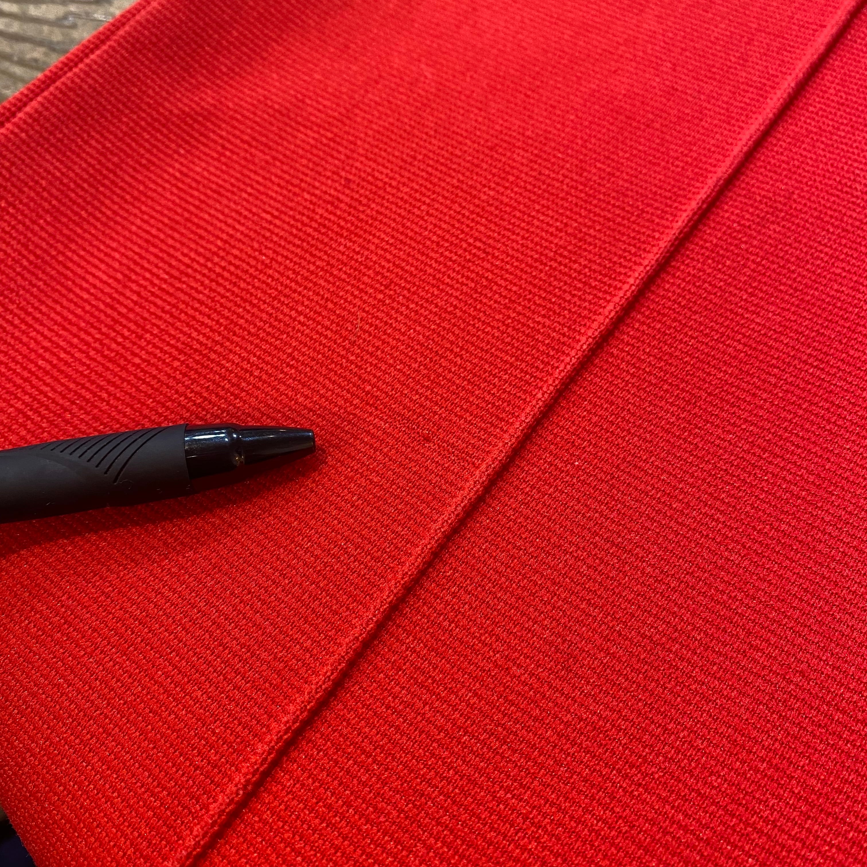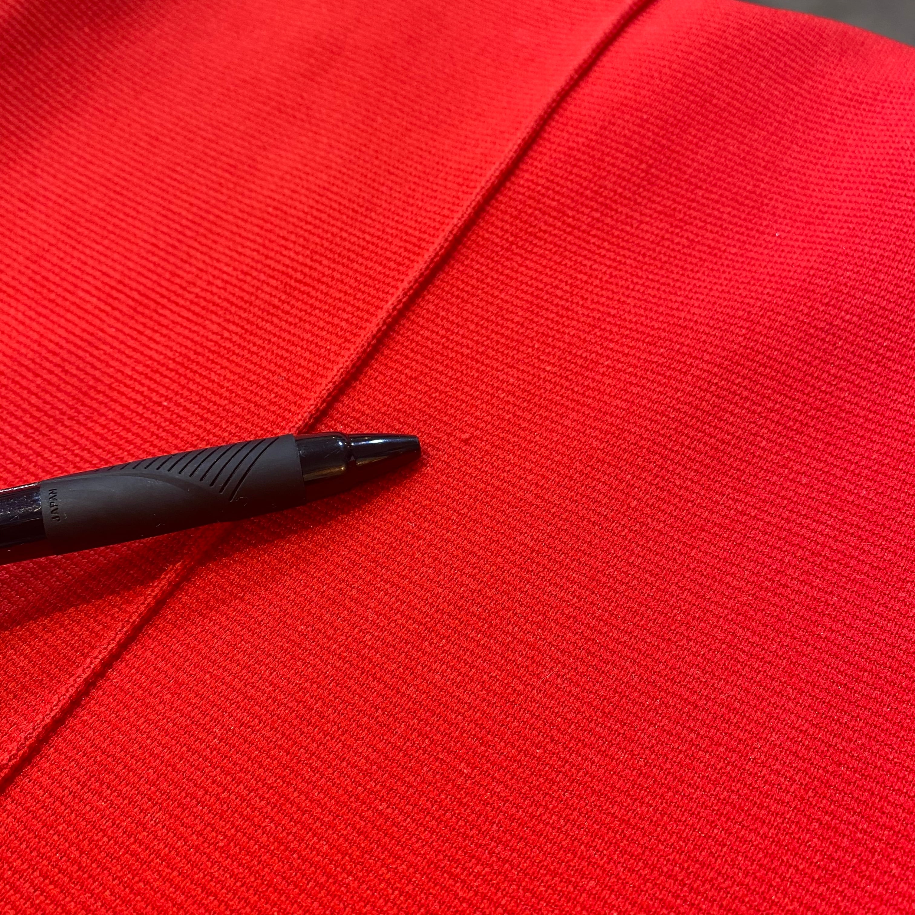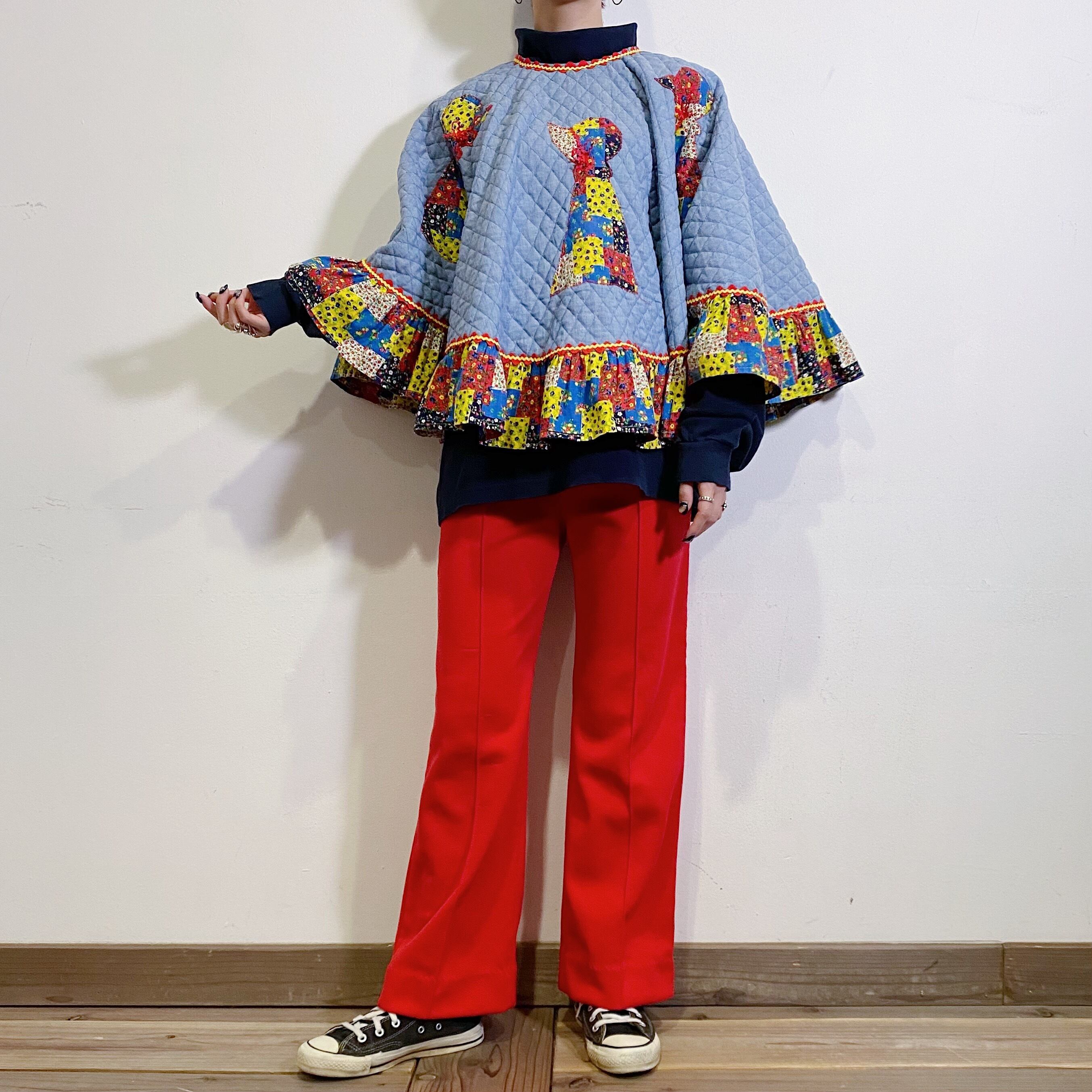 色鮮やかなレッドカラーが目を惹く、70年代のフレアパンツです。