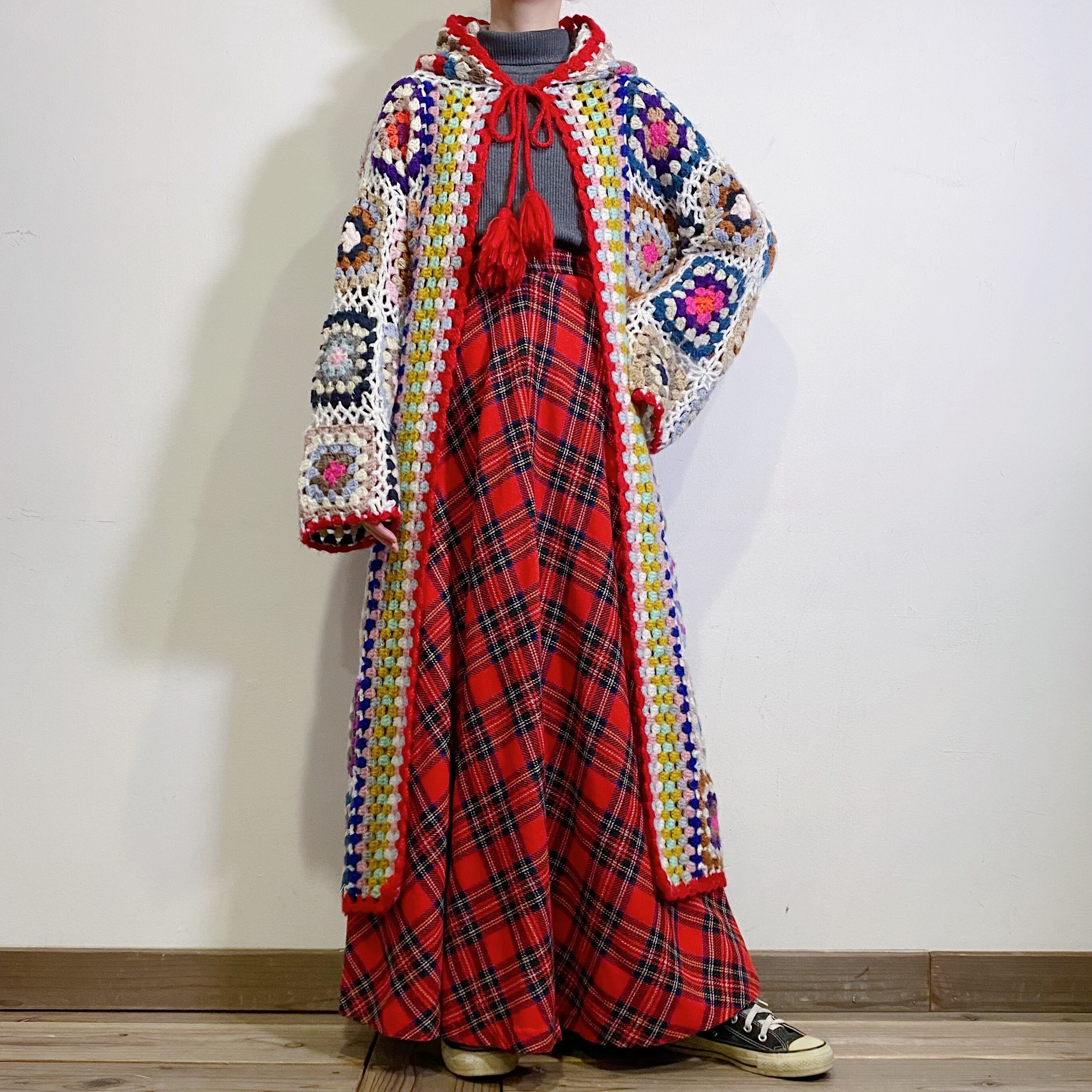 赤のタータンチェックが可愛い、70年代のロングスカートです。
