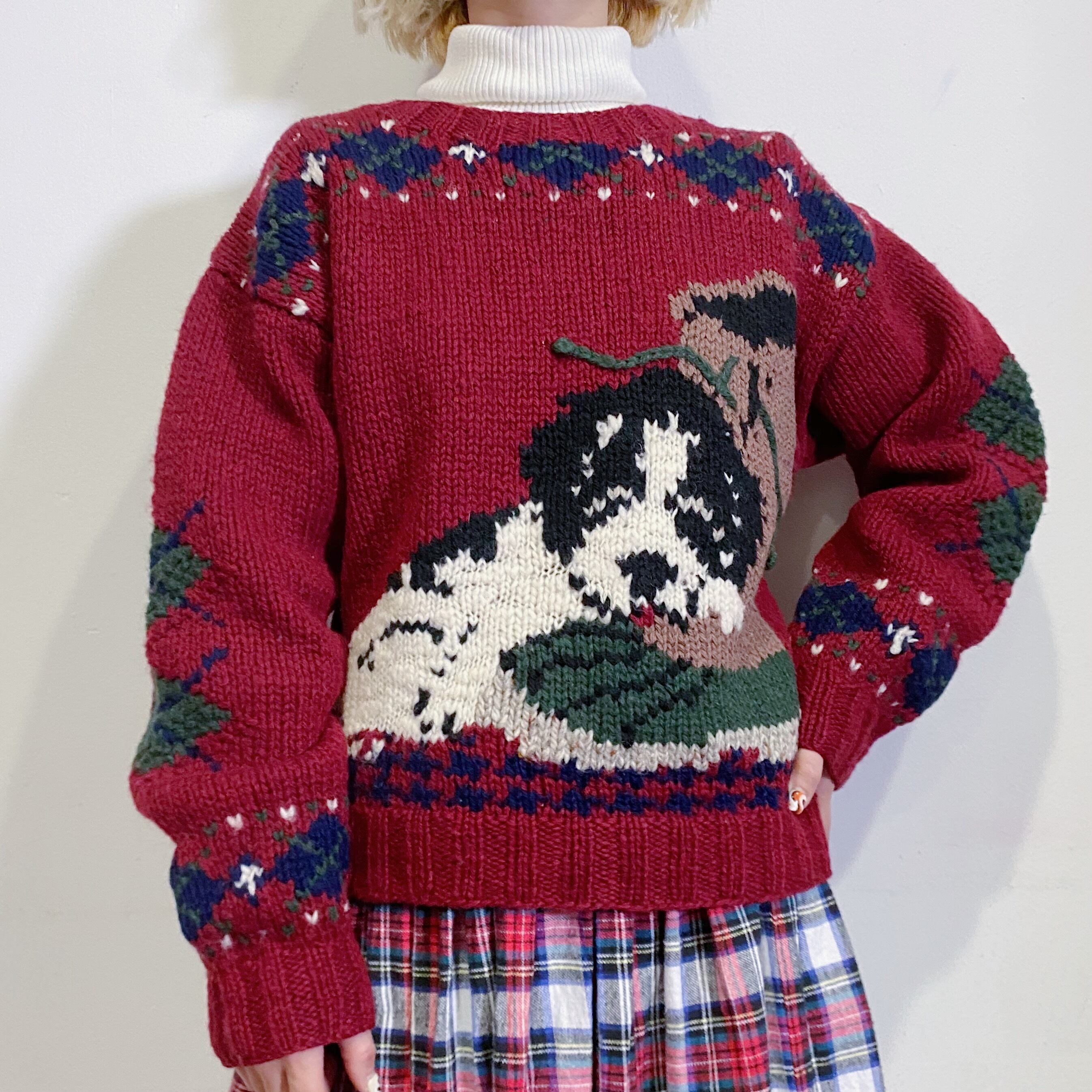 愛くるしい犬とブーツが両面に編まれた、ウールリッチのセーターです。