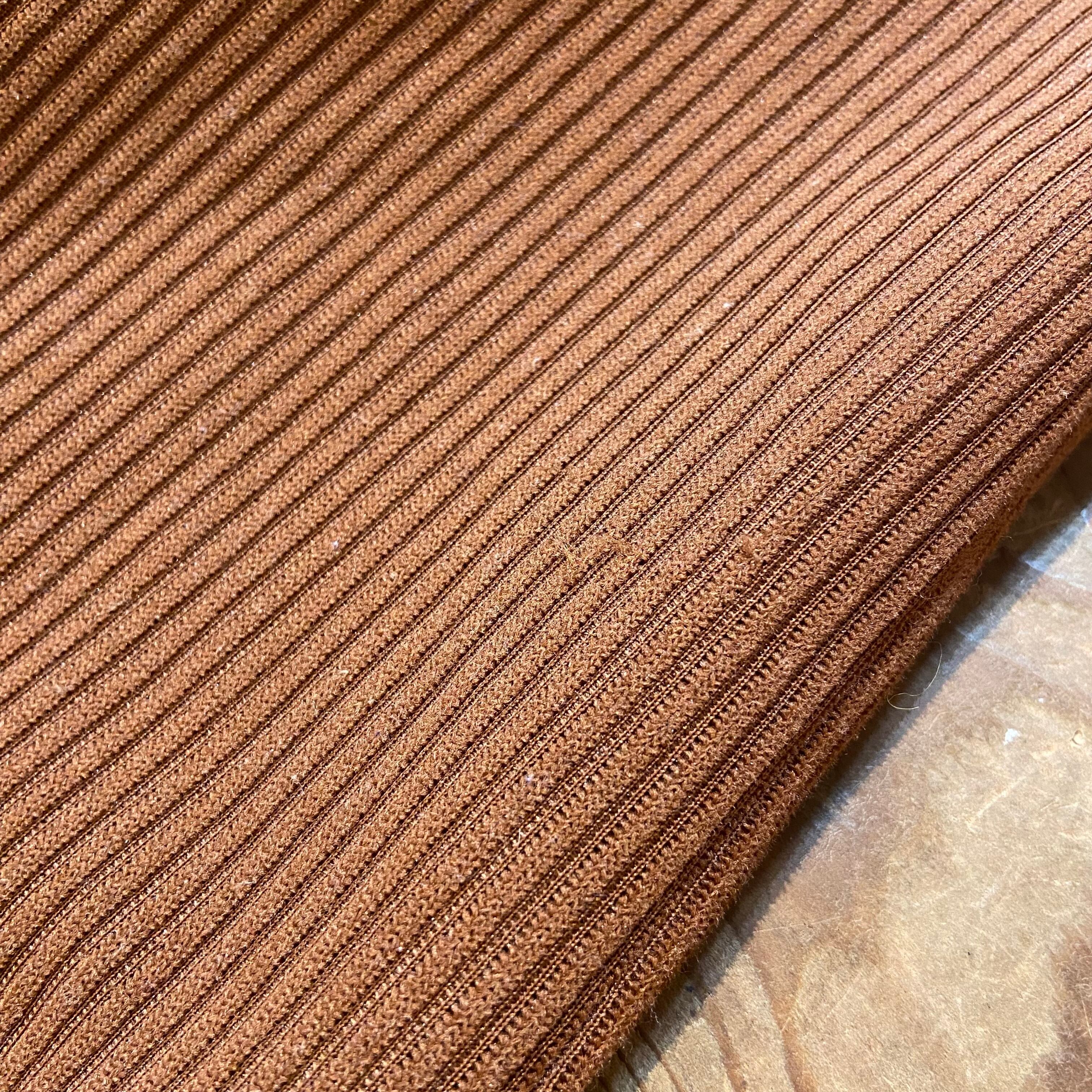 細かいリブ編み素材にブラウンカラーで使い勝手の良い一枚。