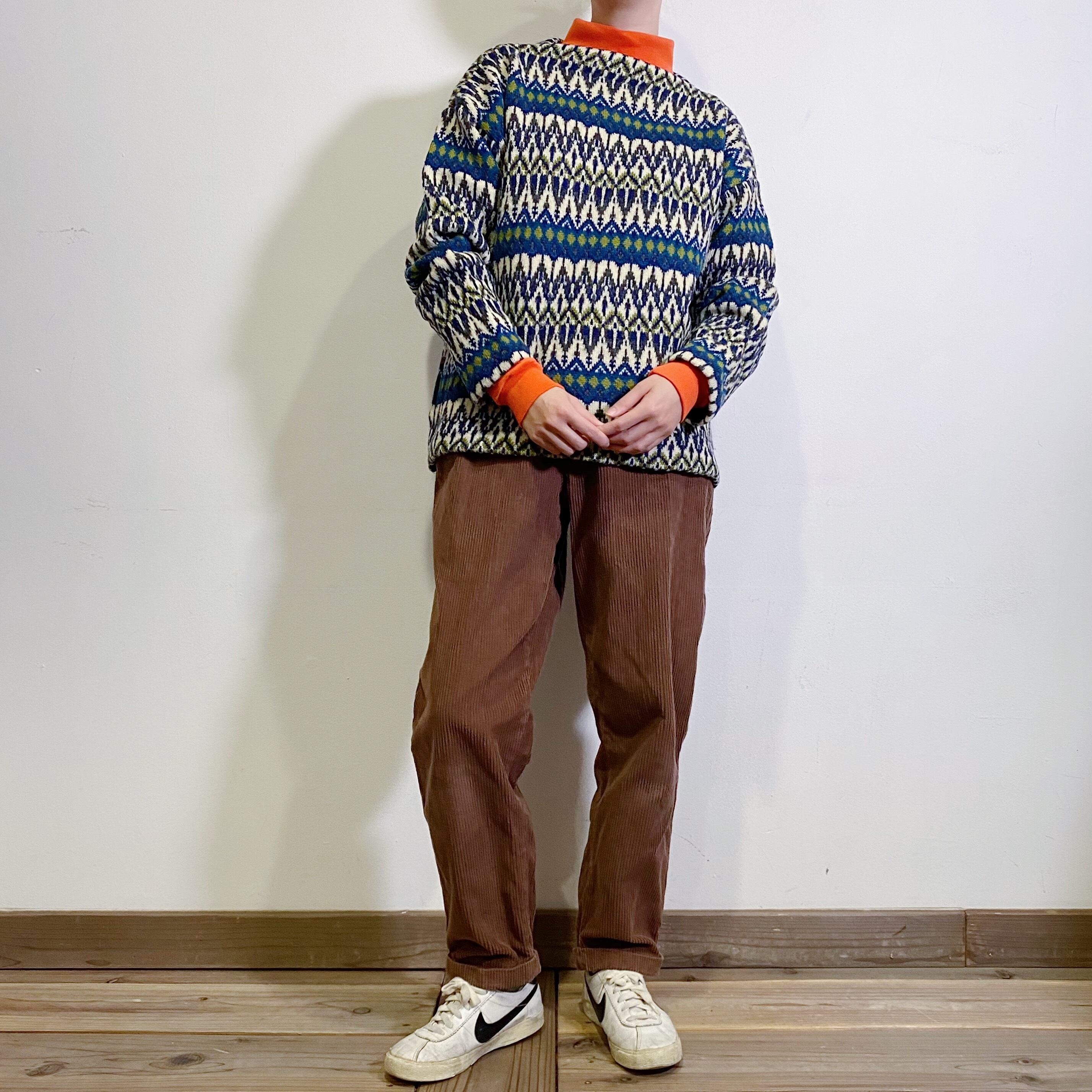 ブルーとグリーンの総ノルディック柄が可愛い、70年代のニットセーターです。