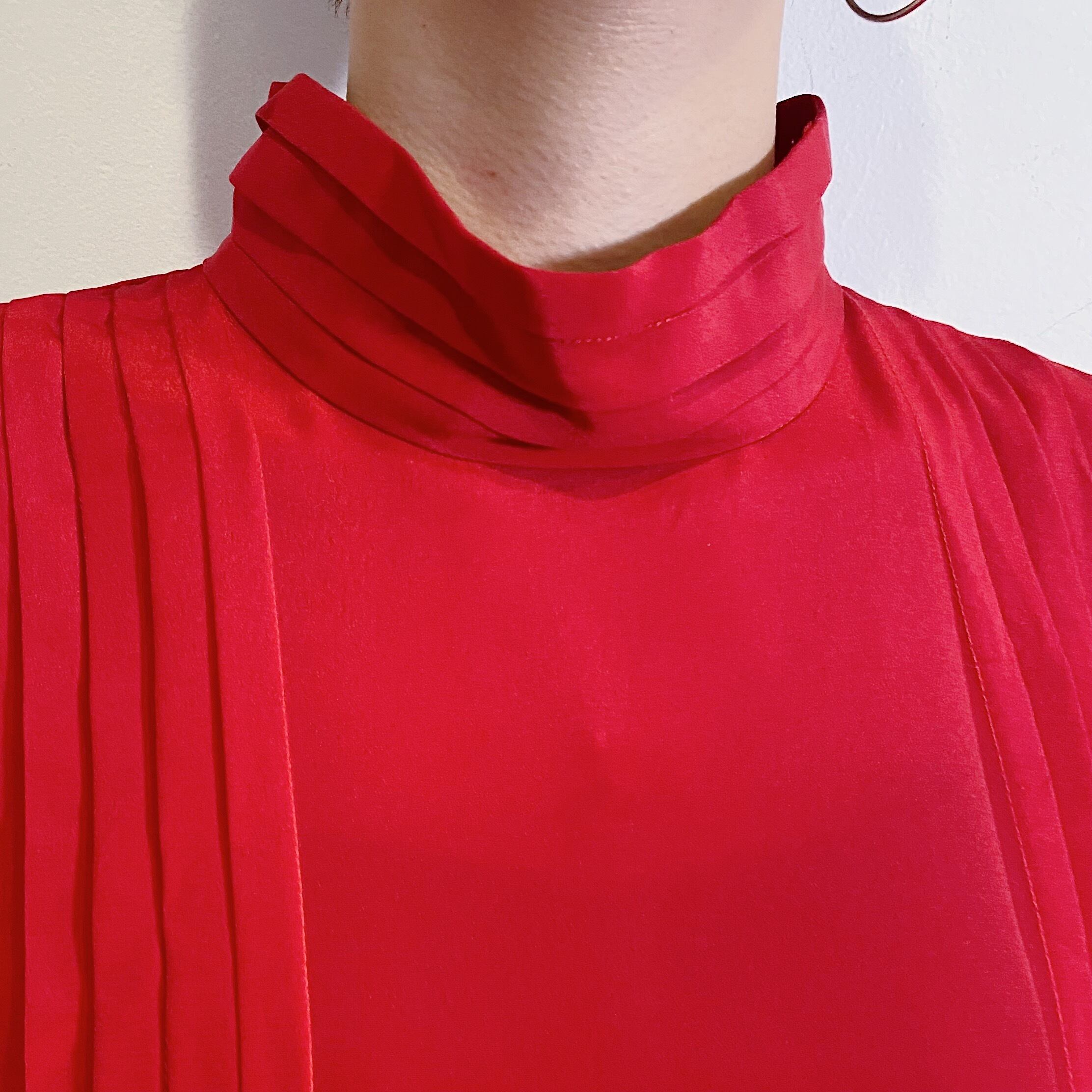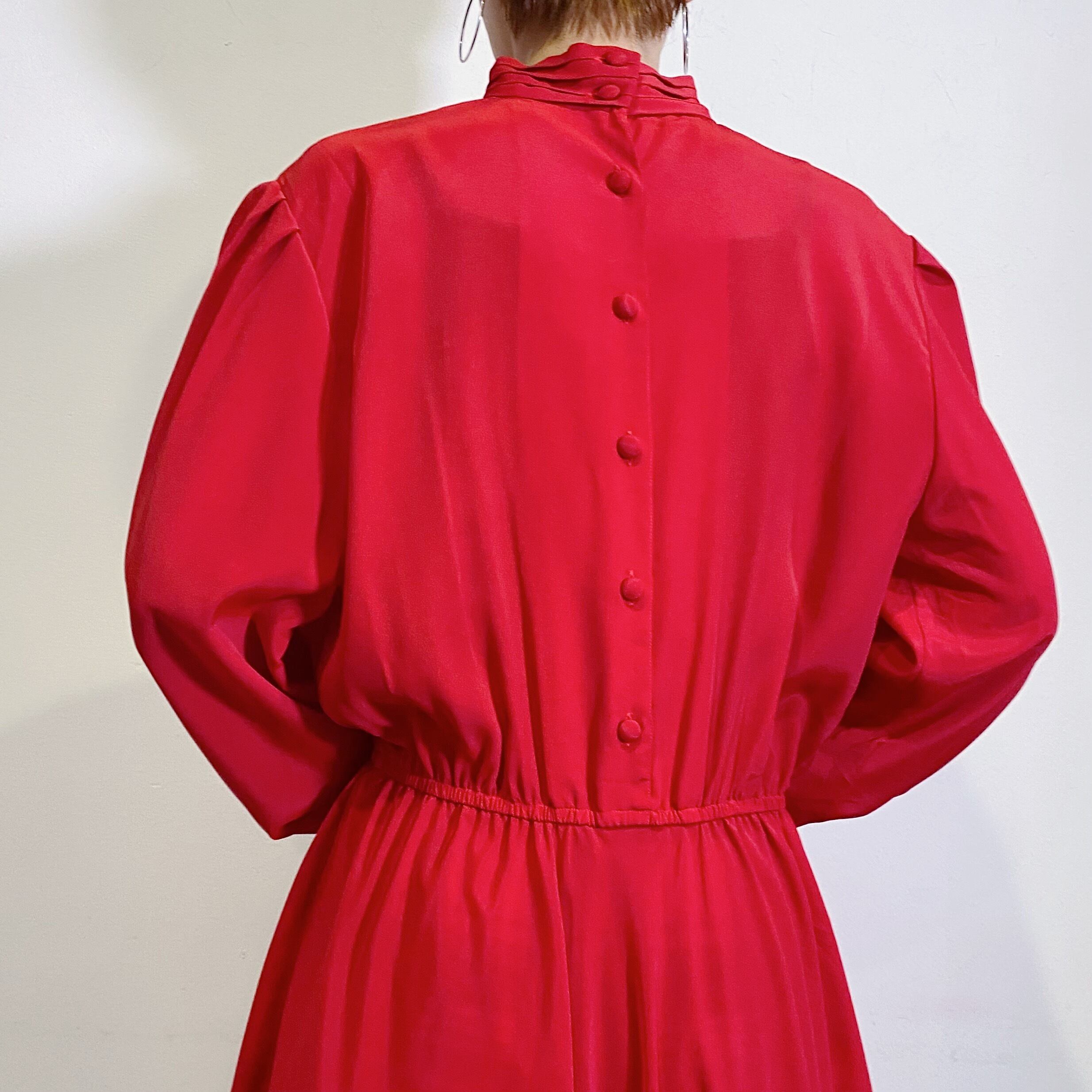鮮やかなレッドカラーが目を惹く、80年代のワンピースです。