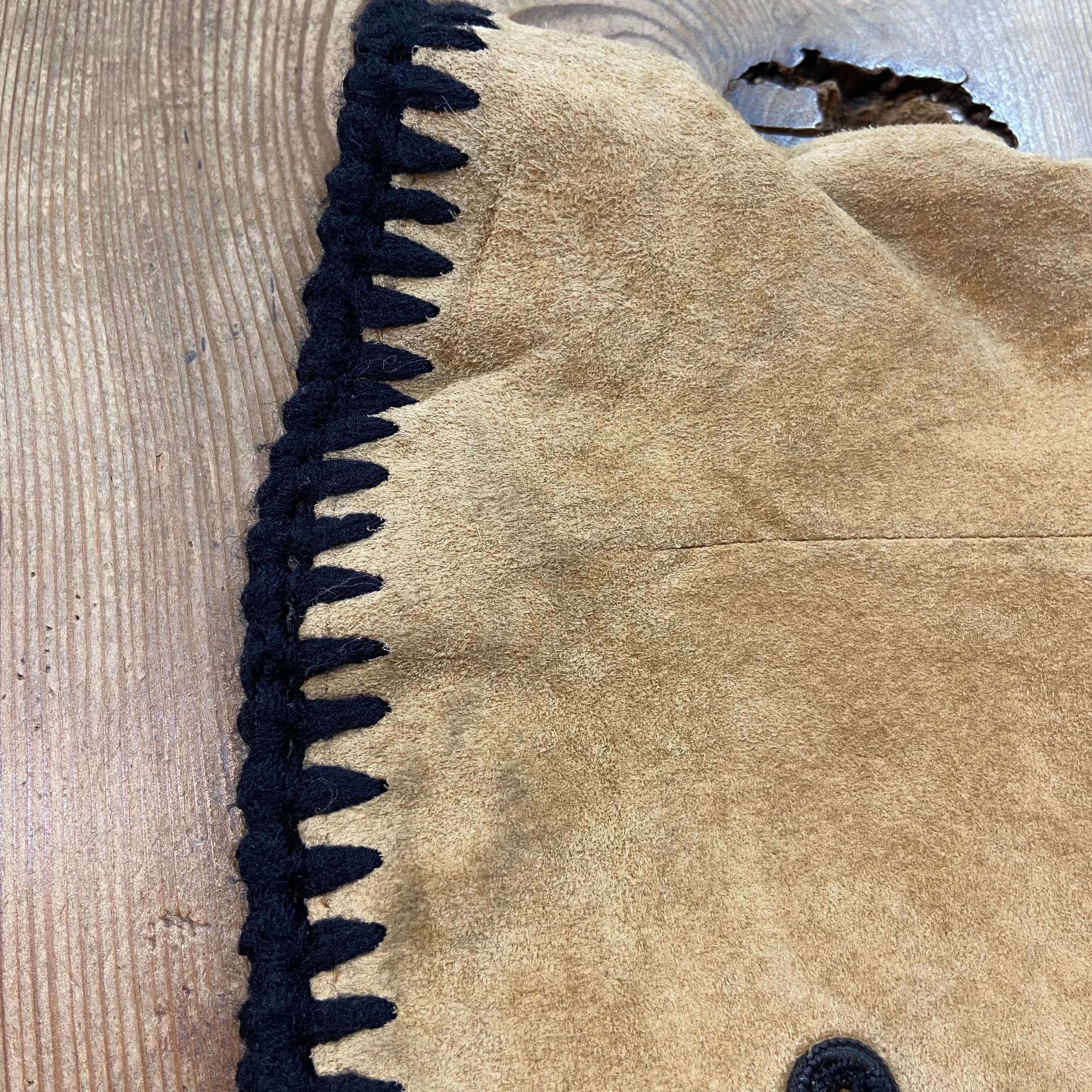 フチはクロシェで編まれており、しっかりと裏地もついた仕立てのいい一枚。