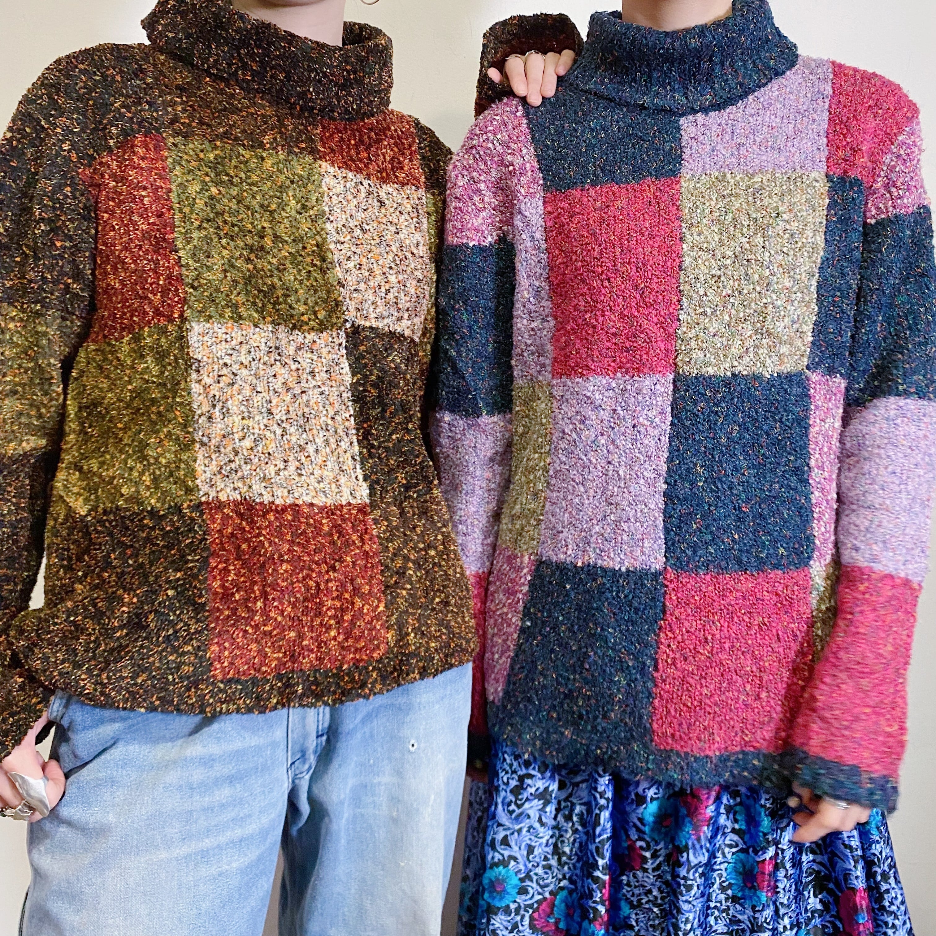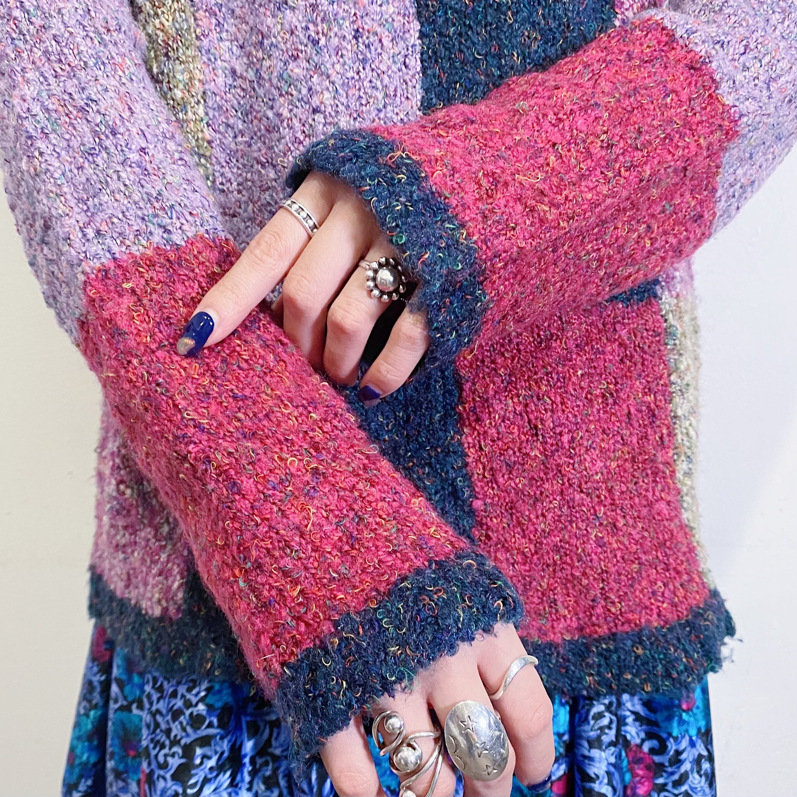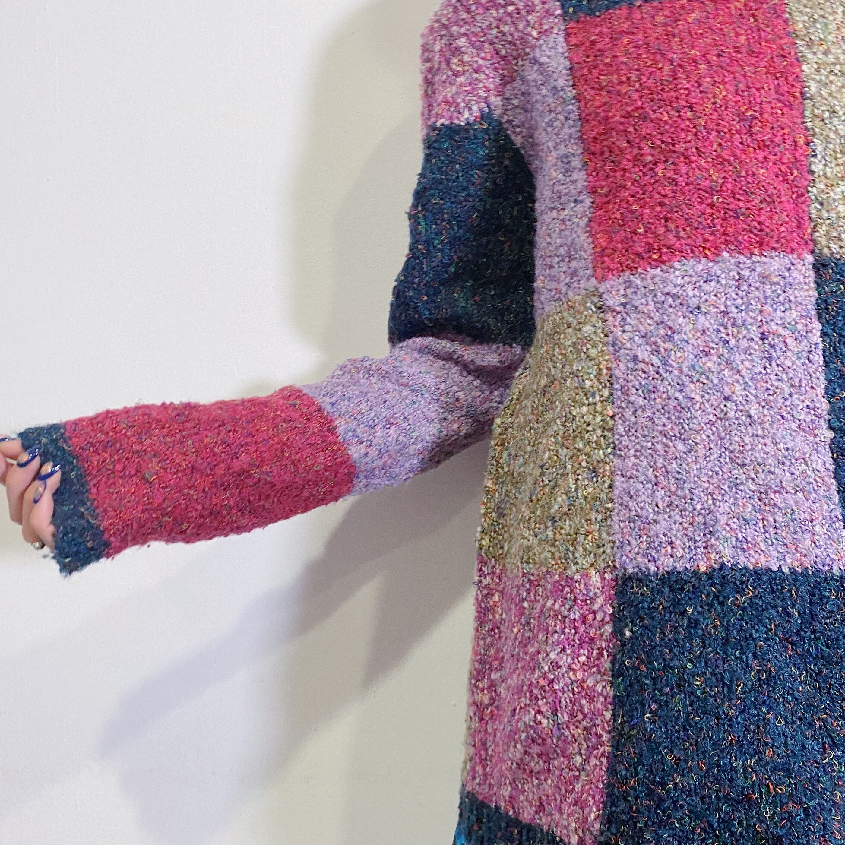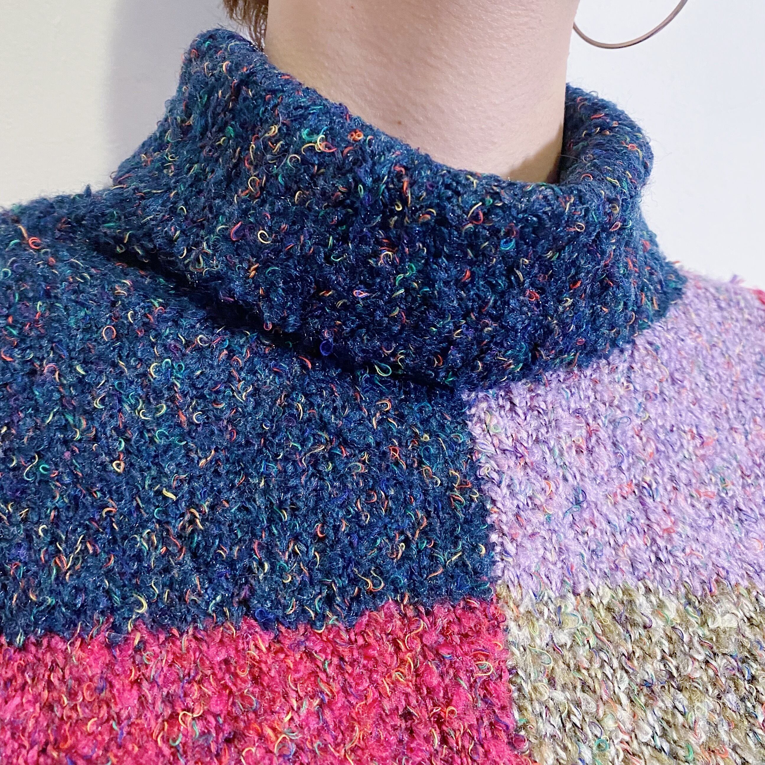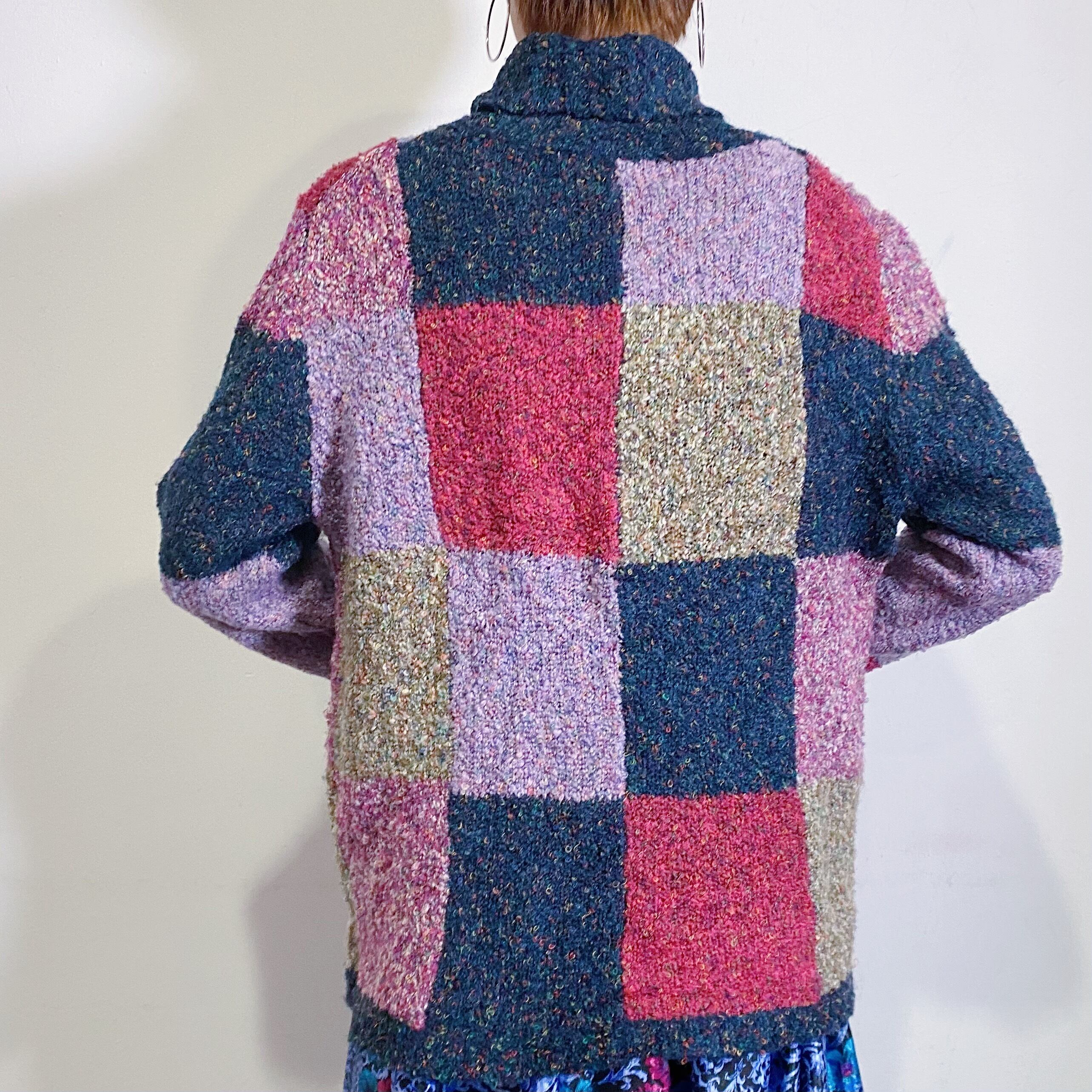 パープル・ネイビーなどの寒色系カラーのパネルデザインが可愛い、80年代のニットセーターです。