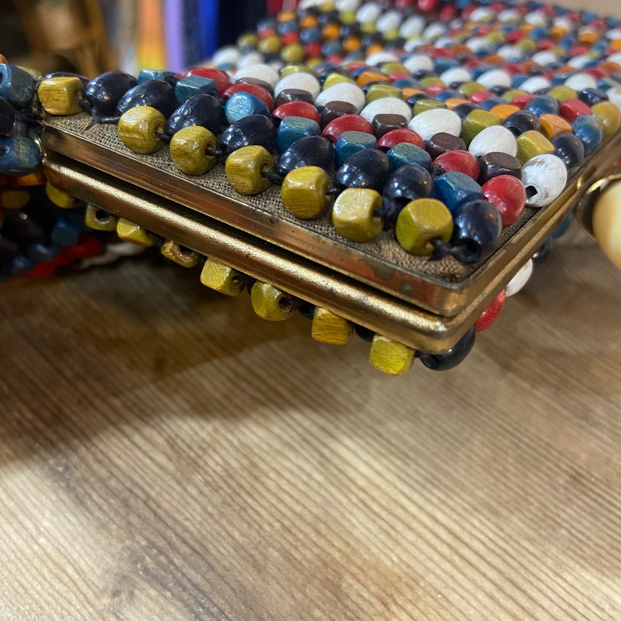 カラフルなウッドビーズが可愛い、50年代のハンドバッグです。