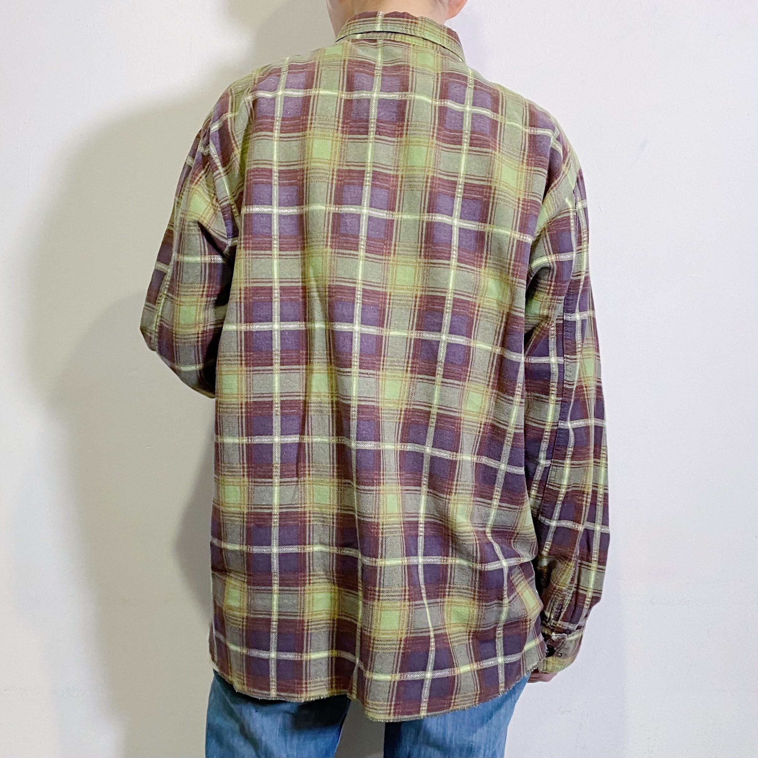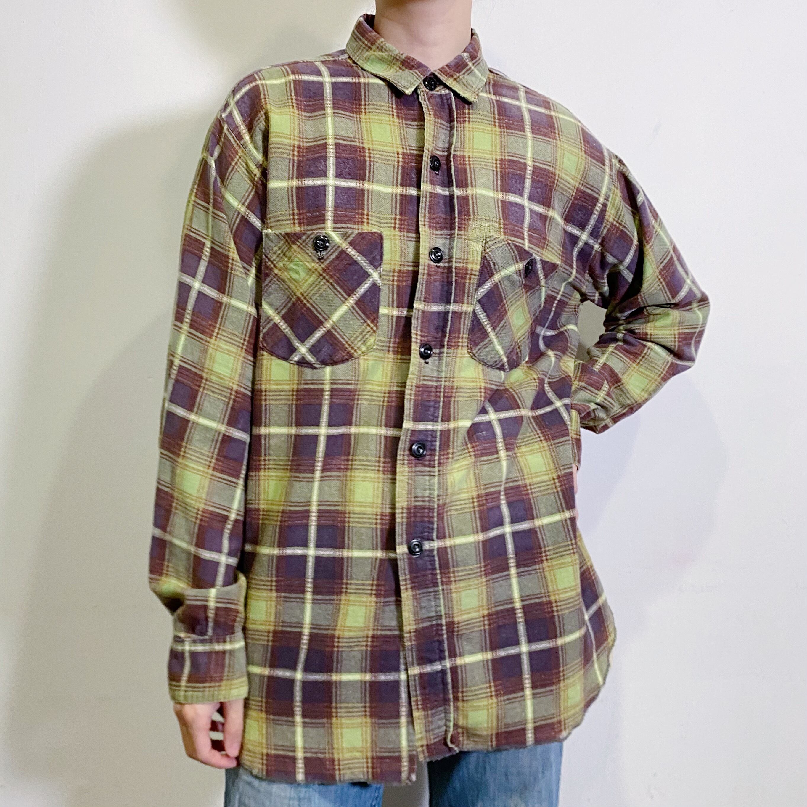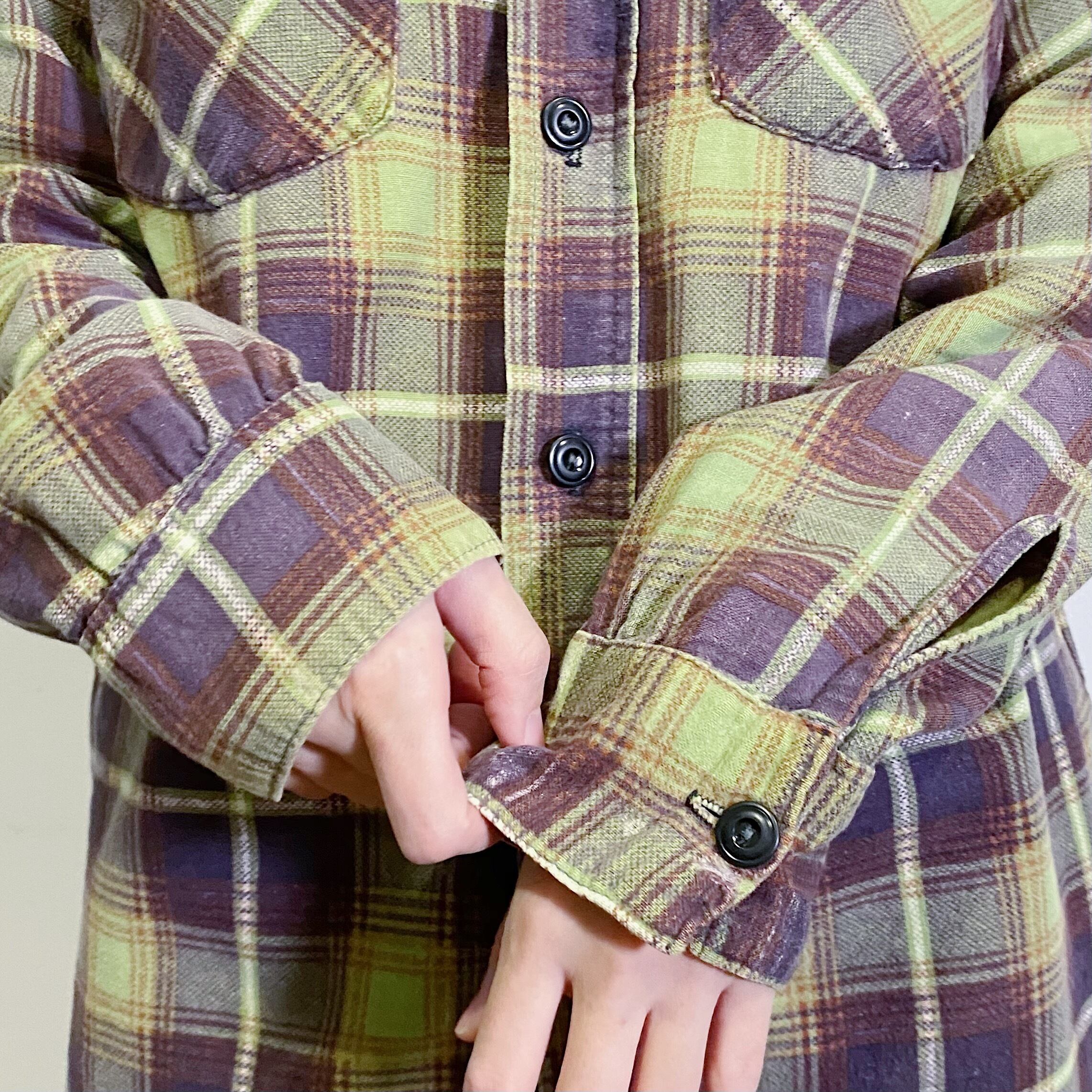 グリーンとパープルの色合いが可愛い、60年代頃のネルシャツです。
