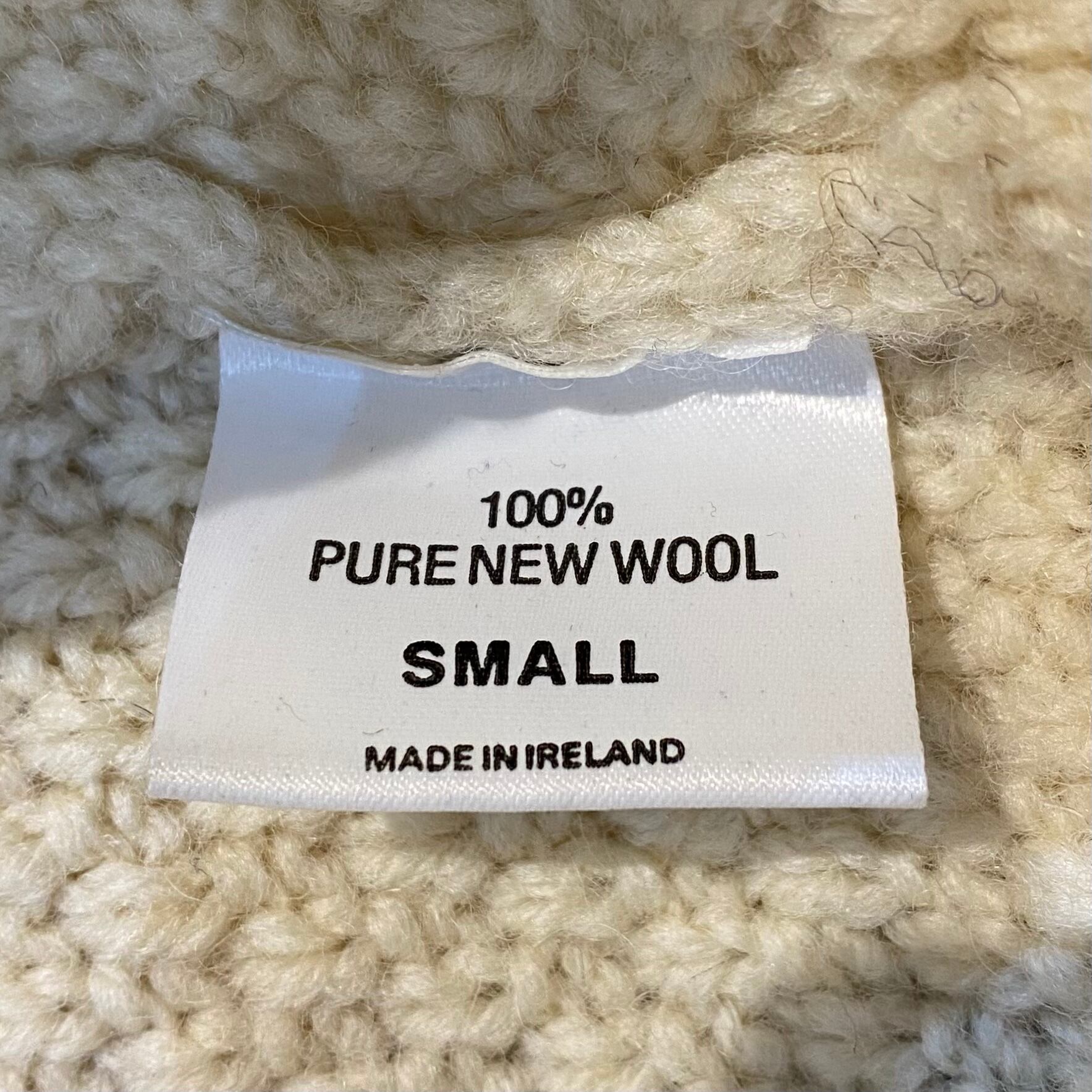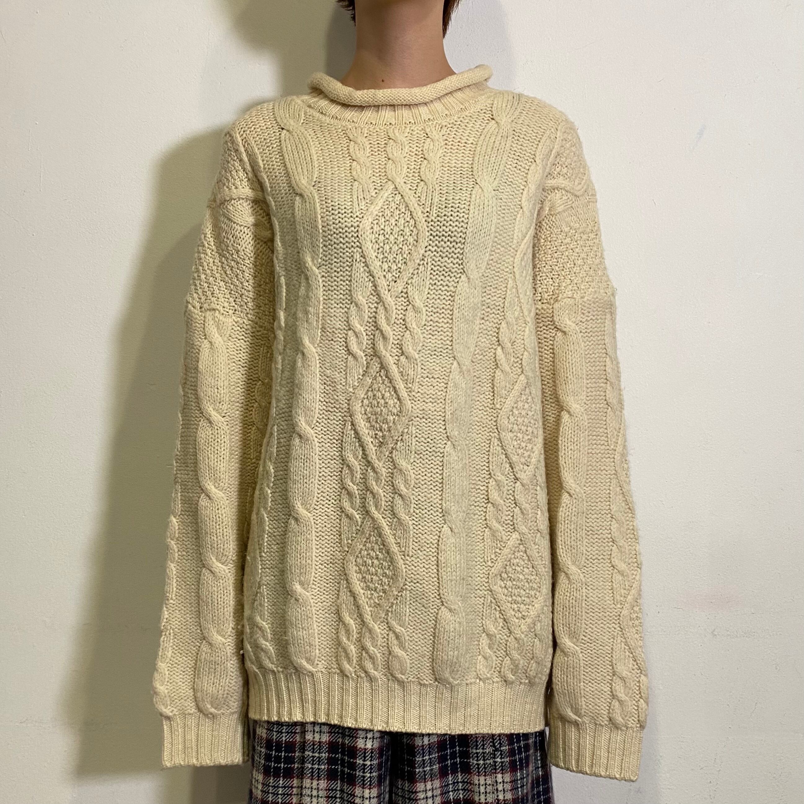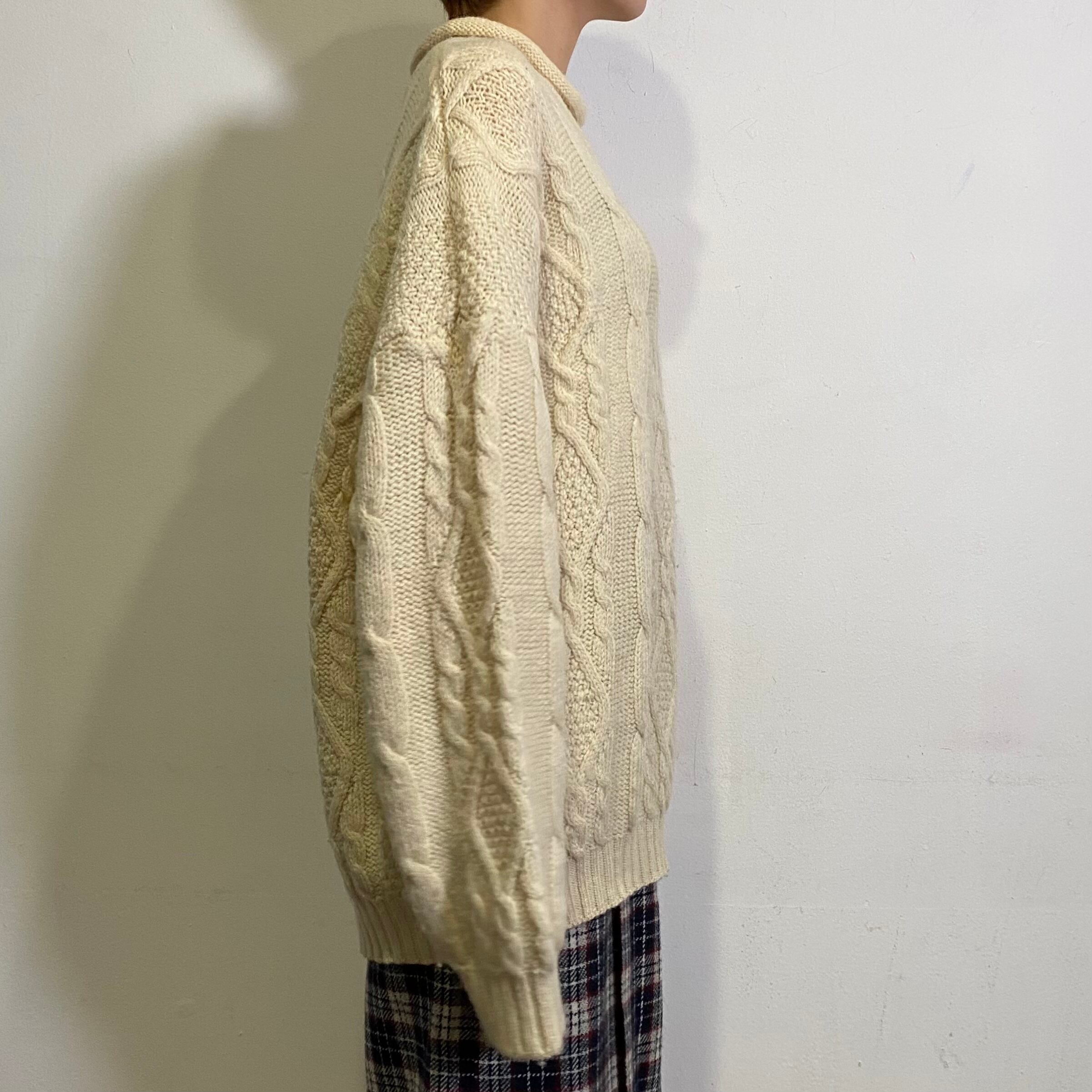 首元のくるんとしたデザインが可愛い、アイルランド製のフィッシャーマンニットセーターです。