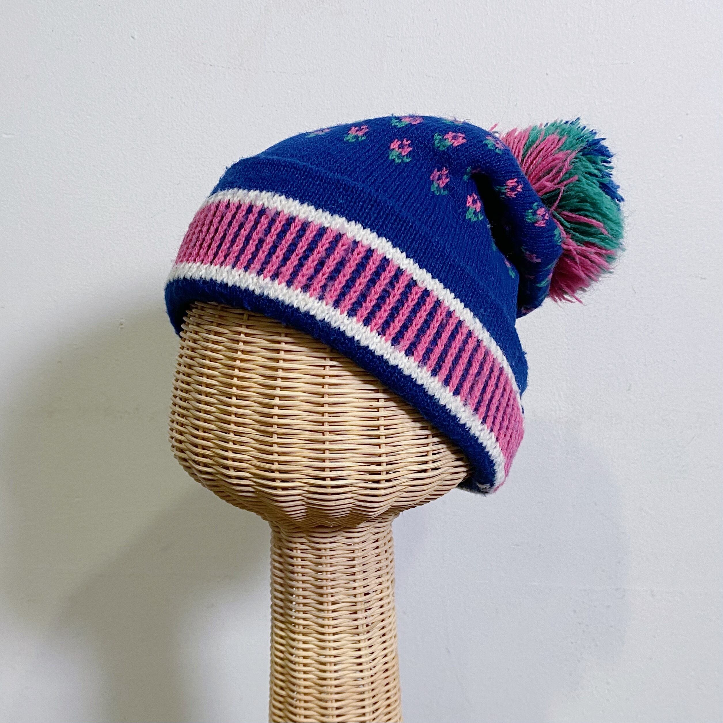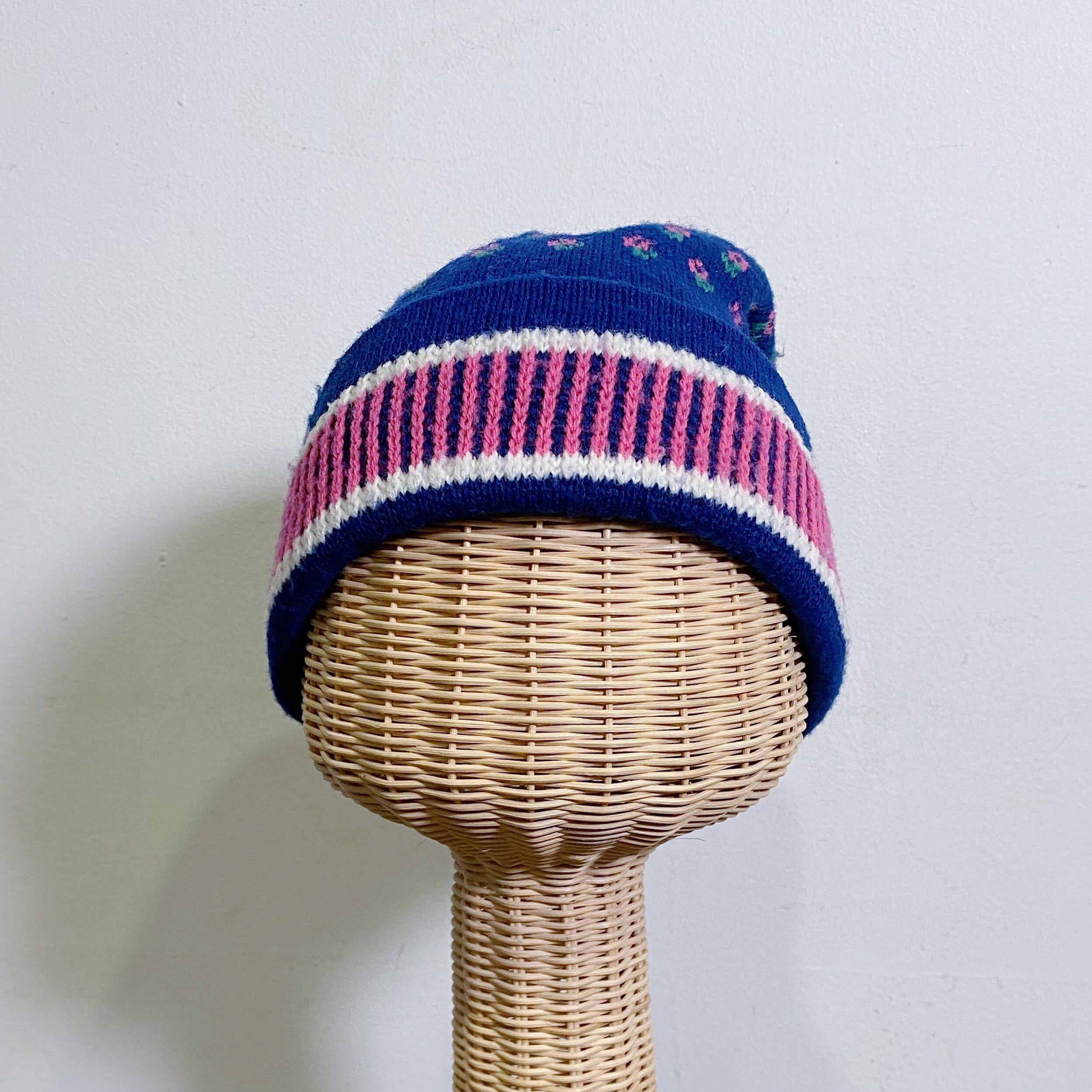 ネイビーとピンクの色合わせが可愛い、ニットキャップです。