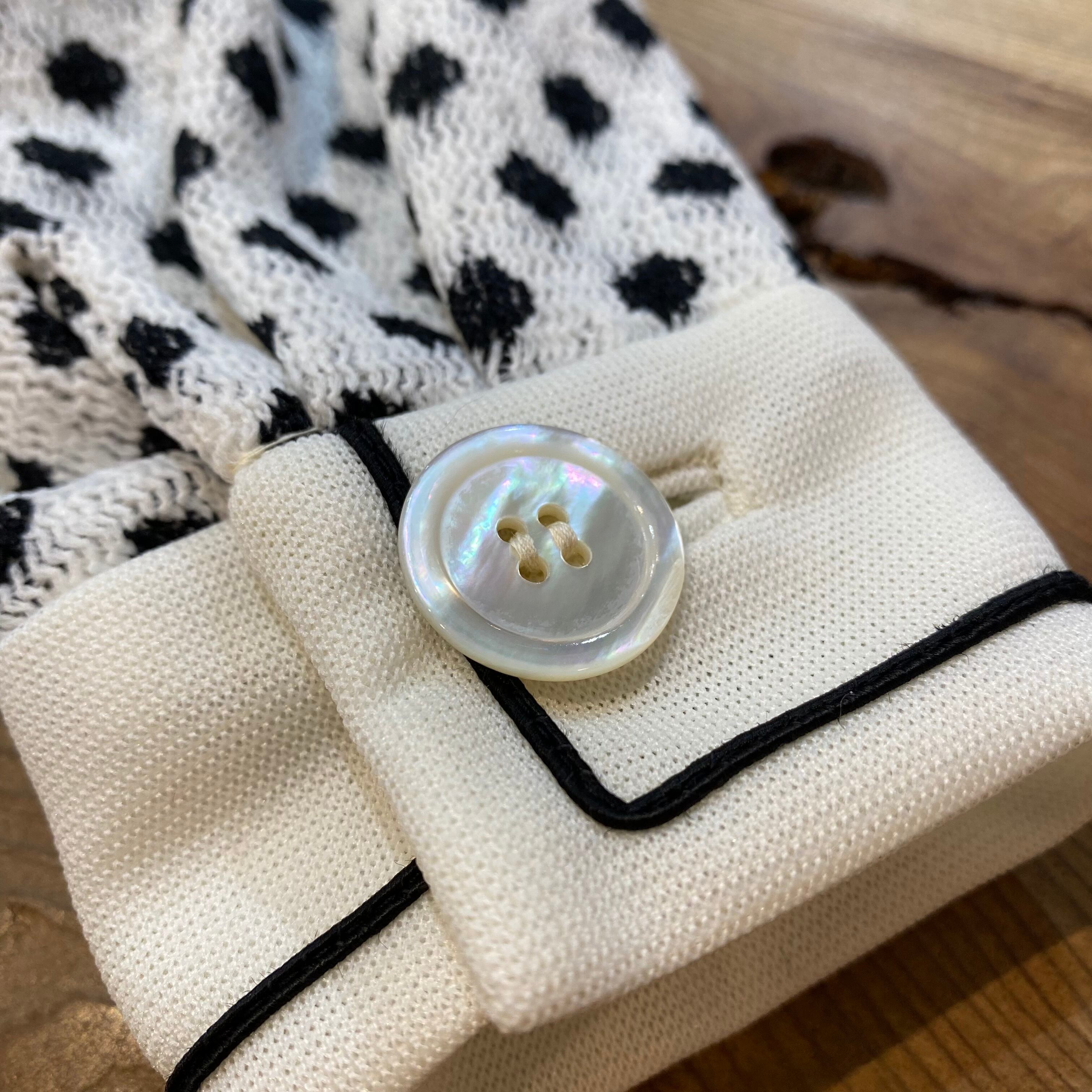 大きな襟がアクセントになっており、モノトーンカラーで着こなしやすい一枚。