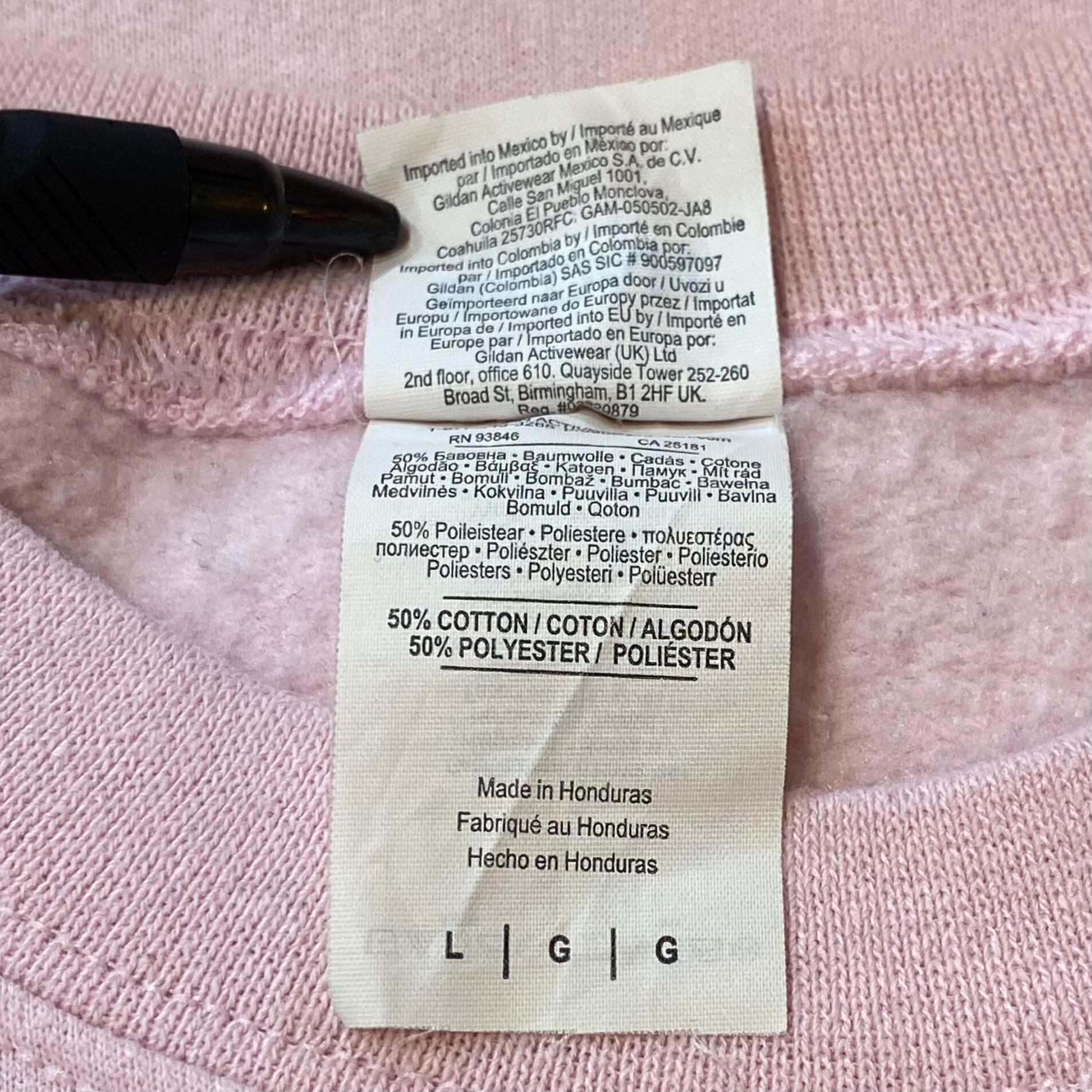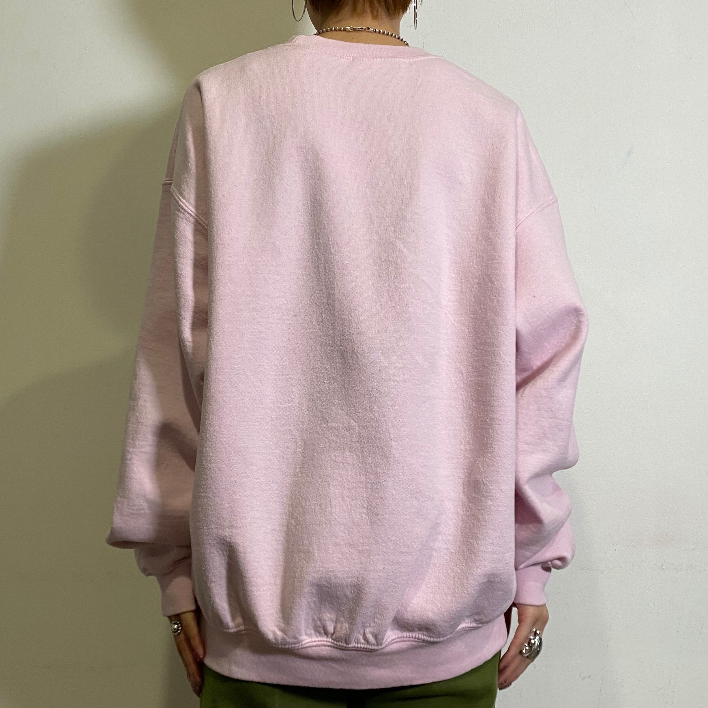 ベイビーピンクの色合いに白い英字プリントが可愛いスウェットです。
