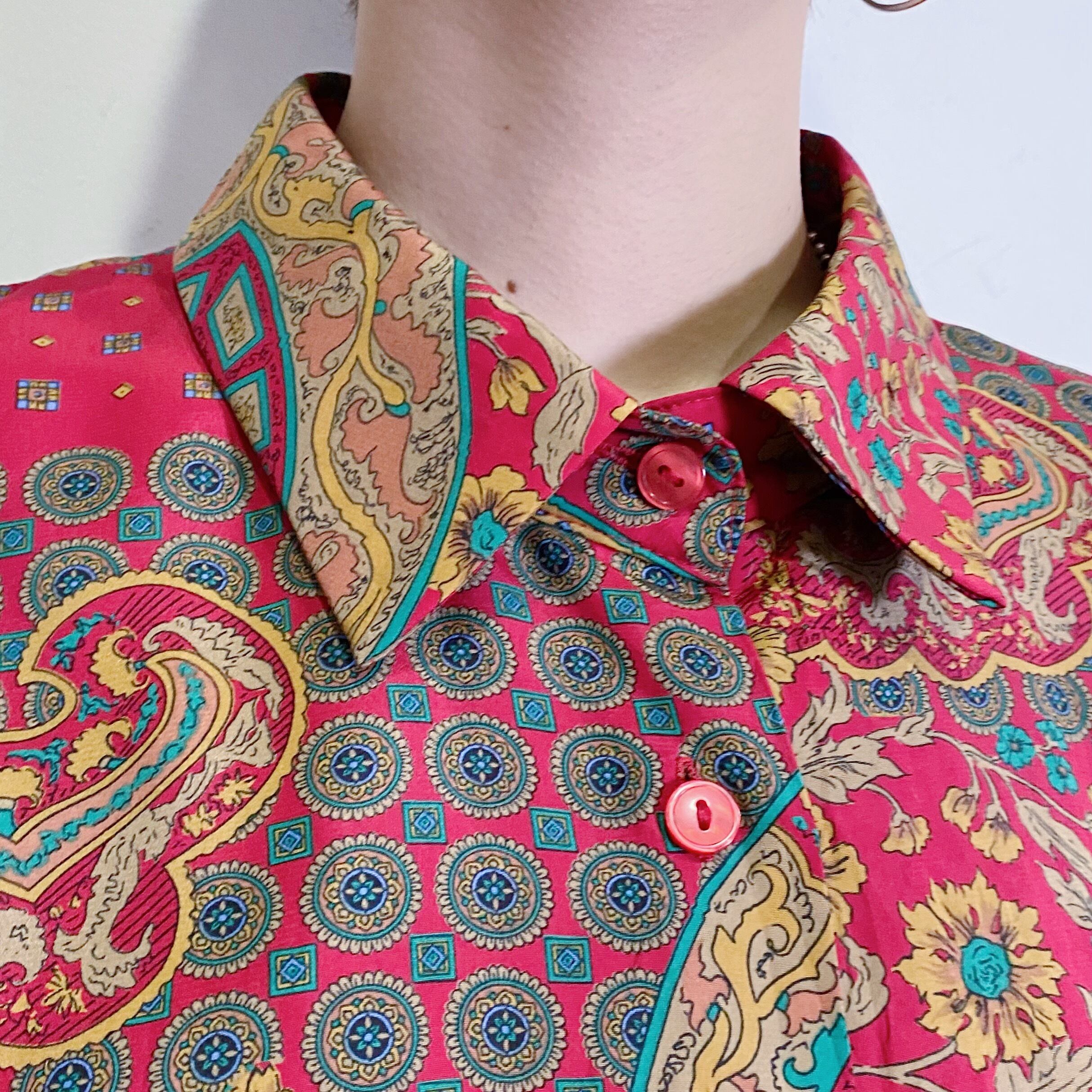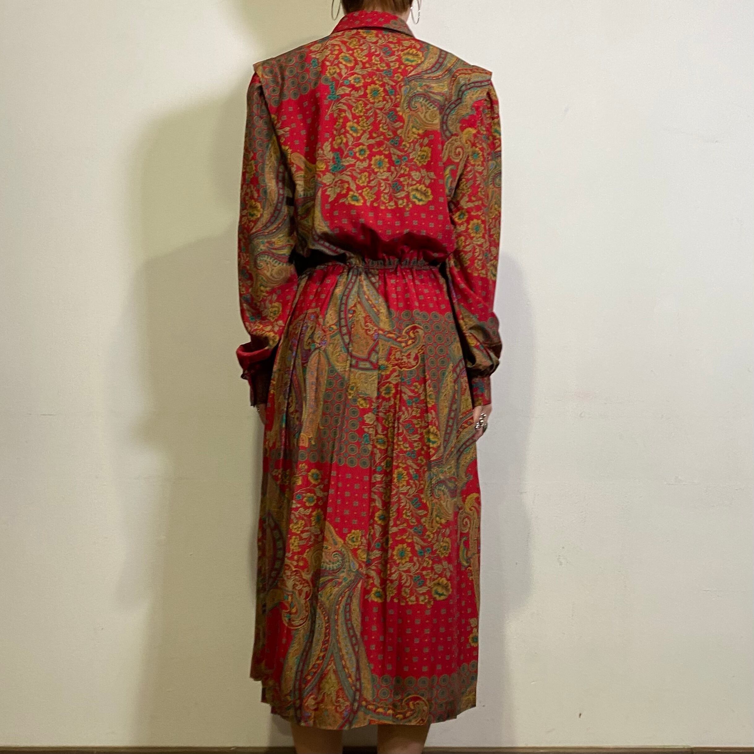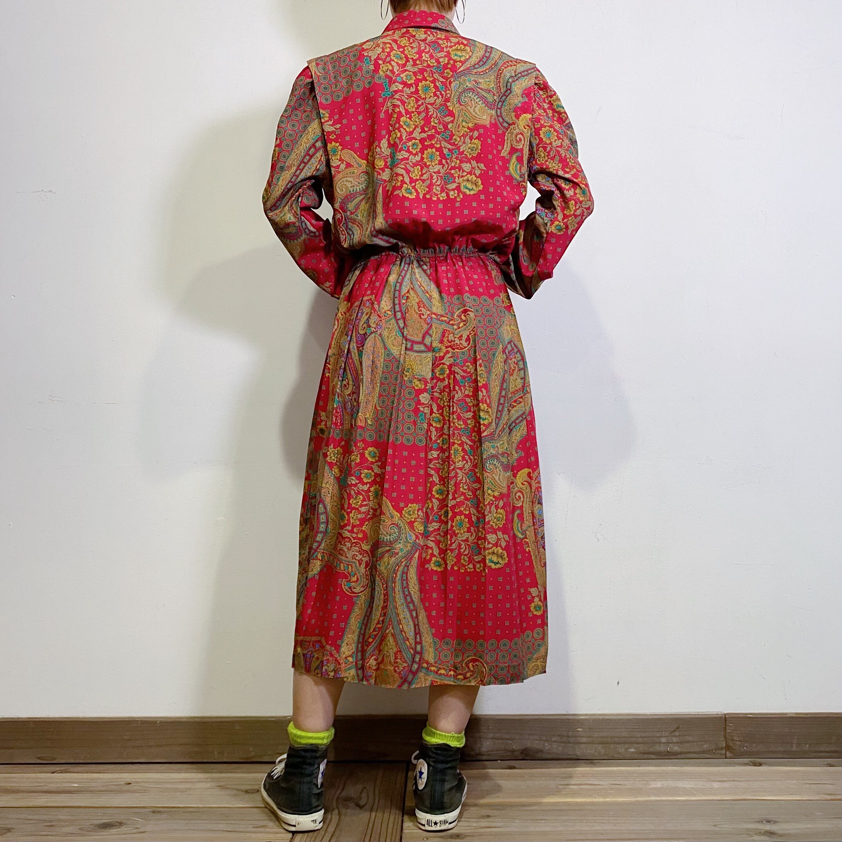 お花とペイズリー柄の組み合わせが可愛い、80年代のシャツワンピースです。