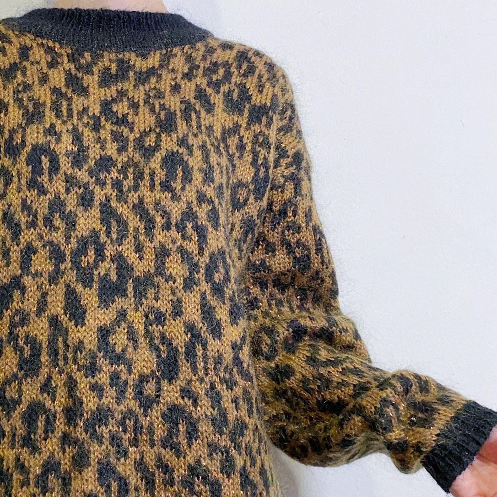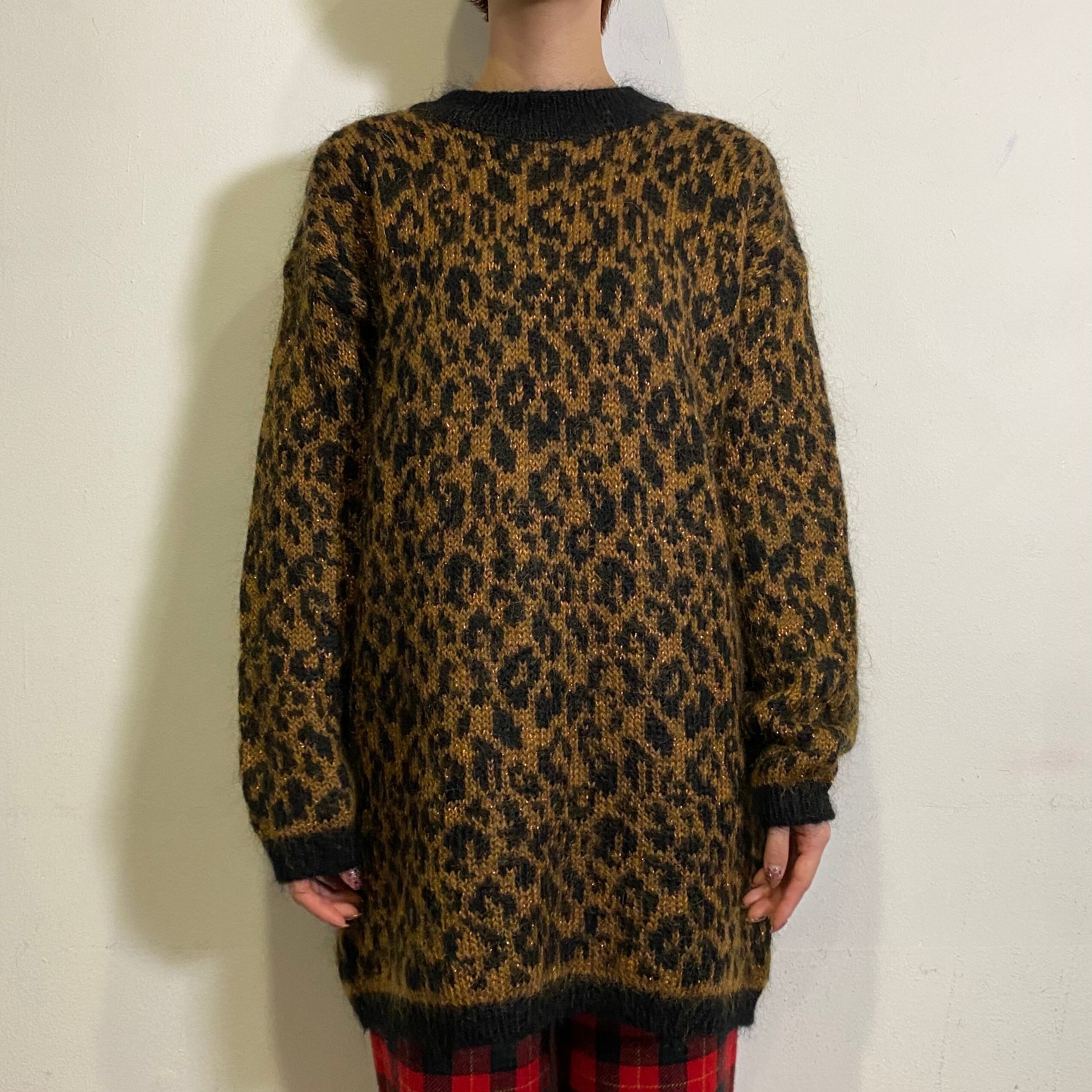 モヘア特有のふわふわとした質感と軽やかさが魅力の、80年代のレオパード柄セーターです。