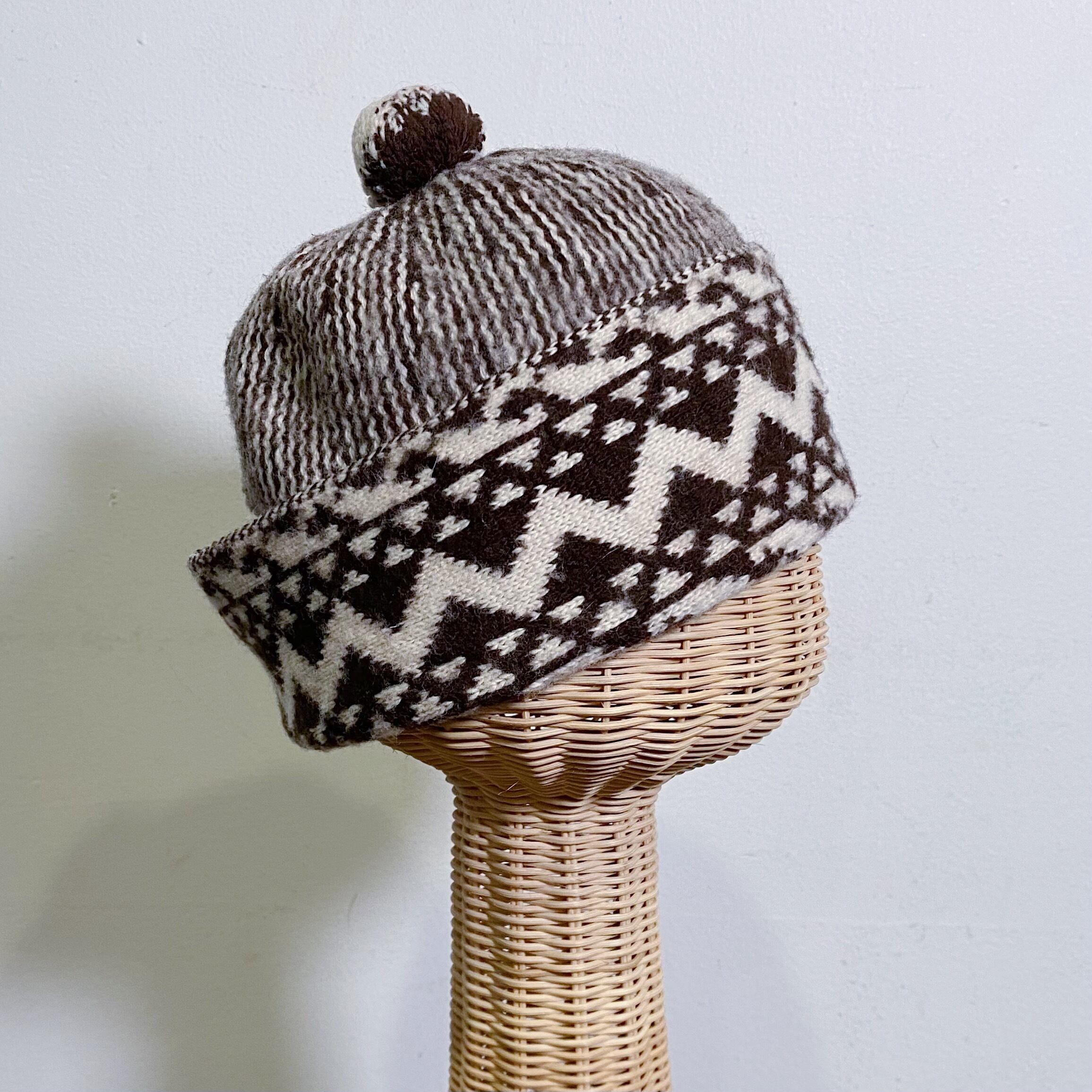 ブラウンとホワイトの暖かな色合いでジグザグ編みシュールでキュート。
