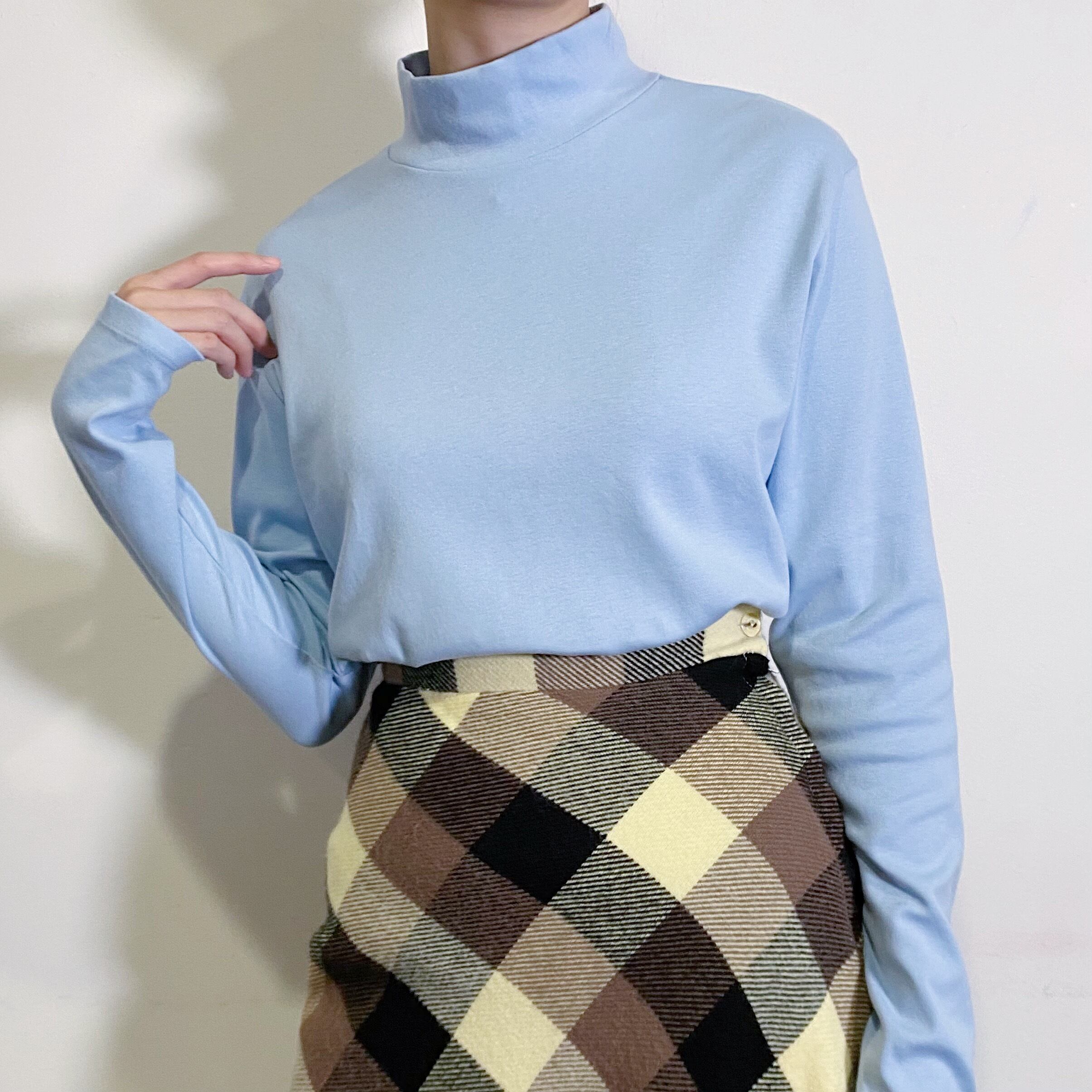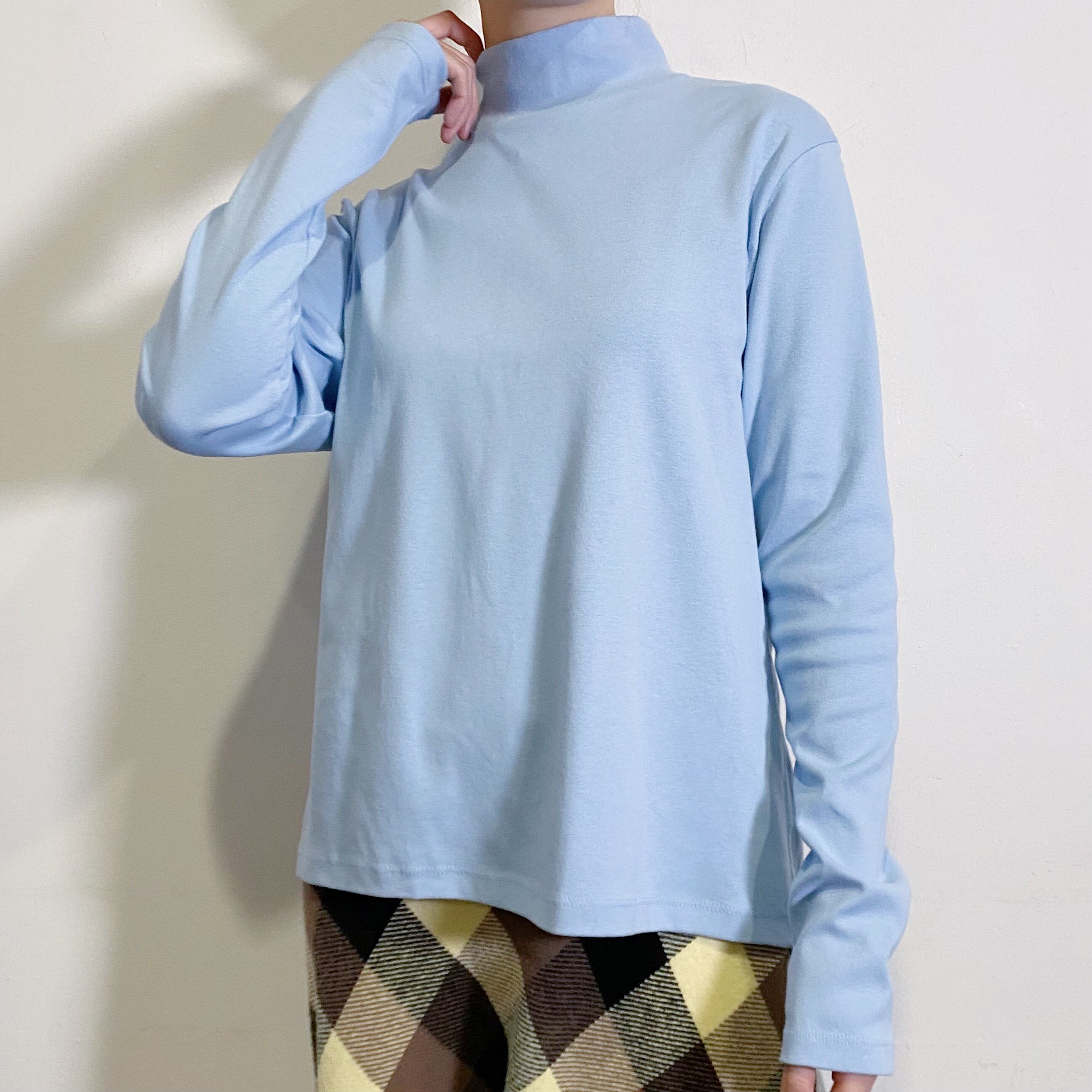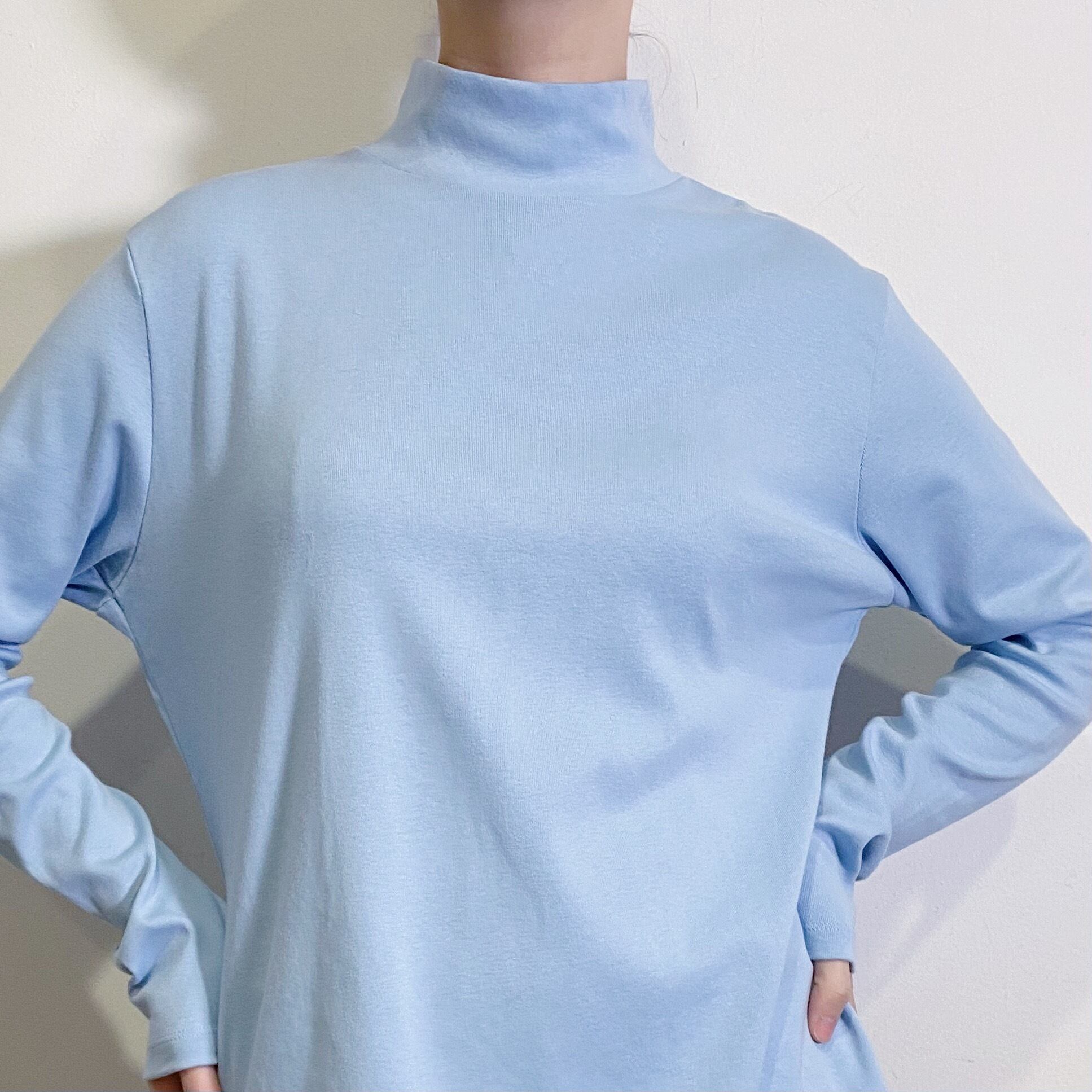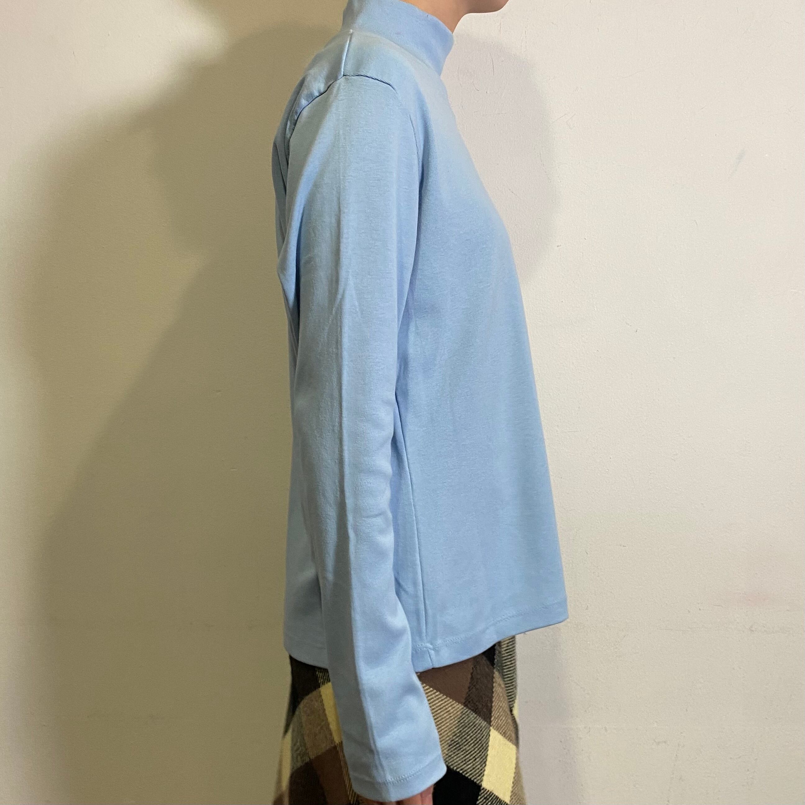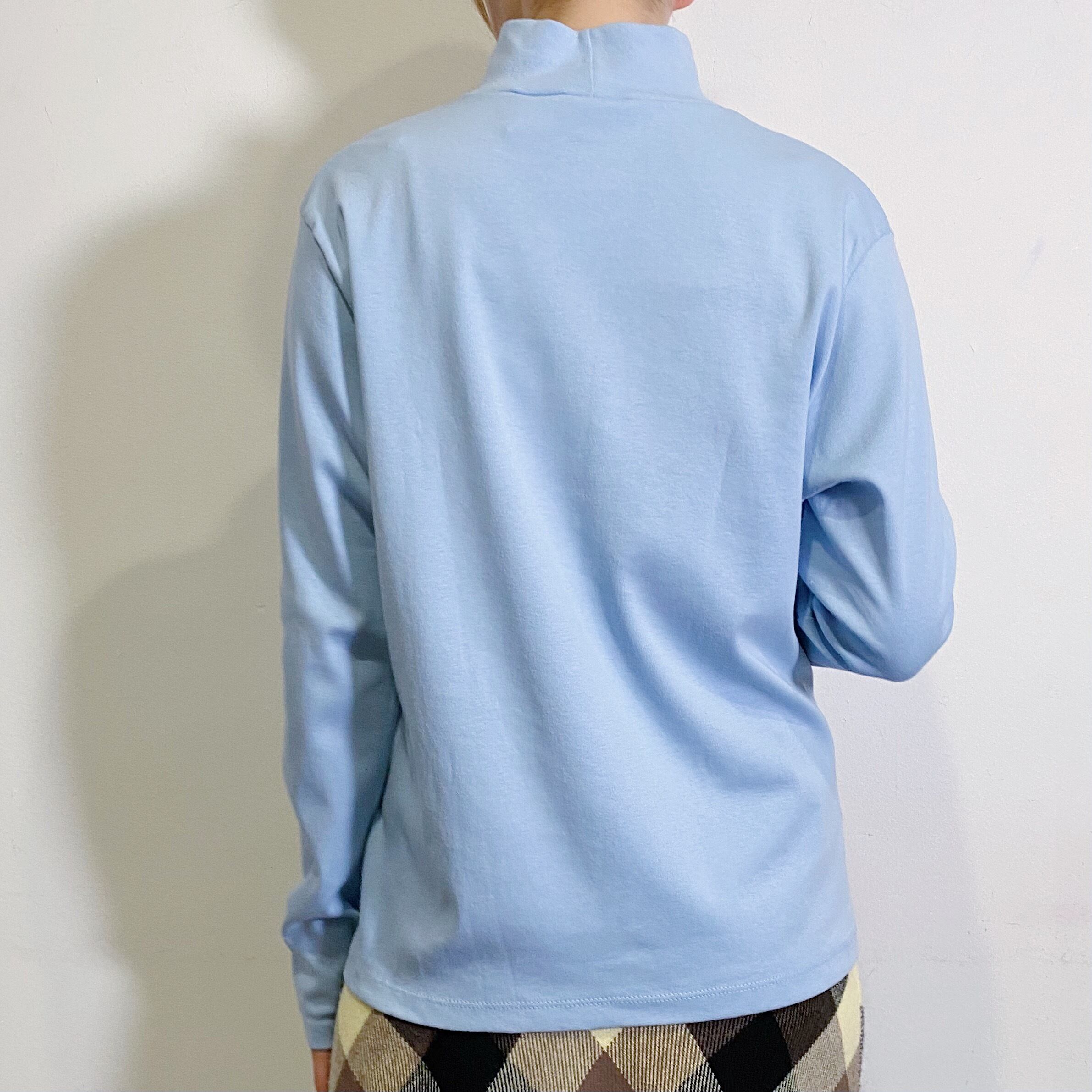 爽やかなサックスブルーの色合いが可愛い、90年代のハイネックトップスです。