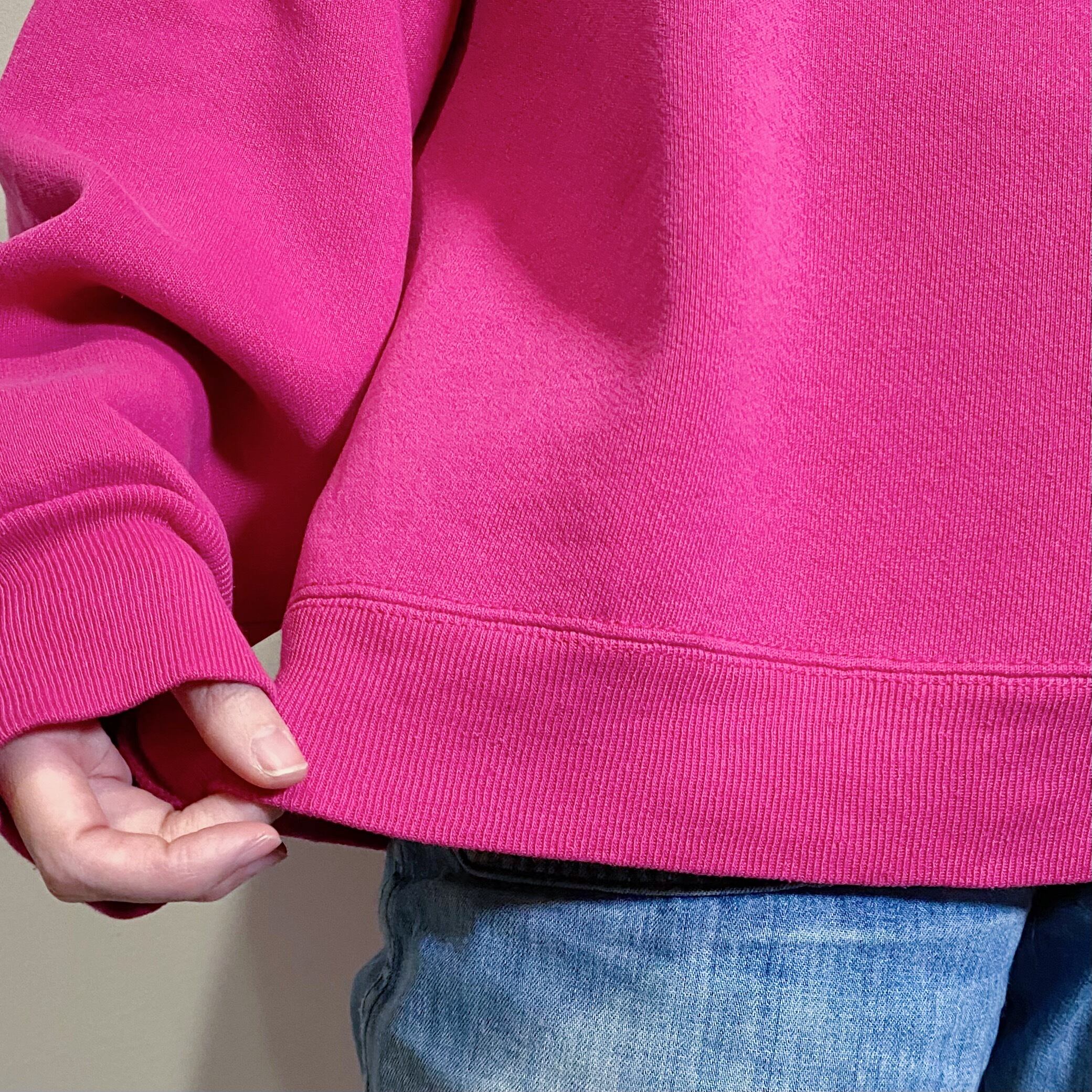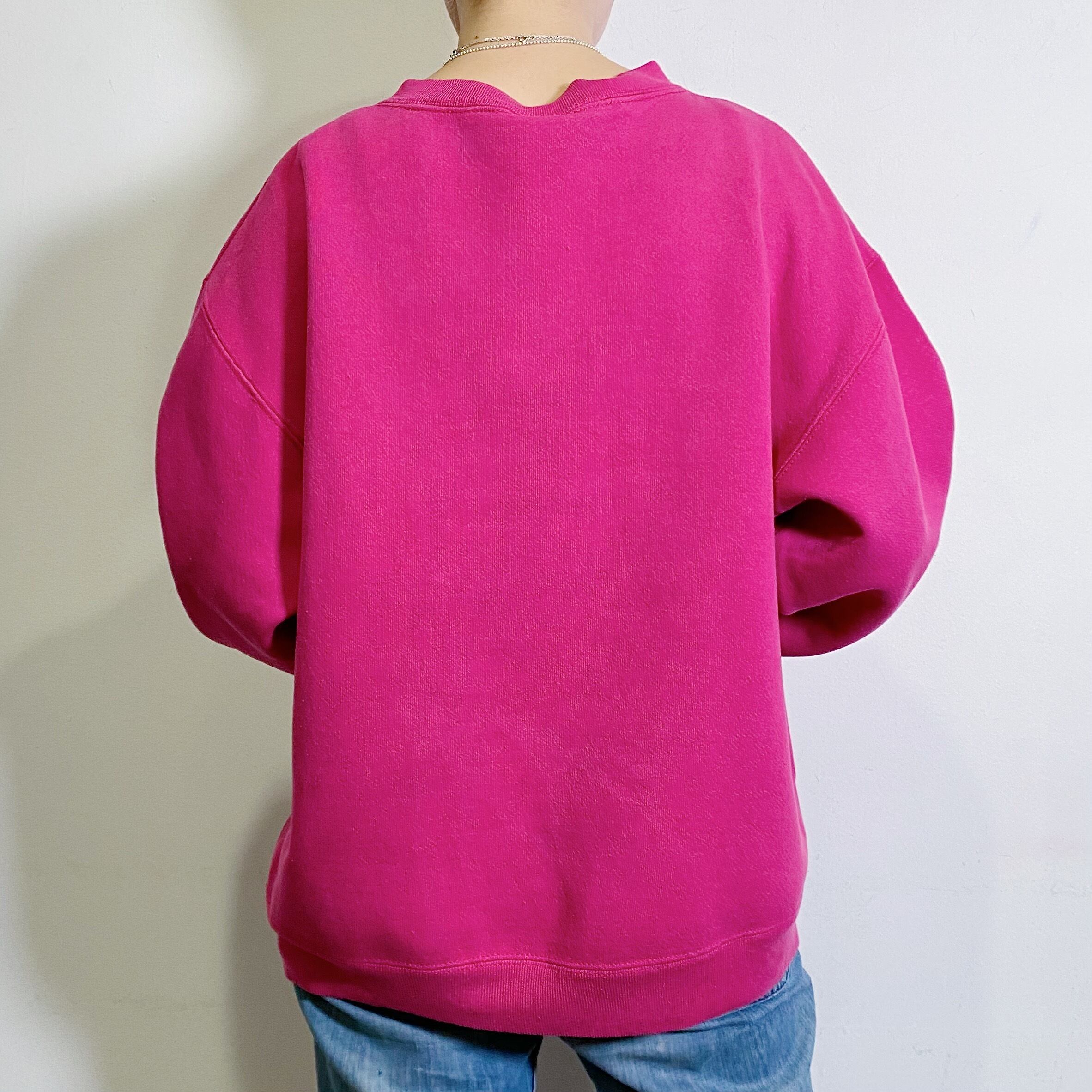 ピンクベースにネイビーのロゴが可愛い、90年代のスウェットです。