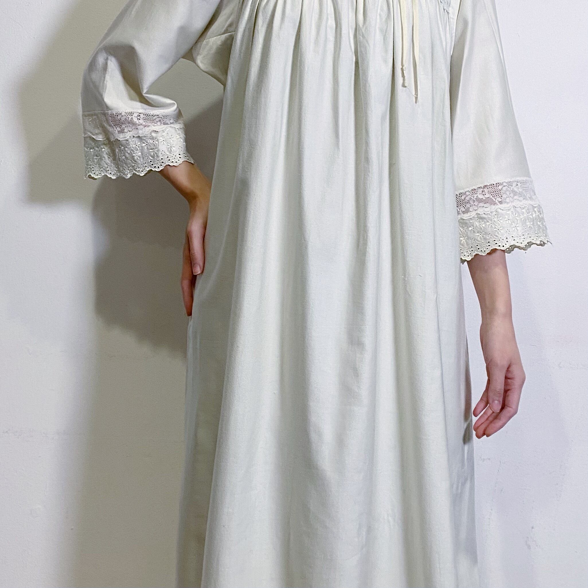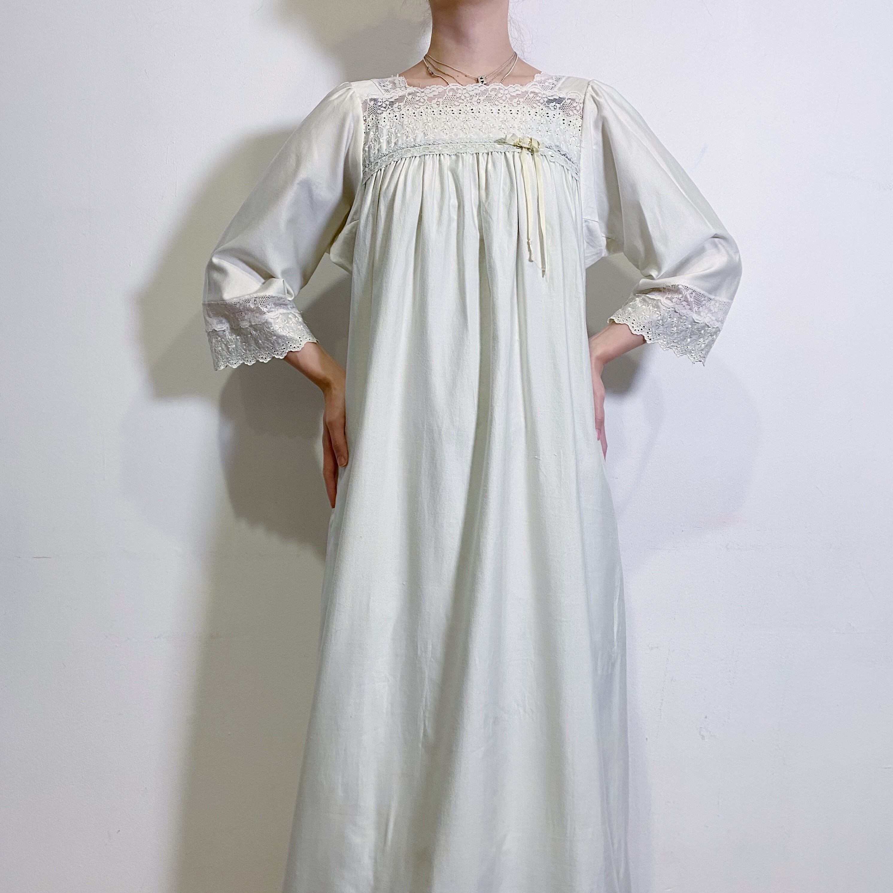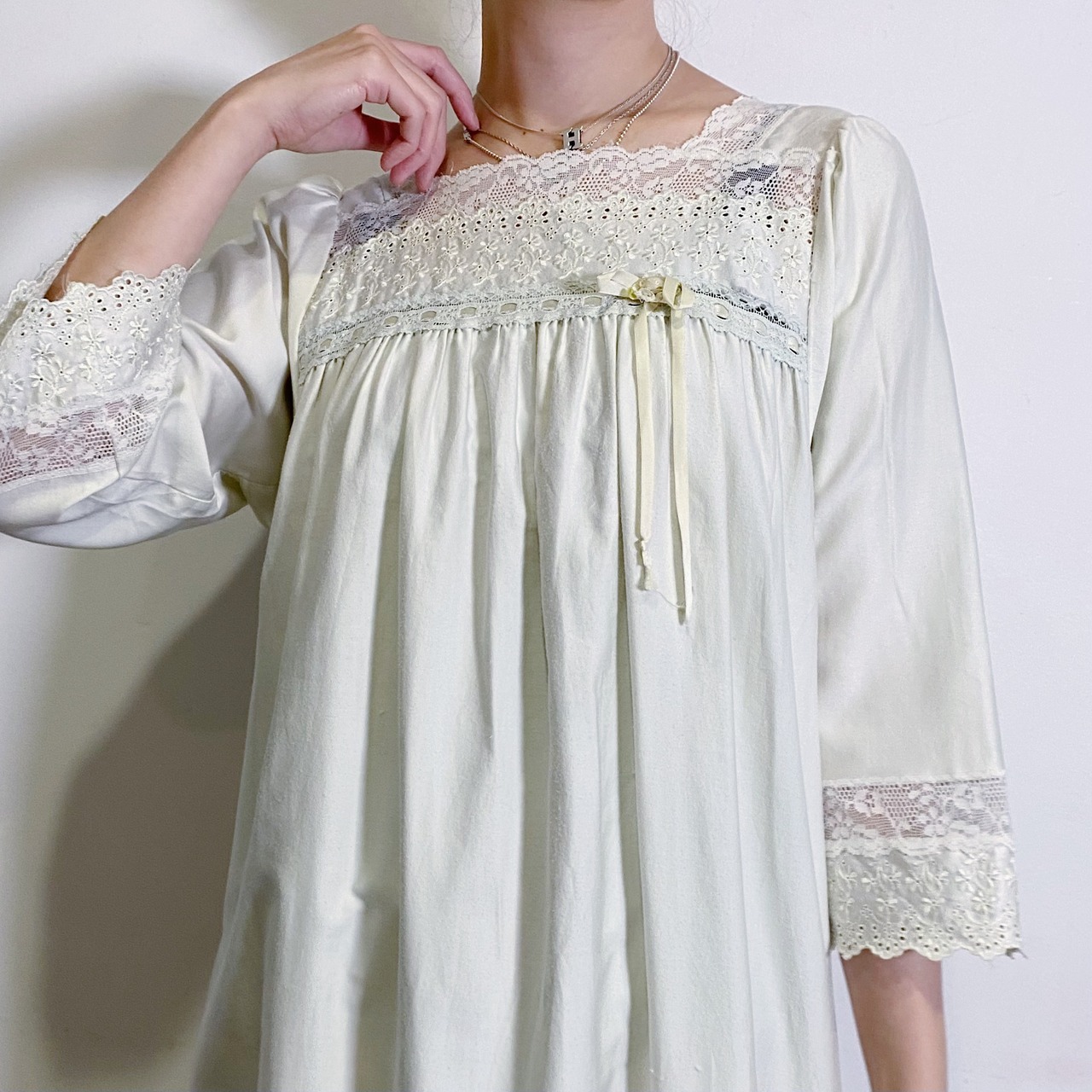 首回りと袖口のレースが可愛い、80年代頃のDiorのナイトワンピースです。