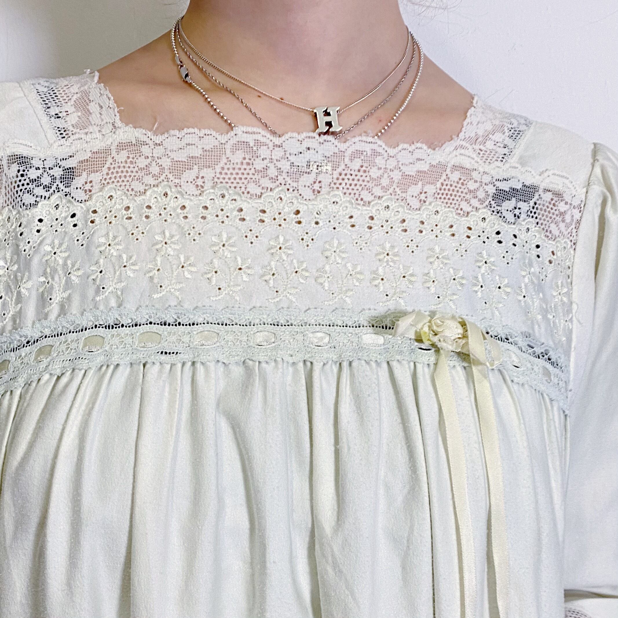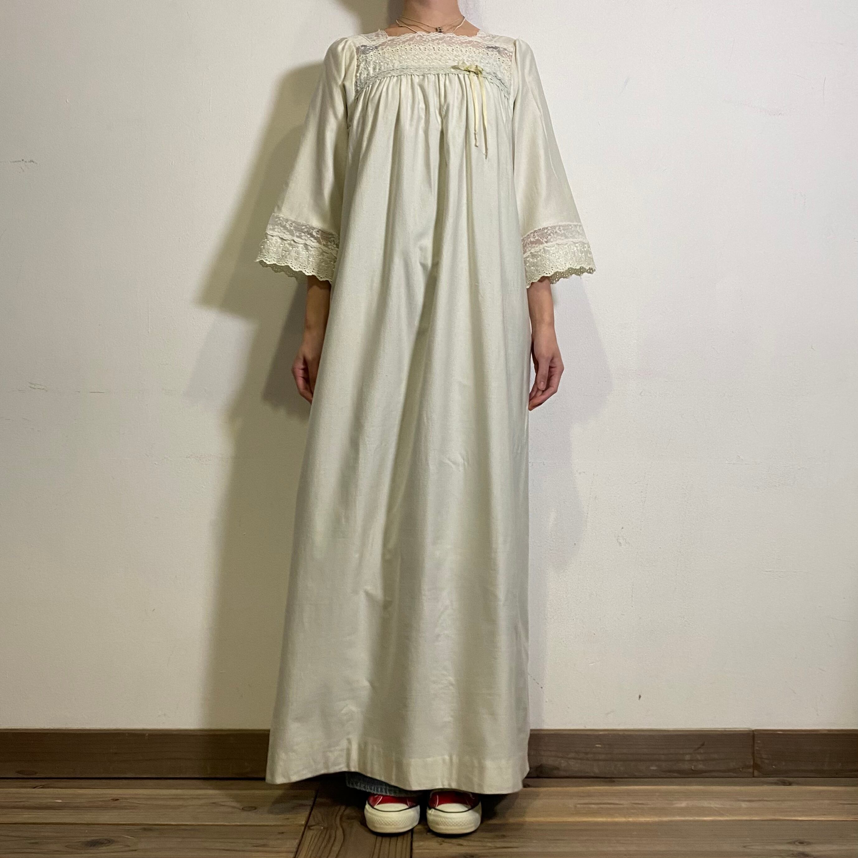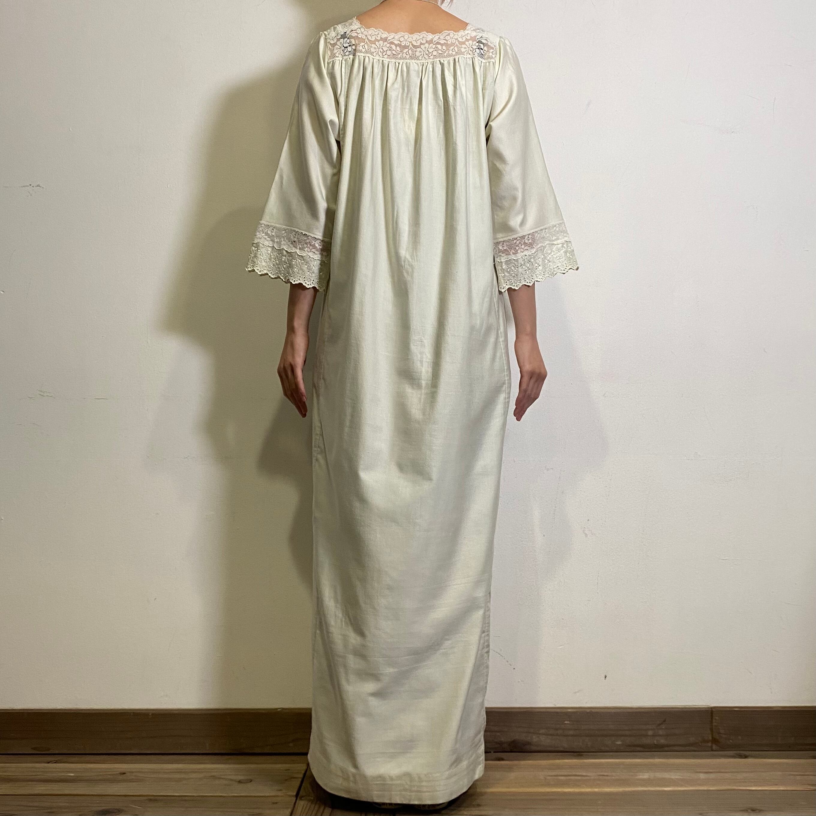 首回りと袖口のレースが可愛い、80年代頃のDiorのナイトワンピースです。